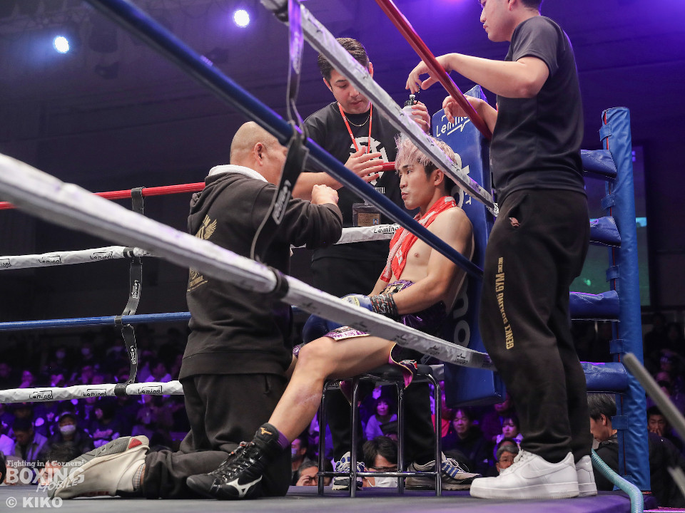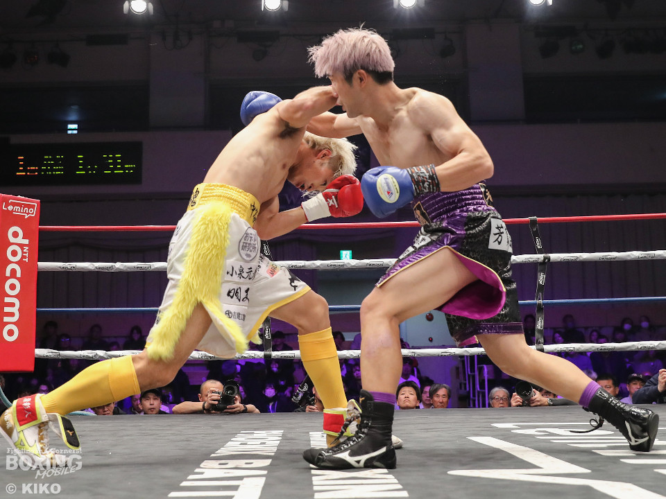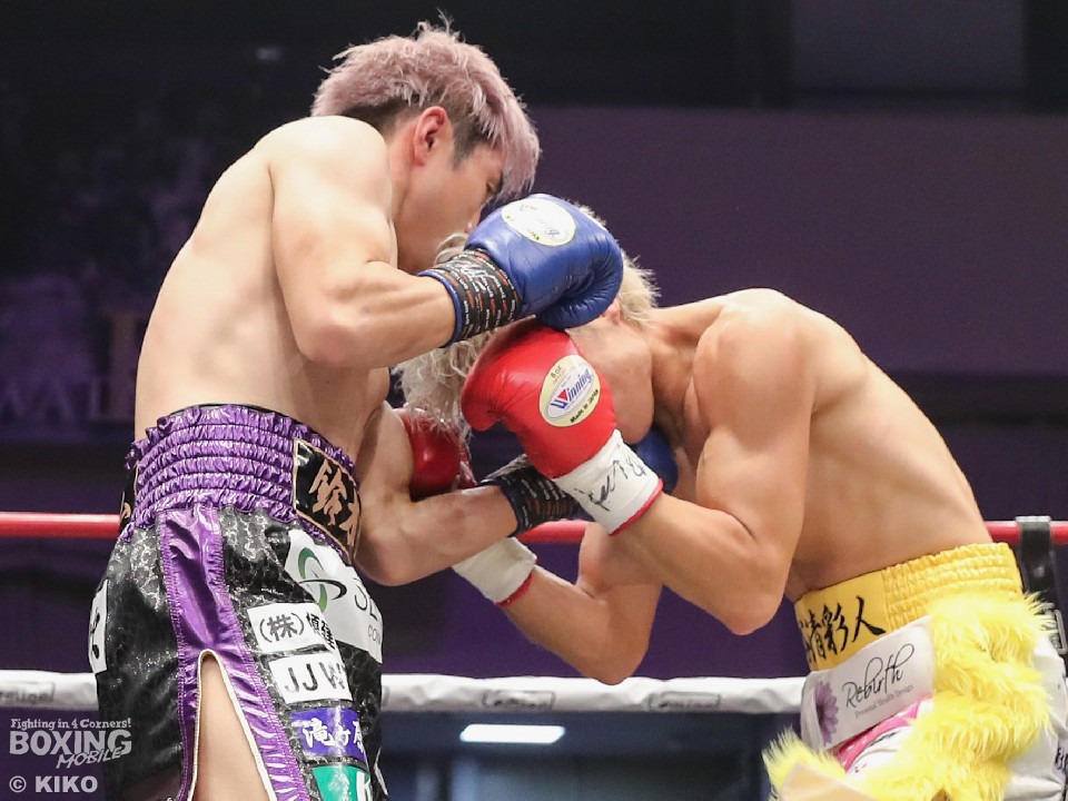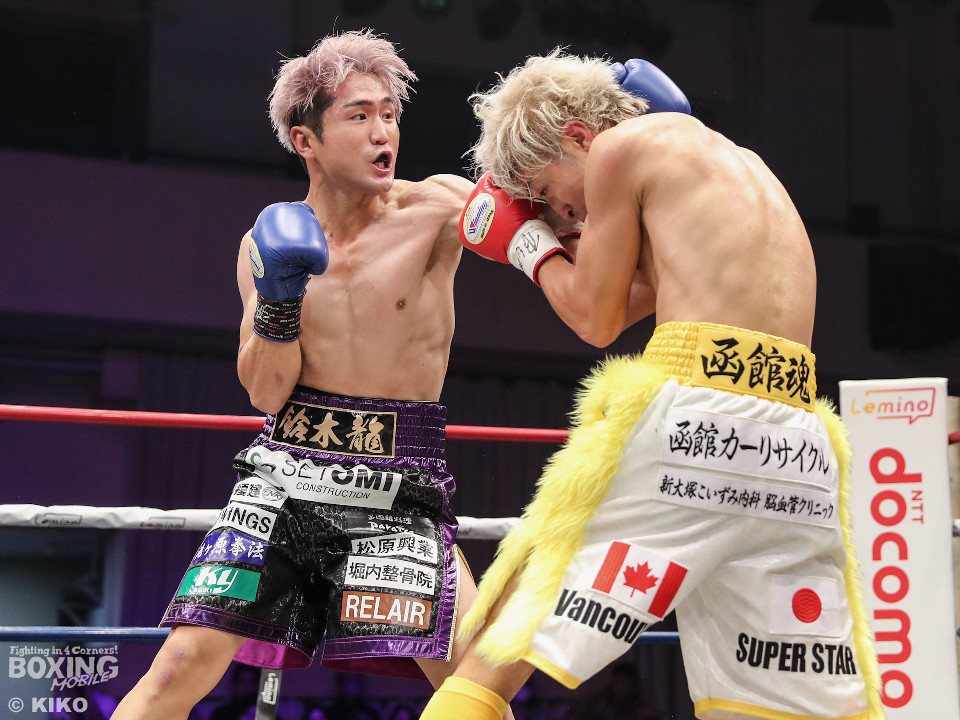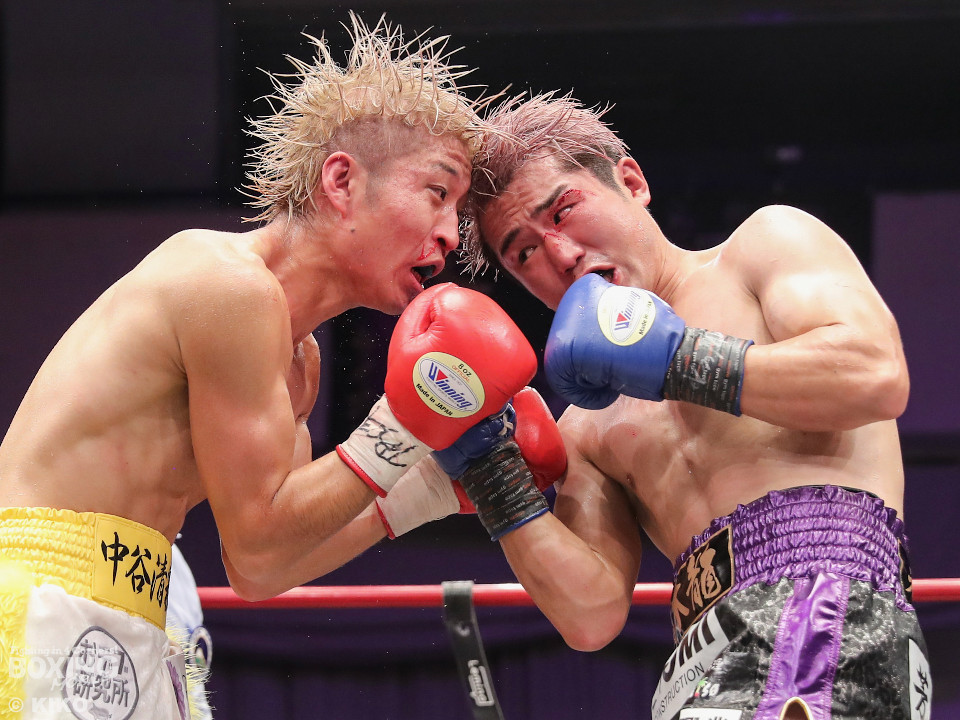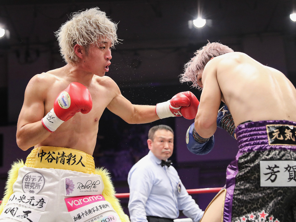 試合:約3年10ヶ月ぶりの再戦は、鈴木が右フックをねじ込むと上下に打ち分け先制。2回、鈴木はコンパクトな左フック、右アッパーを叩き込むと中谷も真っ向から応戦。3回、中谷は打ち下ろしの右ストレートから左ボディを突き刺し反撃。鈴木も負けじとゴリッと前に出て激しい打ち合いに発展。4回も我慢比べの肉弾戦が続きジャッジを悩ませた。5回、鈴木は回転力を活かした連打でグイグイと攻め立ててわずかに抜け出した印象。しかし、ヒッティングで左目上をカット。6回、鈴木はフィジカルの強さを活かし豊富な手数で攻め立てて、粘る中谷を振り切った。激戦を制した鈴木がリベンジに成功した。