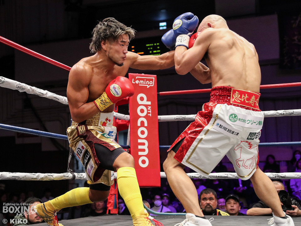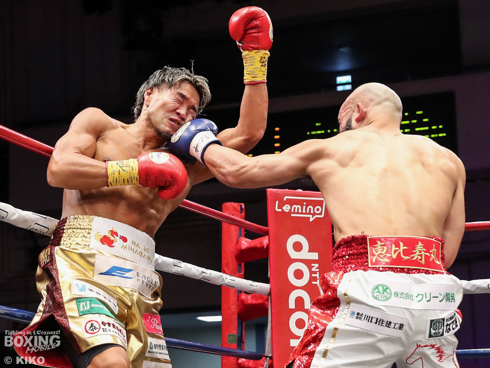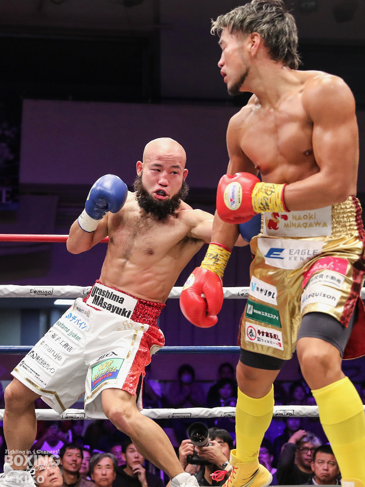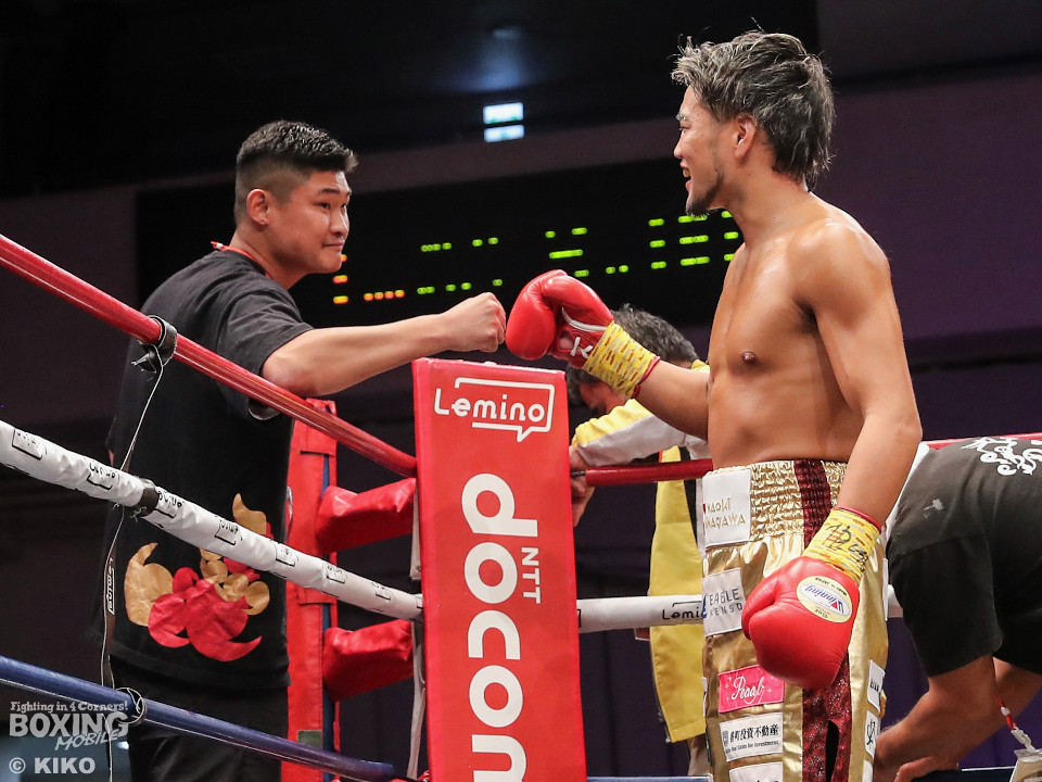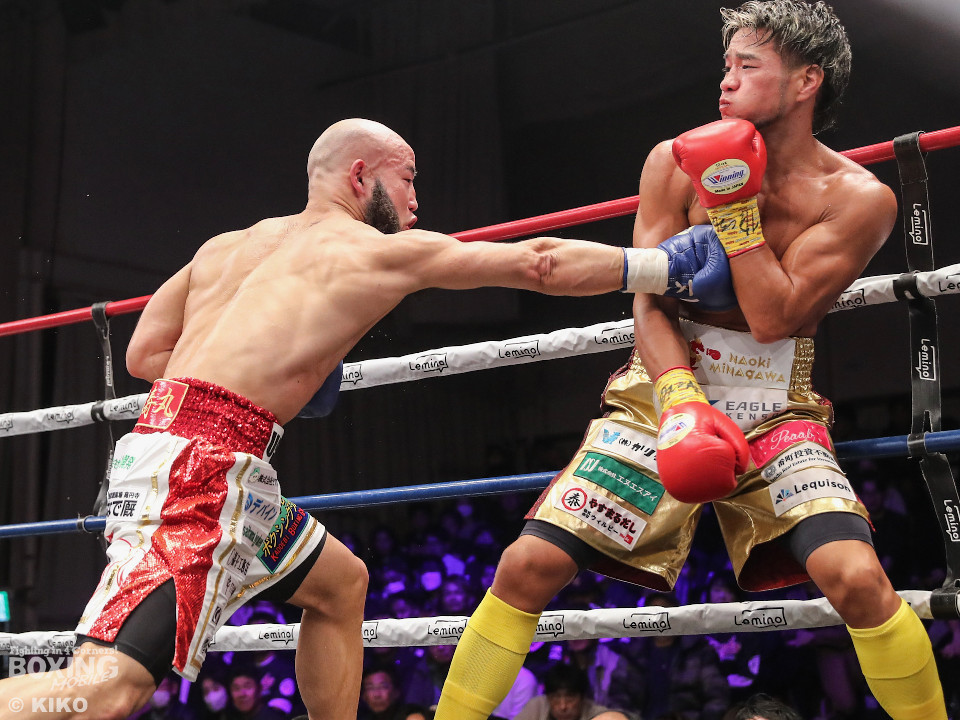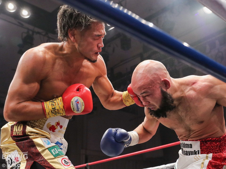 試合:日本ウェルター級最強挑戦者決定戦、浦嶋と皆川が拳を交えた。サウスポー皆川がサークリングしながら折を見て左オーバーハンドをヒット。2回、皆川は左アッパーで迎え撃つと左ストレートで顔を弾き攻勢。ボディで動きを止めたい浦嶋だが、距離が遠い。3回、浦嶋は強引に前に出て右ストレートをヒット。4回、浦嶋はジリジリと距離を詰めて左ボディを好打。5~6回、アグレッシブに攻める浦嶋に対し、皆川は足を使いながら決定打を回避。これがジャッジはどう捉えるか。7回、浦嶋はプレスをかけて右ストレートを打ち分けジャッジに攻勢をアピール。8回、今度は一転、皆川がプレスをかけて左フックから切り込むと浦嶋は距離を取りながら要所で左フックを合わせた。ジャッジ2者の支持を得た浦嶋が来年のチャンピオンカーニバル出場を決めた。