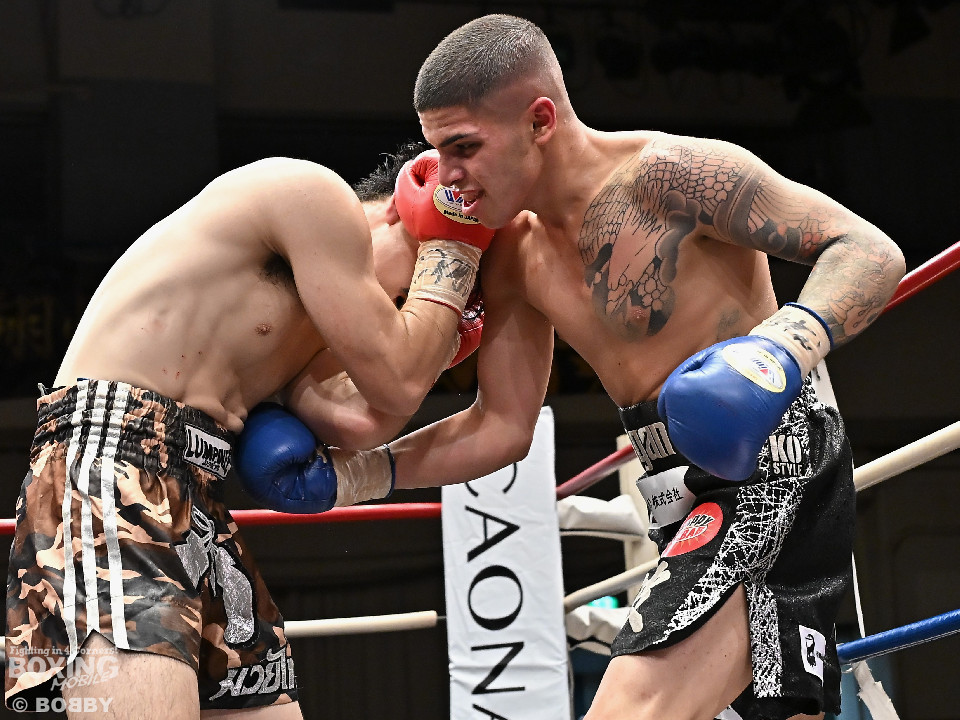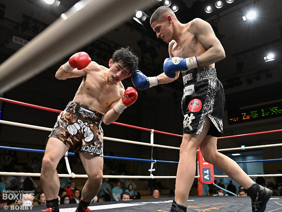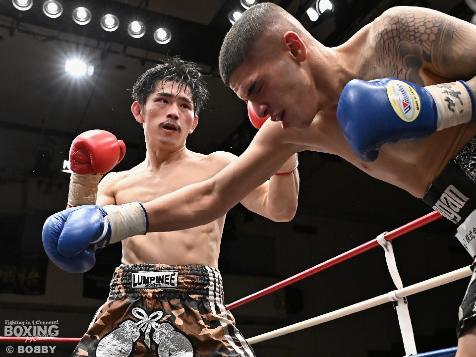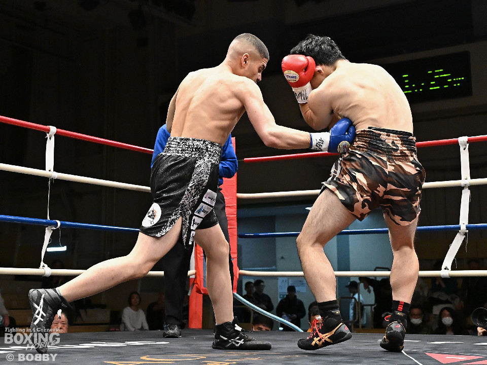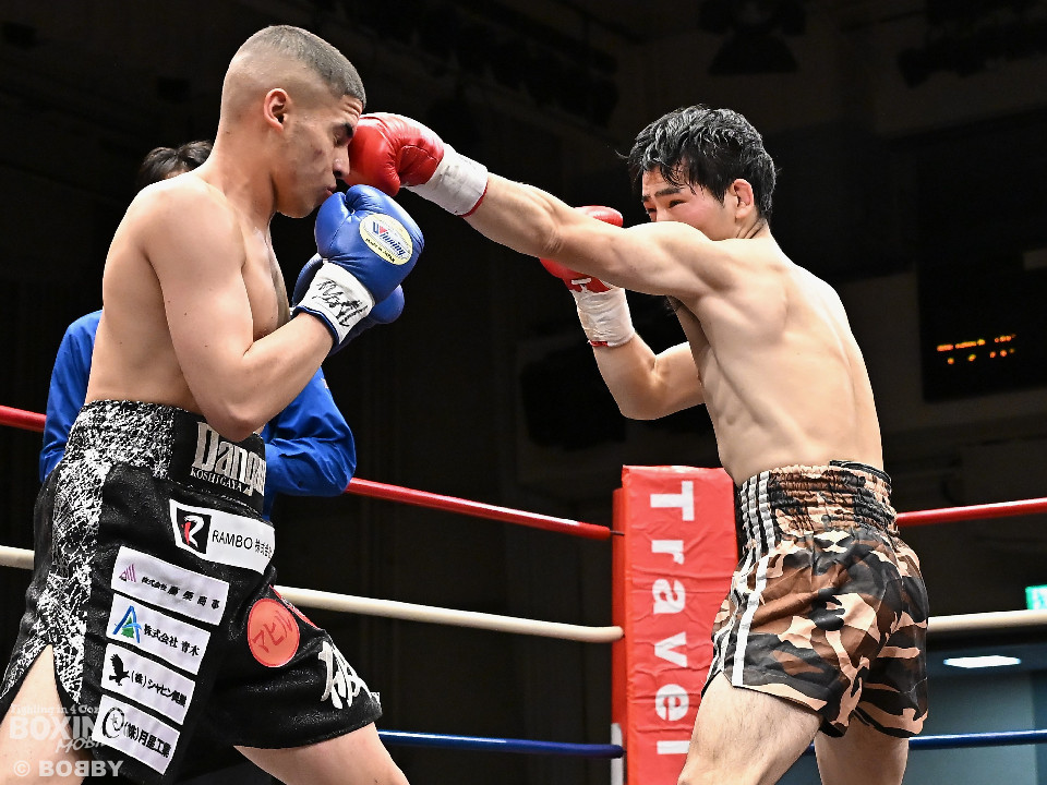 試合:ハリルが右ストレートを叩きつけて先制攻撃を仕掛けると、右ボディを織り交ぜて先手を奪うことに成功。2回、ハリルは左ボディで動きを止めるとパンチをまとめて攻勢。後手に回った楠は右を合わせて反撃に転じるが、守勢を強いられた。3回、ショートレンジでの打ち合いで決定打に恵まれず。4回、スタミナの消耗が激しい中、ハリルが左フックで顔を弾き攻勢を印象付けた。