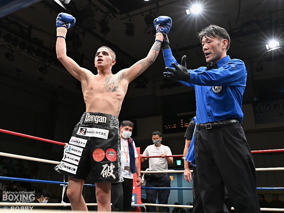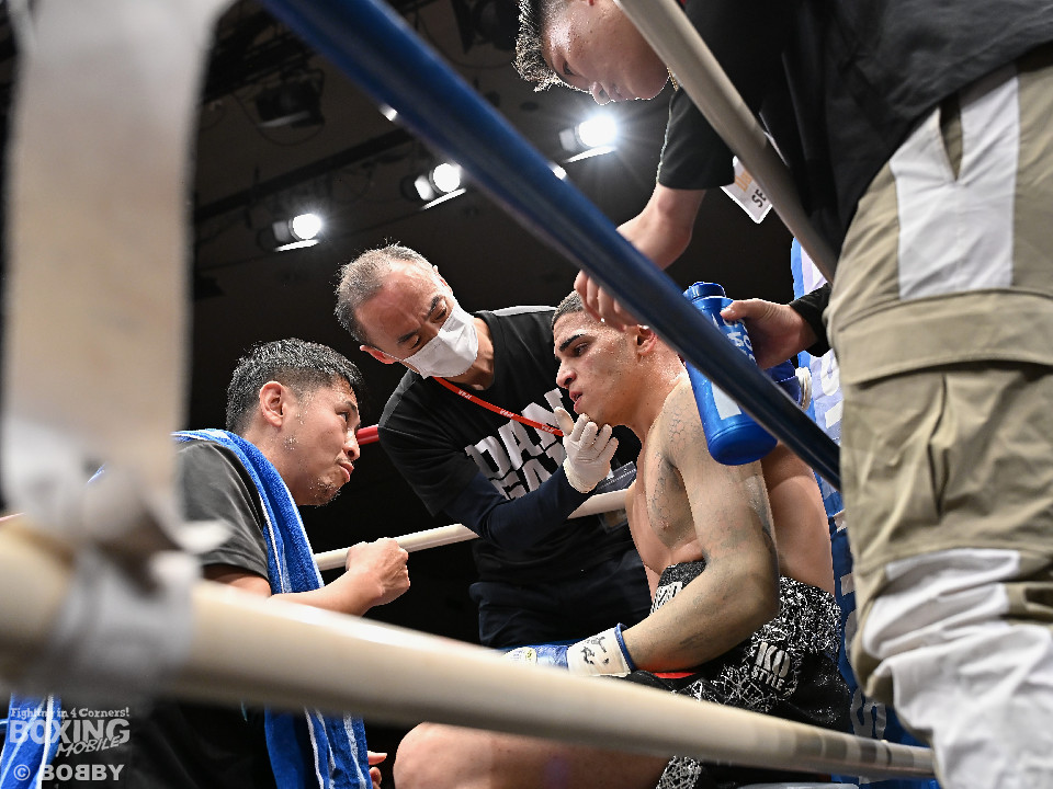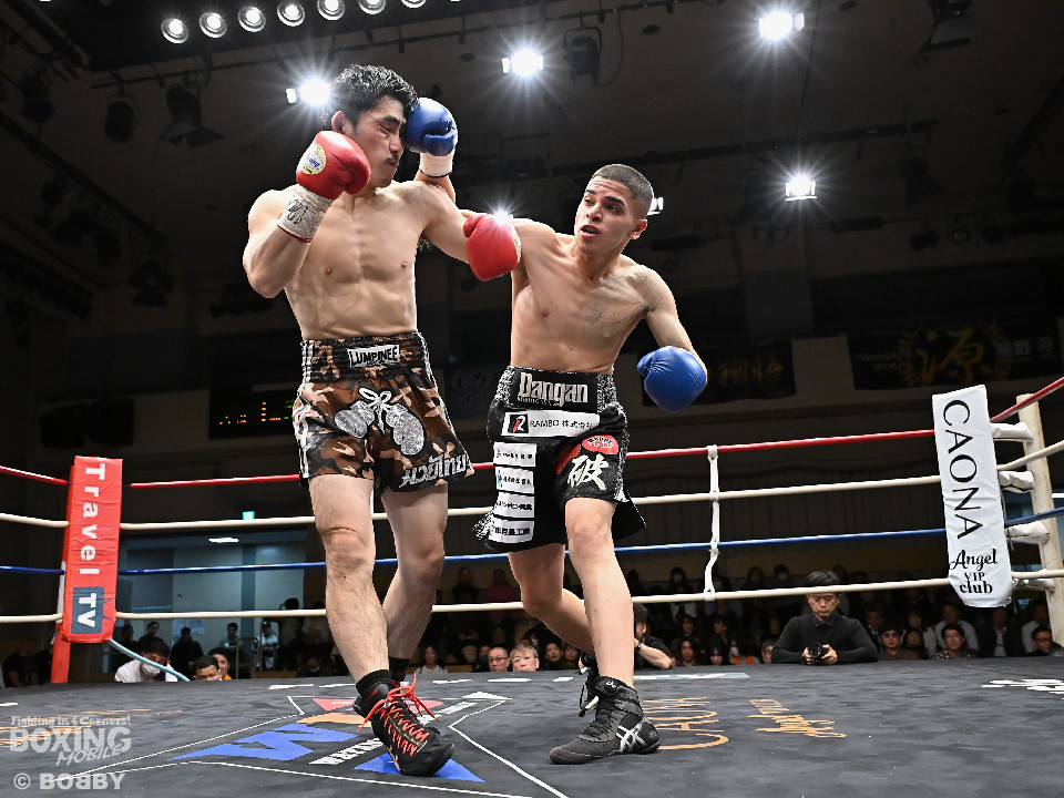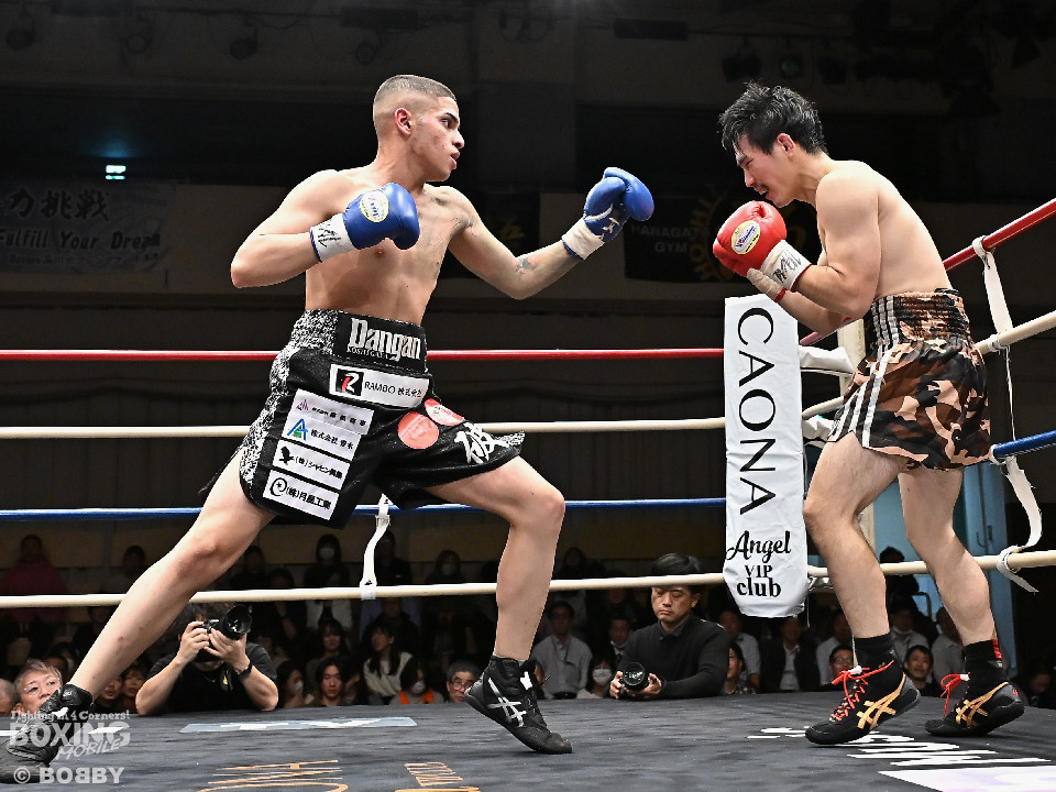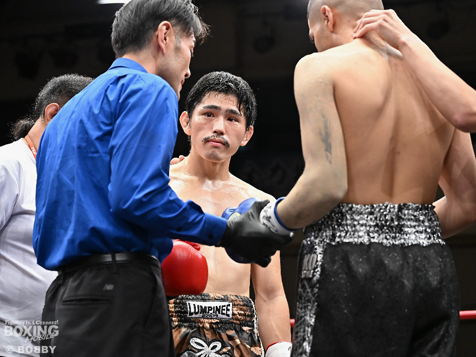 試合:ハリルが右ストレートを叩きつけて先制攻撃を仕掛けると、右ボディを織り交ぜて先手を奪うことに成功。2回、ハリルは左ボディで動きを止めるとパンチをまとめて攻勢。後手に回った楠は右を合わせて反撃に転じるが、守勢を強いられた。3回、ショートレンジでの打ち合いで決定打に恵まれず。4回、スタミナの消耗が激しい中、ハリルが左フックで顔を弾き攻勢を印象付けた。