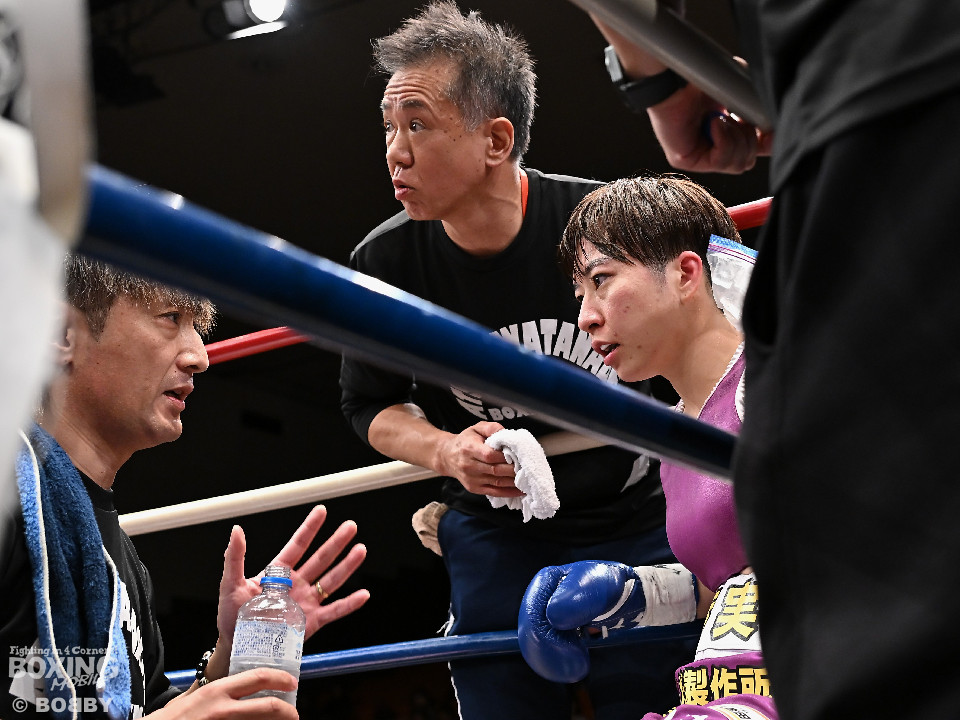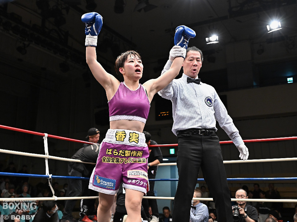 試合:佐藤が前後の動きを意識しながらテンポの良い攻撃を披露。相手の左右フックをバックステップで回避。2回、大橋は回転力を活かした連打から右フックでダウンを先取。再開後、グイグイと攻め立てた。3回、佐藤は左アッパーで顔を弾くと右フックで効かせて形勢逆転。好機を逃さずパンチをまとめて右ストレートでレフェリーストップに持ち込んだ。佐藤が逆転KO勝ちでデビューから4連勝を飾った。