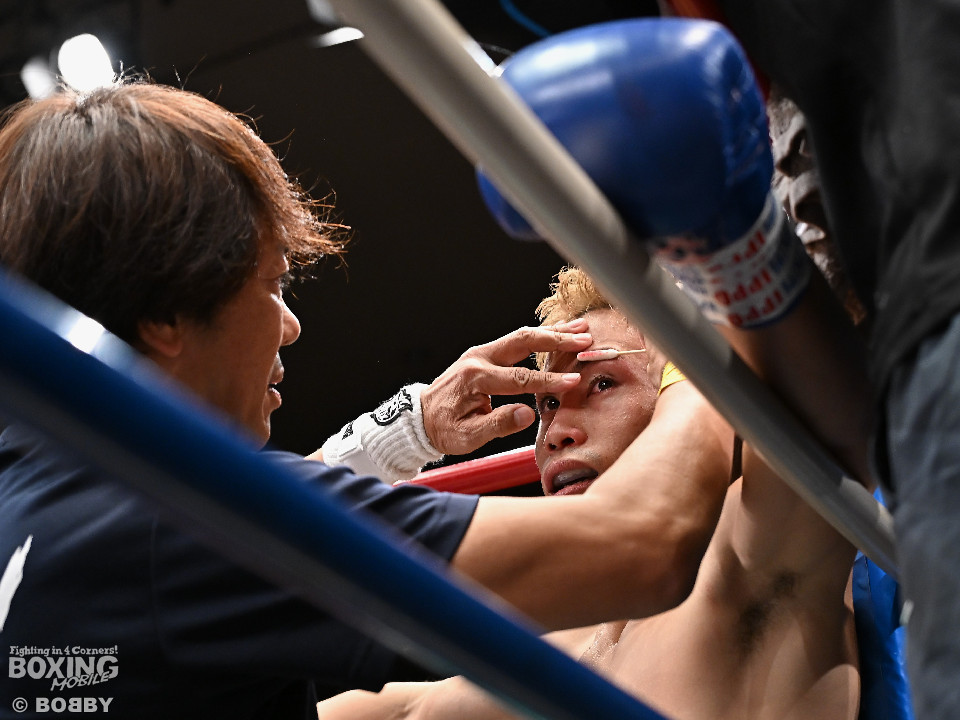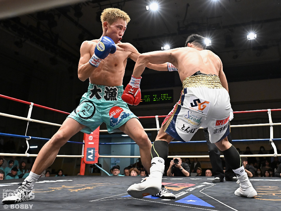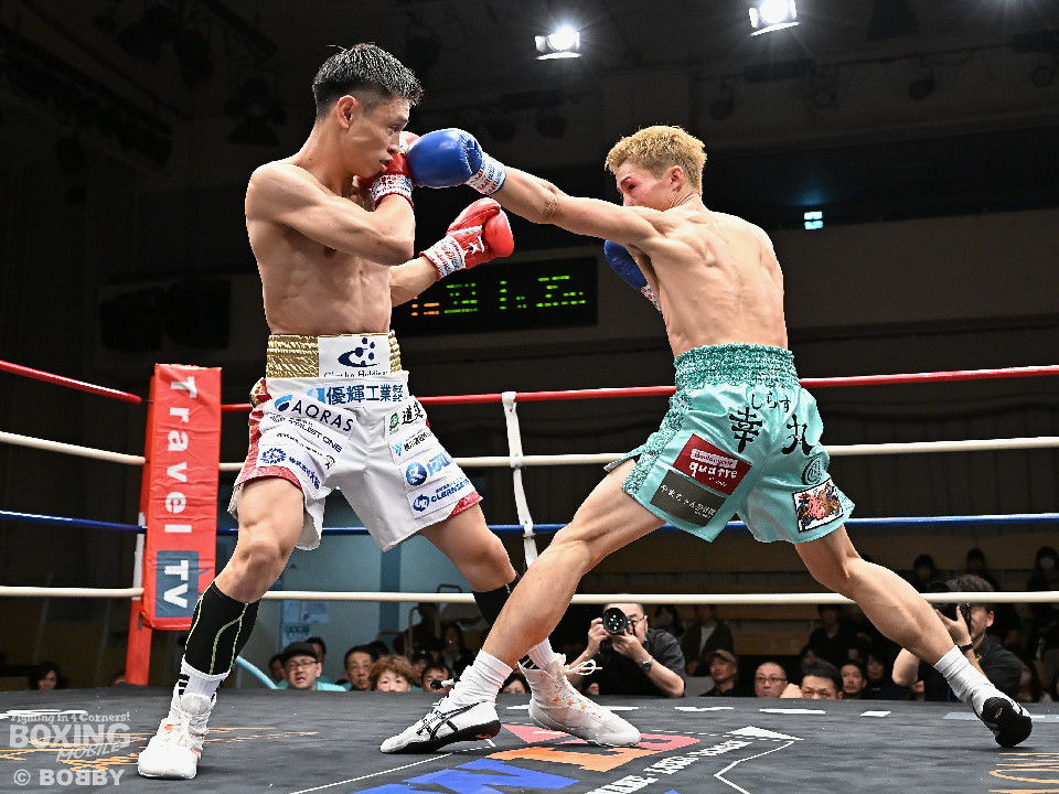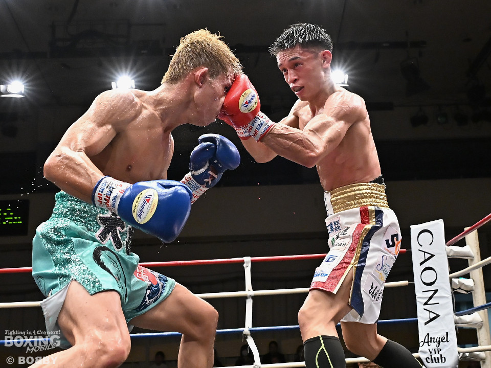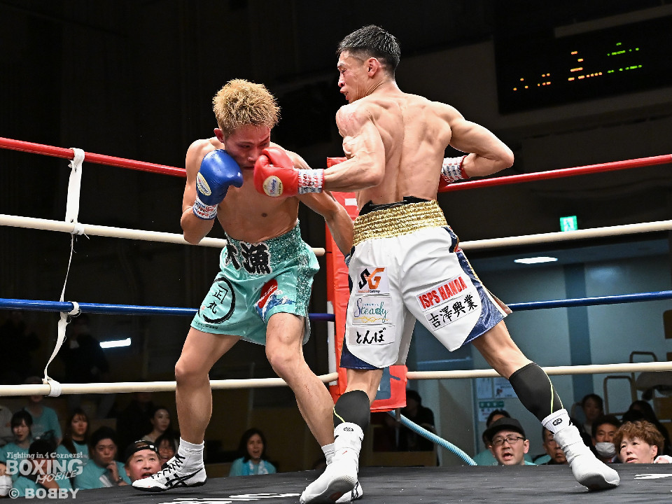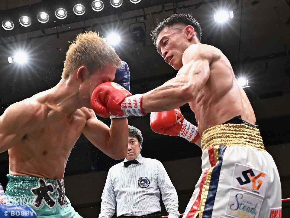 試合:ジャブの差し合いからスタートする中、中川が左で左目上を切り裂き先制。サークリングしながらワンツーを繰り出した。2回、中川は攻め急がず、足を使いながらジャブで組み立てた。3回、中川は右を被せるとリズム感のある攻撃でペースを維持。流れを変えたい川村だが、右ストレートにつなげれず。4回、川村は上下に打ち分けて先に仕掛けるが、中川はバックステップからワンツー左をヒット。5回、川村は間合いを詰めて逆ワンツーで反撃。6回、中川は打ったらすぐに動くと、ラウンド終盤には左ボディでポイントをピックアップ。7回、中川はフットワークを駆使しながらアウトボクシングを遂行。8回、劣勢を挽回したい川村は強引に前に出ると右フックで左目上を切り裂き反撃。中川は足を使いながら決定打を避けた。終始、リズムを保った中川がランカーの意地を見せた。