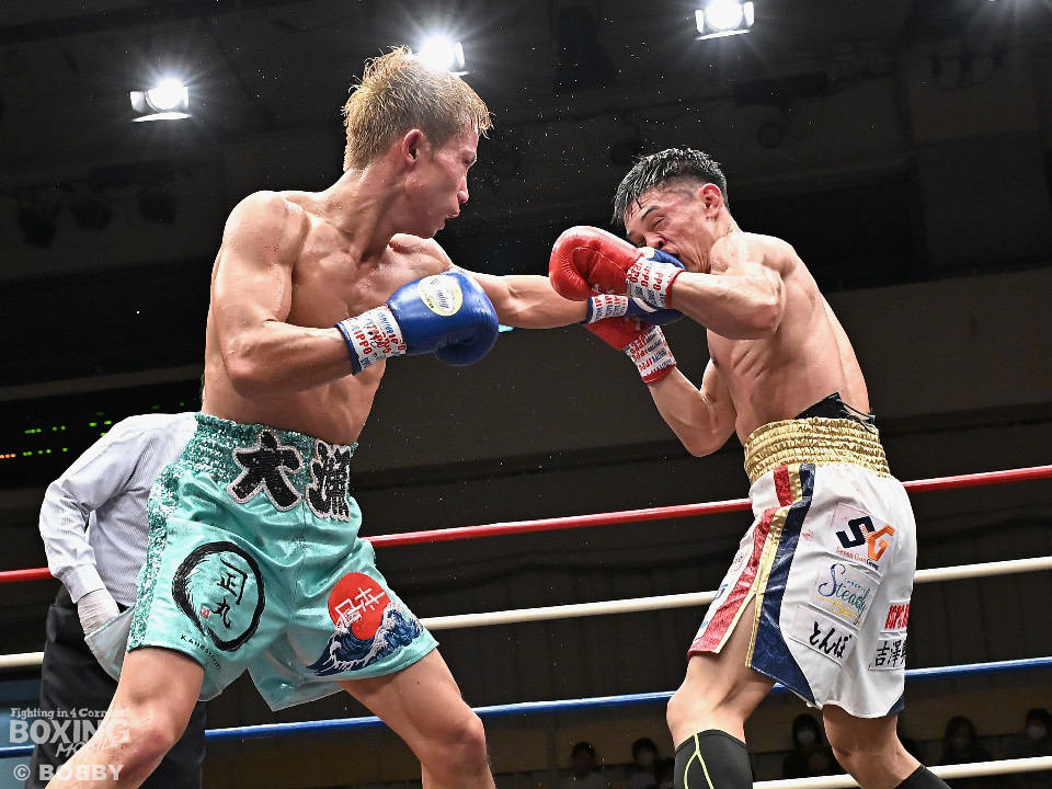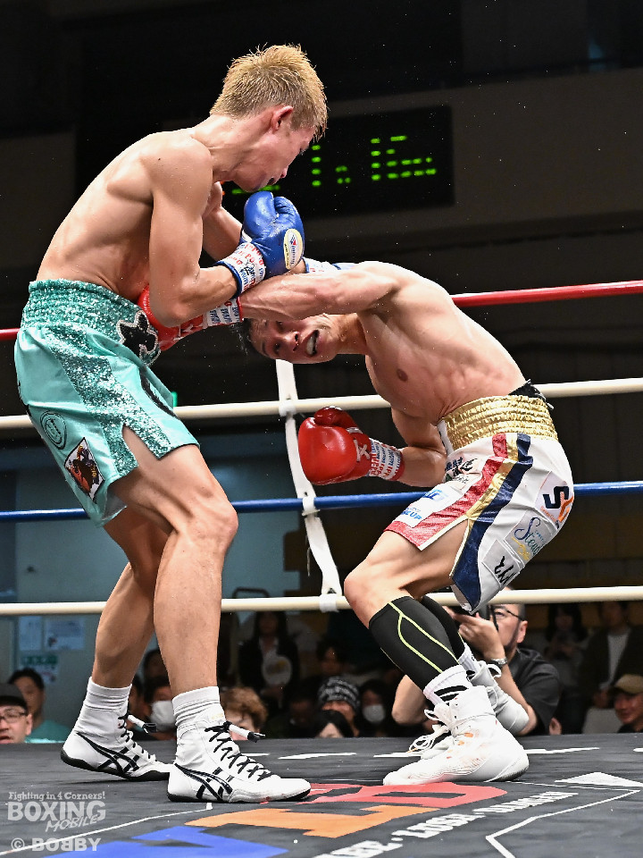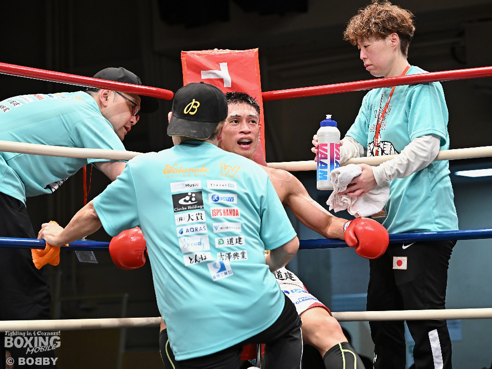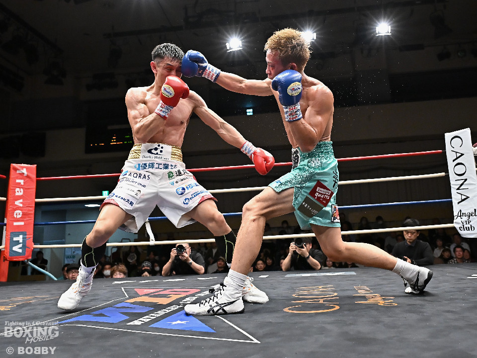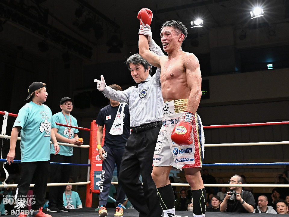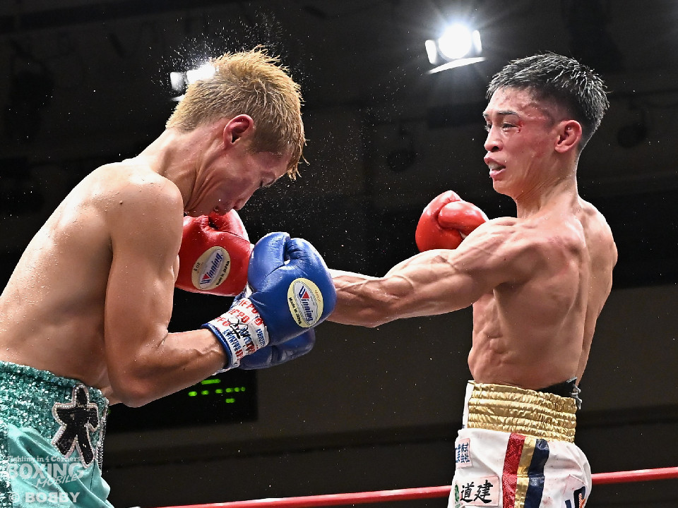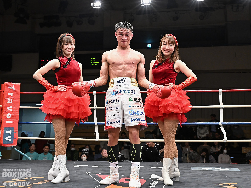 試合:ジャブの差し合いからスタートする中、中川が左で左目上を切り裂き先制。サークリングしながらワンツーを繰り出した。2回、中川は攻め急がず、足を使いながらジャブで組み立てた。3回、中川は右を被せるとリズム感のある攻撃でペースを維持。流れを変えたい川村だが、右ストレートにつなげれず。4回、川村は上下に打ち分けて先に仕掛けるが、中川はバックステップからワンツー左をヒット。5回、川村は間合いを詰めて逆ワンツーで反撃。6回、中川は打ったらすぐに動くと、ラウンド終盤には左ボディでポイントをピックアップ。7回、中川はフットワークを駆使しながらアウトボクシングを遂行。8回、劣勢を挽回したい川村は強引に前に出ると右フックで左目上を切り裂き反撃。中川は足を使いながら決定打を避けた。終始、リズムを保った中川がランカーの意地を見せた。