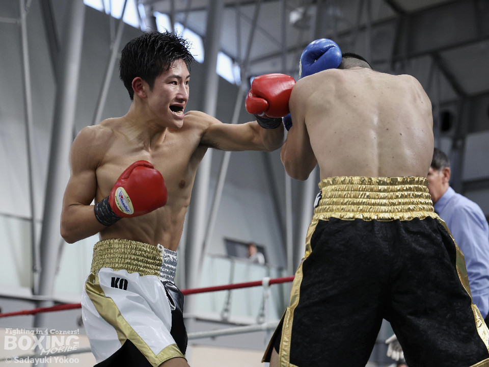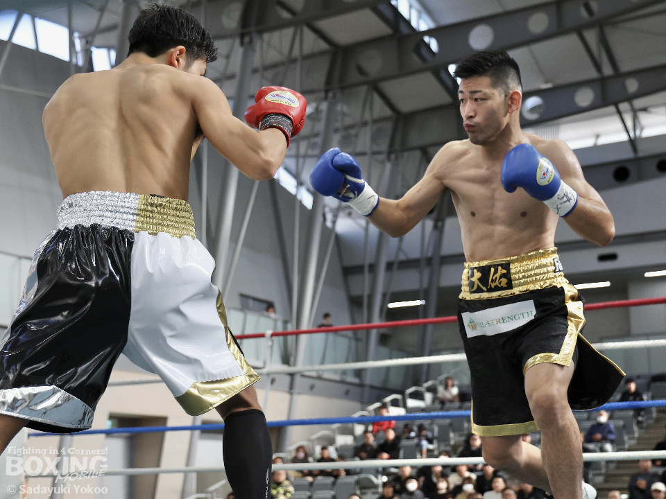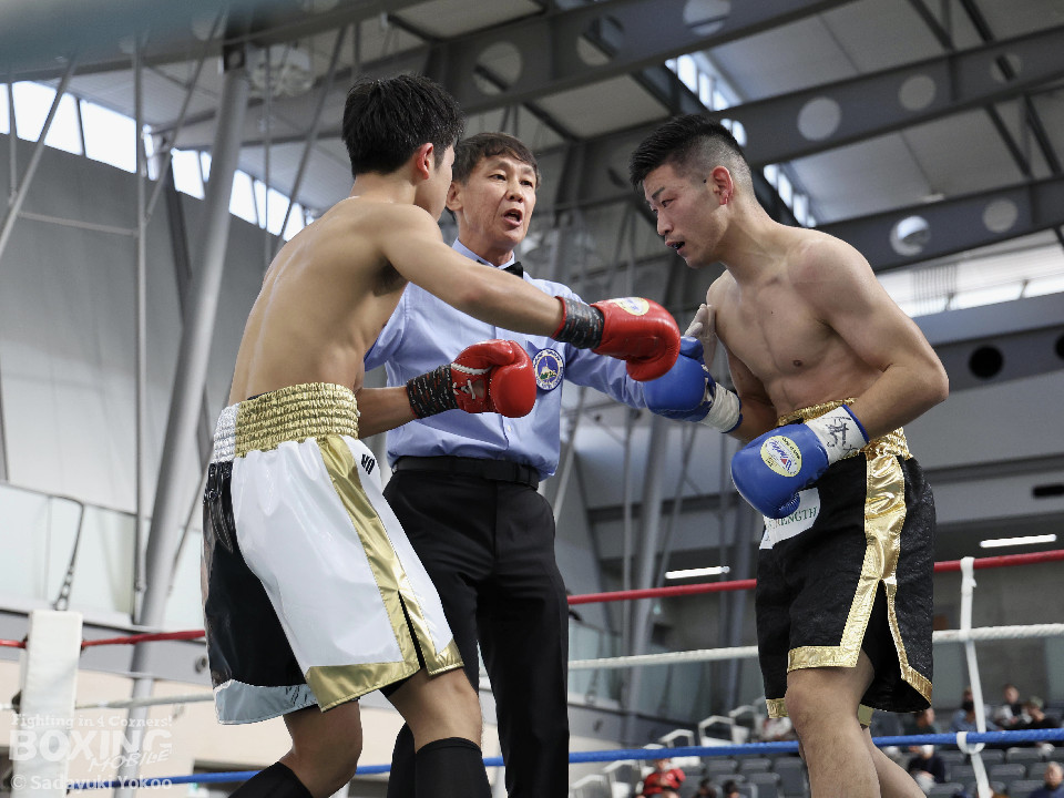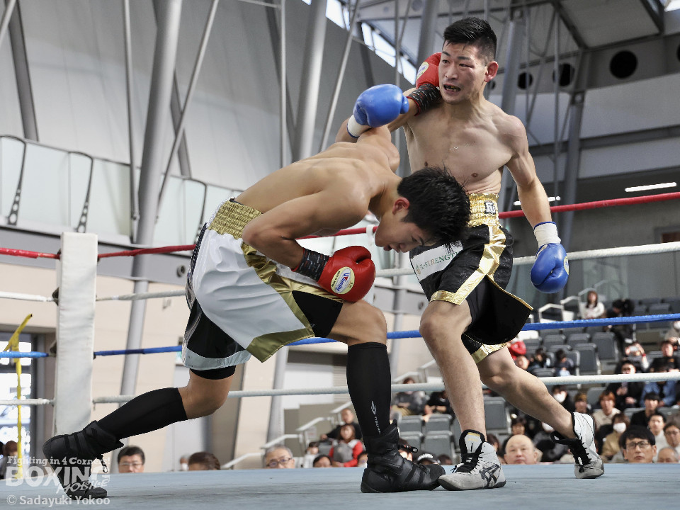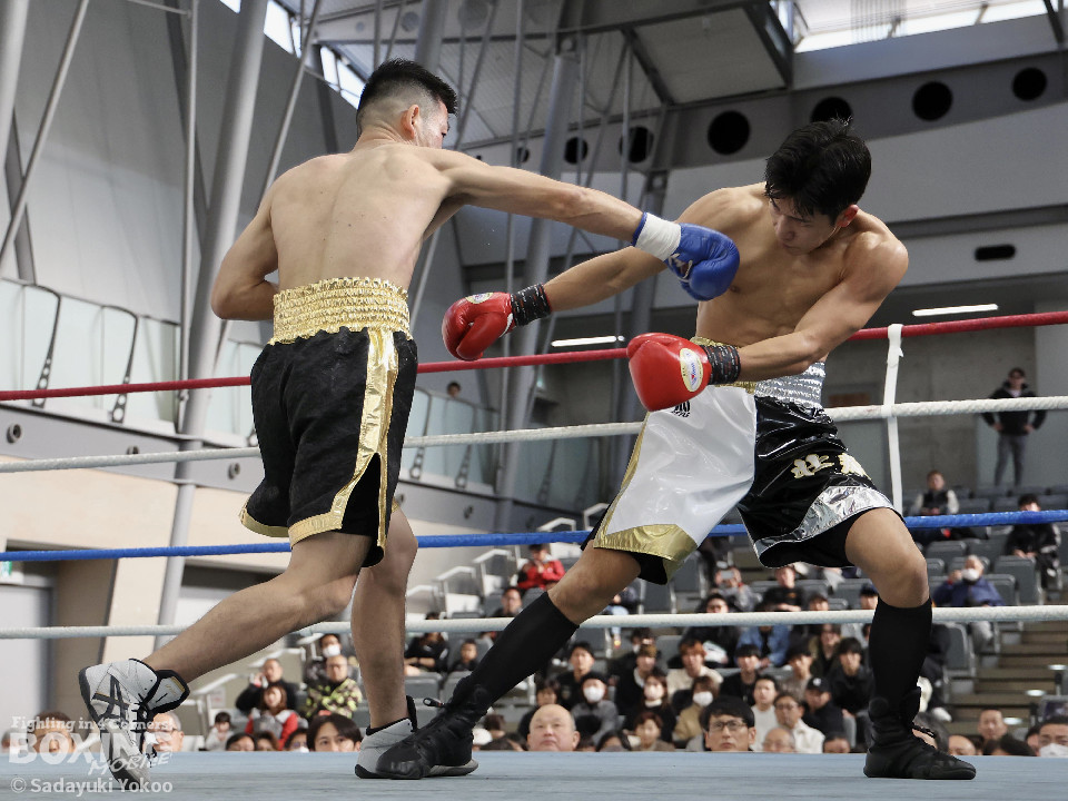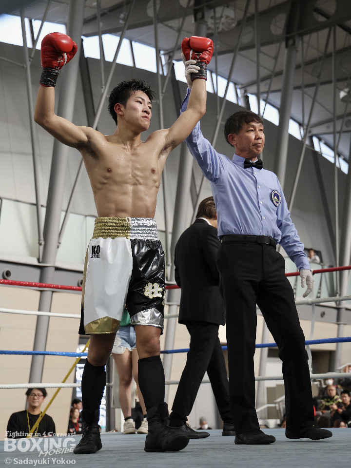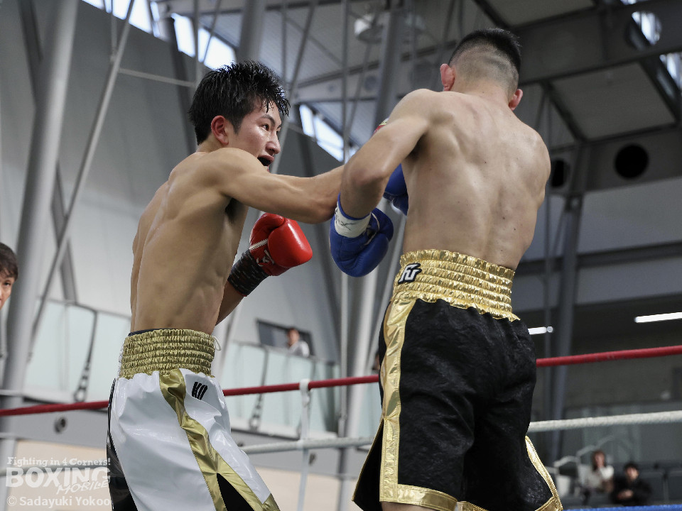 試合:橋本がプレスをかけながら左フック、右ストレートを狙う。サウスポー福冨は距離をとりながら左ボディストレートをヒット。ボディワークでパンチを空転させる巧さも見せた。2回、橋本はセコンドの「一緒に!」の指示で相打ちを実行。左フック、右ストレートをヒット。福冨もダメージを感じさせず、左ボディストレートで誘って顔面にパンチを運ぶ。3回、スタイリッシュに攻める福冨を沼に引きづり込むように橋本がジリジリ近づき左フック、右ストレートをヒット。最終回、お互い疲労が見えるが自分たちのスタイルを貫く。福冨が左ストレートを貫くとラッシュをかけ会場を沸かせた。結果は判定となり的確にパンチを当て続けた福冨が勝利を挙げた。