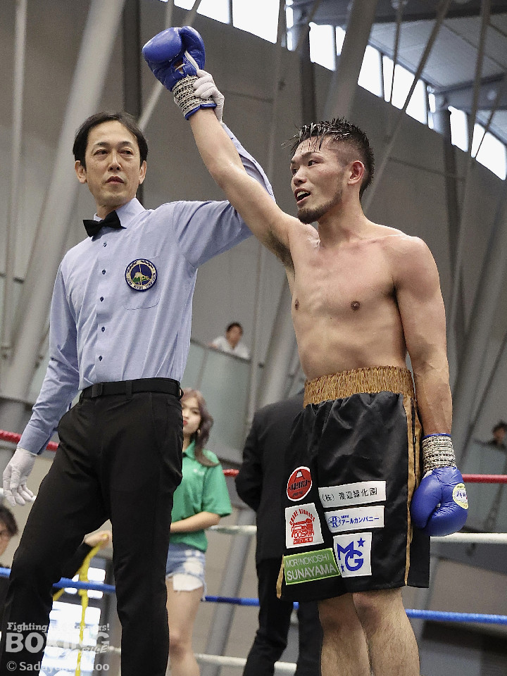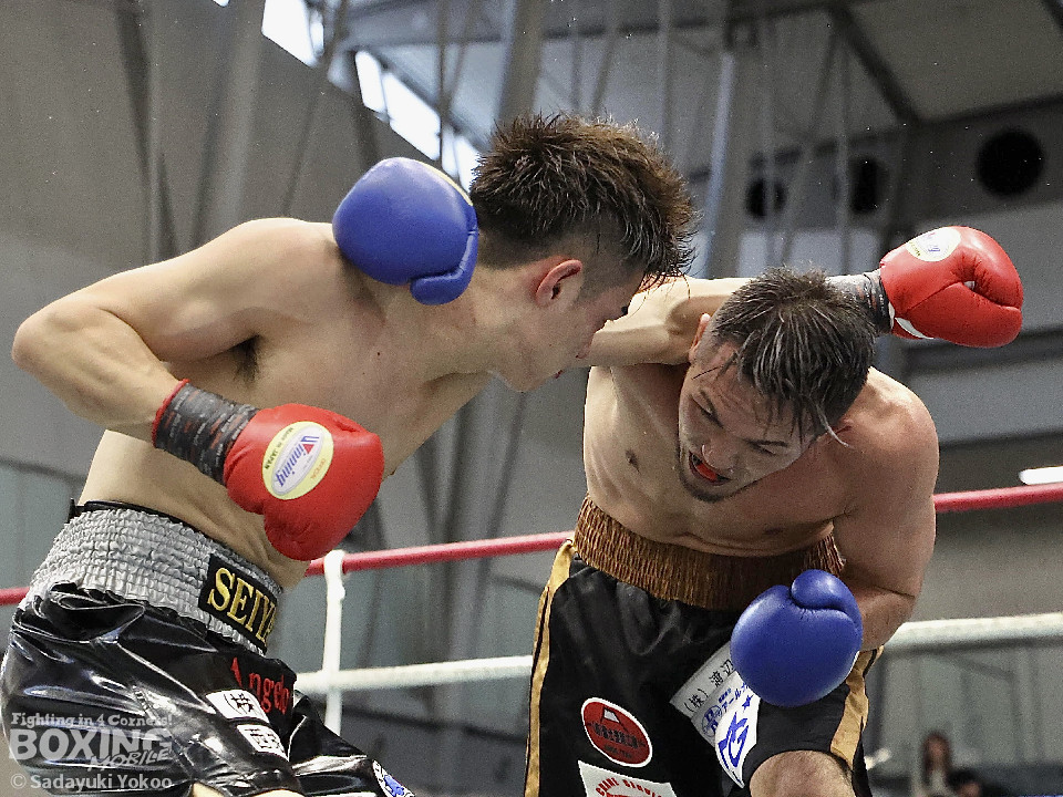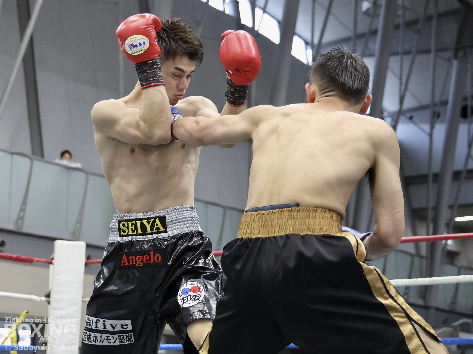 試合:空手をベースとする並木が独特構えとタイミングで右ストレートを強振。秋山はガードで受け止め、ワンツーからのコンビネーションでパンチを返す。2回、並木がプレスで詰め、左フックを当てる。秋山も冷静に対処し自慢の強打で襲いかかる。3回、ジャブで使いプレスをかけ左右フックで攻勢を取る並木。しかし秋山も黙っておらず、右ストレートを側頭部に打ち抜くと並木の動きが一瞬止まりそのままラッシュかけゴングとなる。4回、ダメージを感じさせない並木が右ストレートをヒットし次は秋山の腰がガクンと落ちる。最終回、お互い勝負を決めようと打ち合う。一発で試合を終わらせるパンチを秘めた両者がスリリングな攻防。ダウンシーンはなかったが場内を沸かせ終了のゴングとなった。判定はクリーンヒットを的確に当て続けた並木が敵地で勝利した。