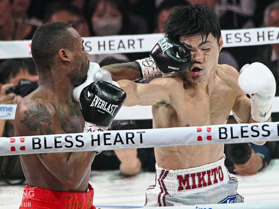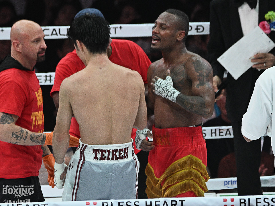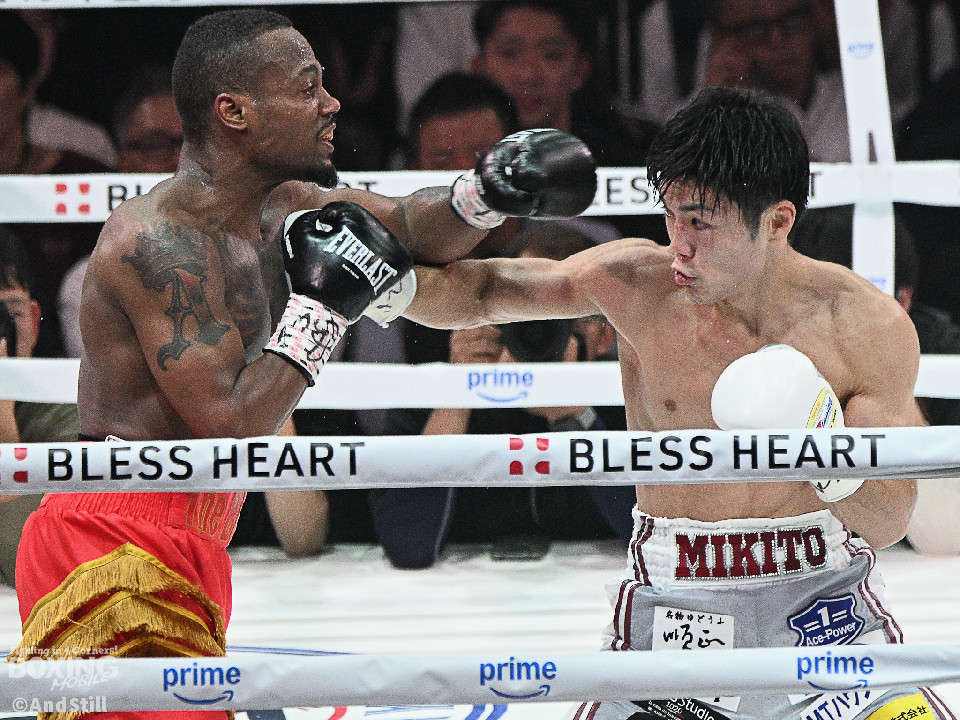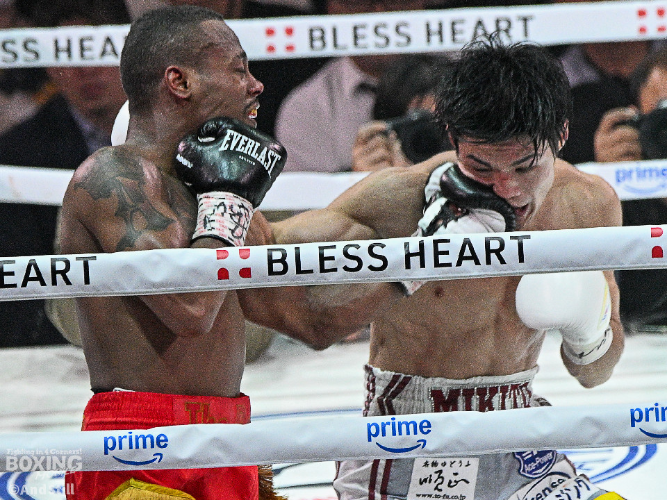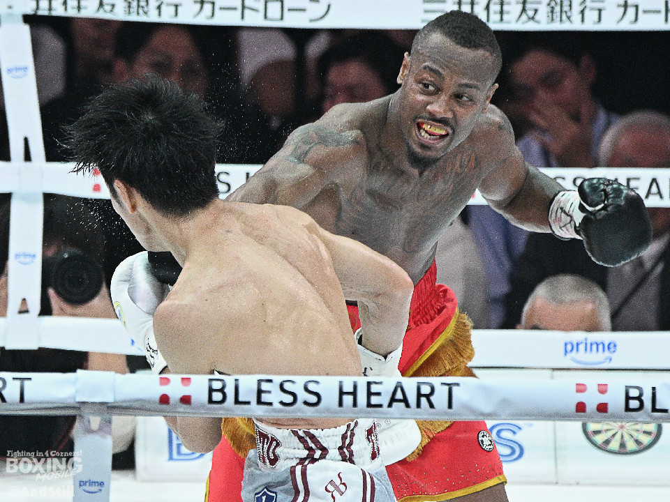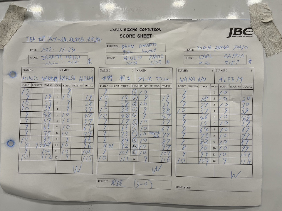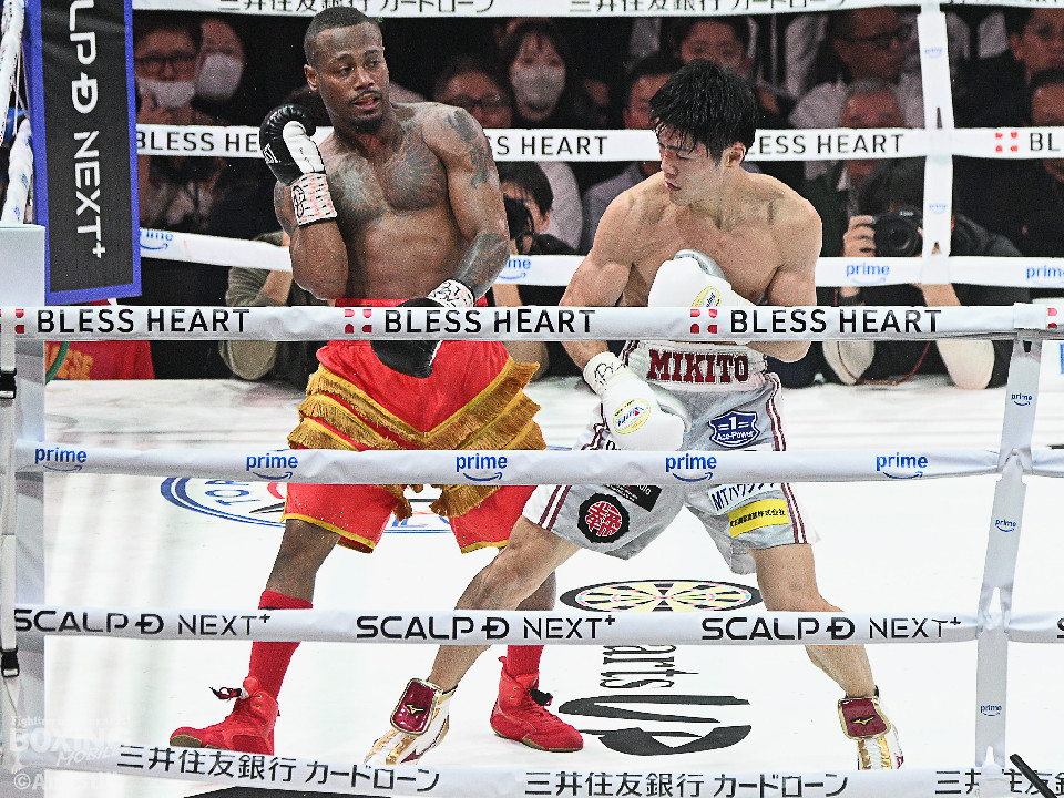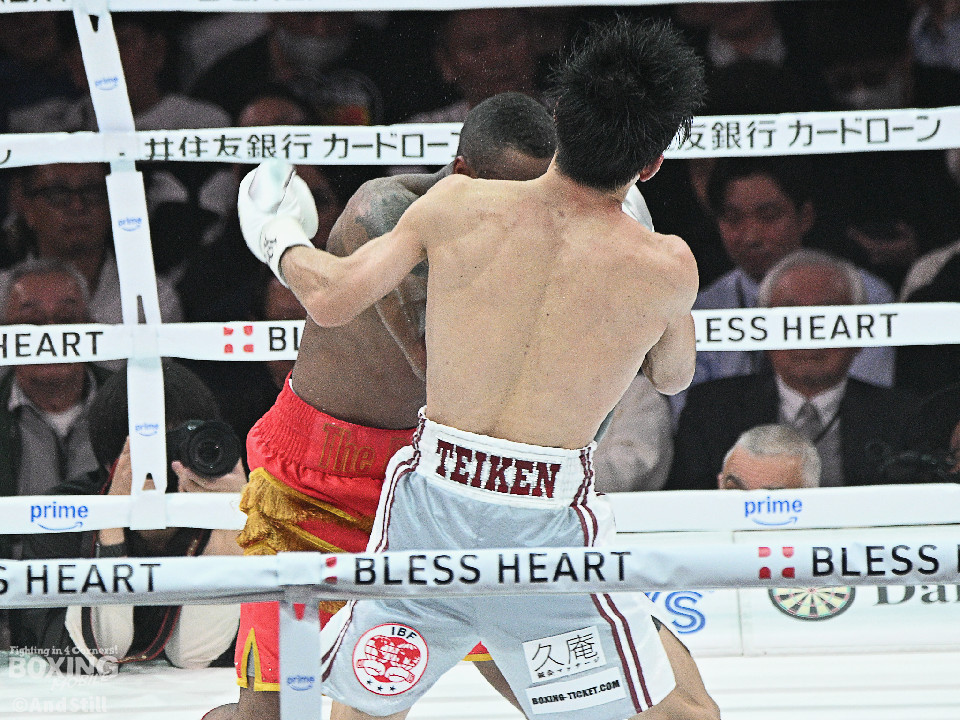 試合:IBF世界フェザー級挑戦者決定戦、14戦全勝(13KO)の中野が元WBA世界バンタム級暫定王者のアリームと対戦した。会場に緊張感が包まれる中、サウスポー中野がジリジリと距離を詰めて左ボディストレートをヒット。2回、アリームは打ち終わりを狙うと右ストレートで顔を弾き見栄えの良さをアピール。3回、左ストレートにつなげたい中野だが、距離が遠いのかヒットを奪えず。それでも攻め急がずプレスをかけた。5回、アリームは反応の良さを見せると単発の右をヒット。6回、アリームは打ってはすぐにサイドに回り込み、試合巧者ぶりを発揮。7回、中野は左を強振するが思い通りの展開を作れず。8回、アリームは逆ワンツーを好打すると足を使いながら的を絞らせず。偶然のバッティングでアリームは左目上をカット。9回、「幹士」コールが沸き起こる中、中野は左ボディストレートを決めるが、アリームはパパっと手数をまとめてペースを渡さず。10回、アリームは出入りを活かしたボクシングを展開、ラウンド終了間際に右ストレートでダウンを奪った。11回、プレスをかけた中野だが、決定打を打ち込めず。12回、中野は左フックをねじ込み腰を沈めさせてチャンス到来。会場が盛り上がる中、前に出たがアリームはクリンチで攻撃を遮断した。試合運びの上手さを見せたアリームが挑戦権を獲得した。中野が15戦目で初黒星を喫した。