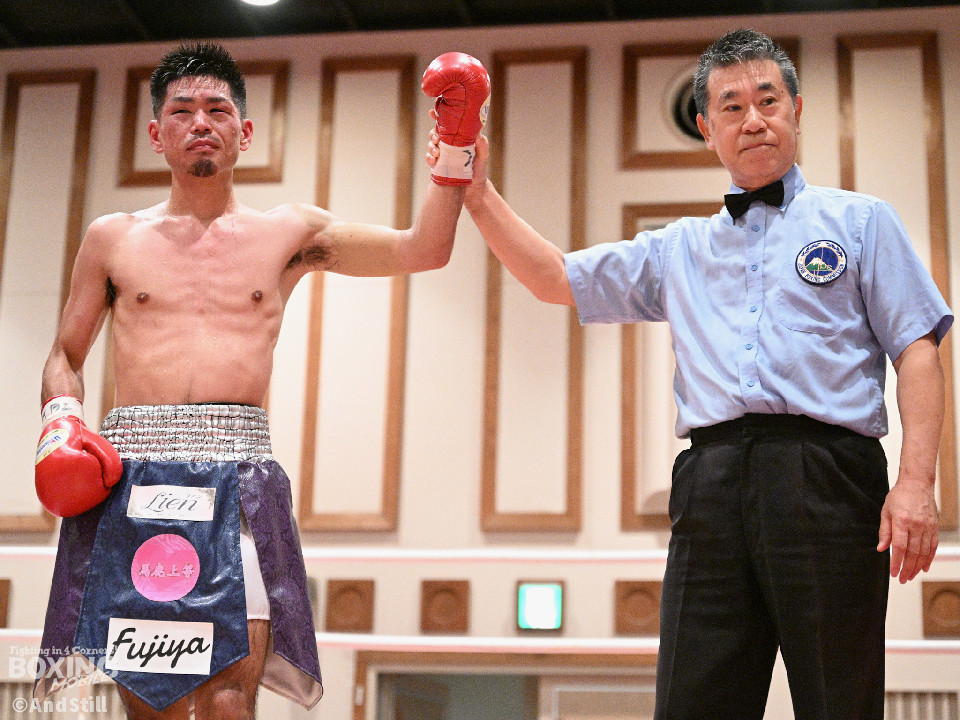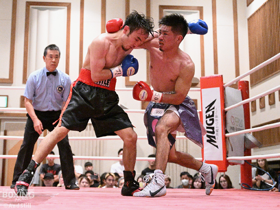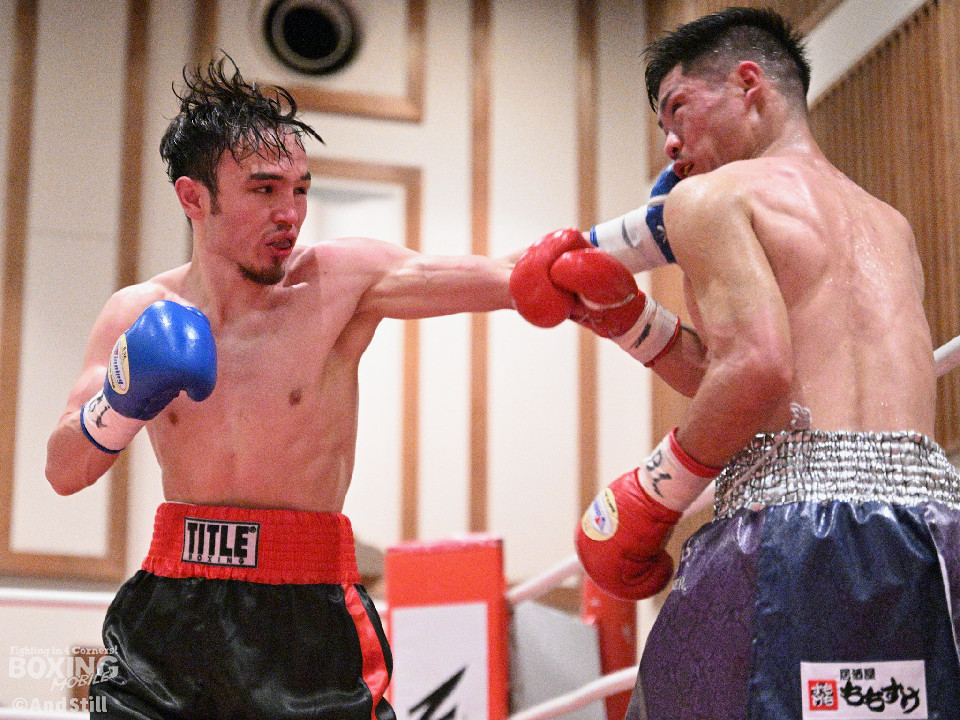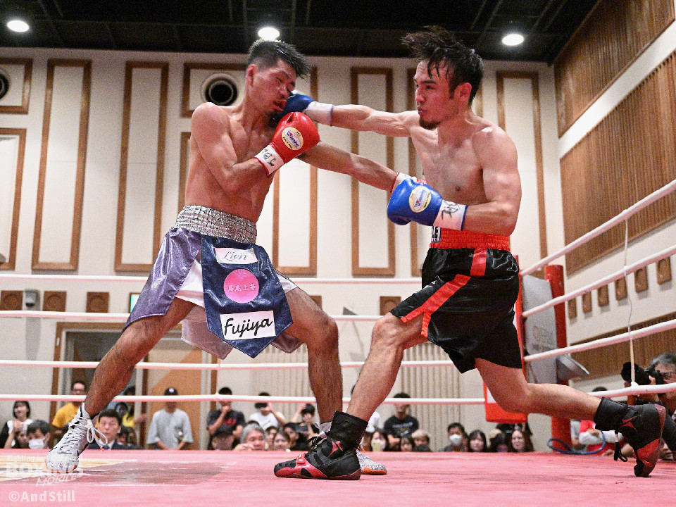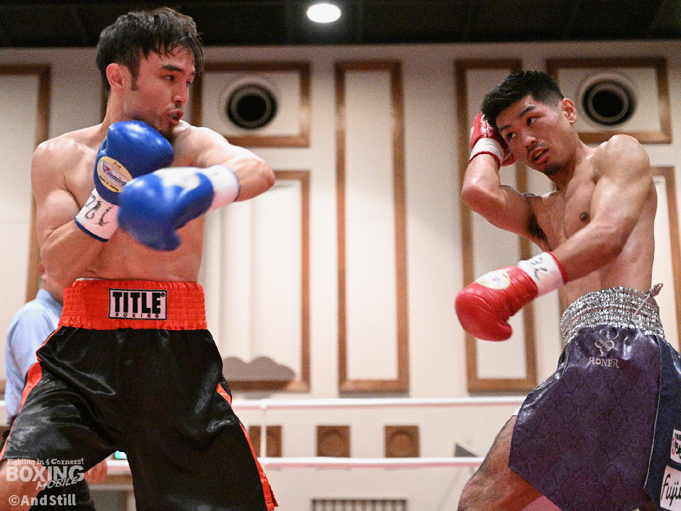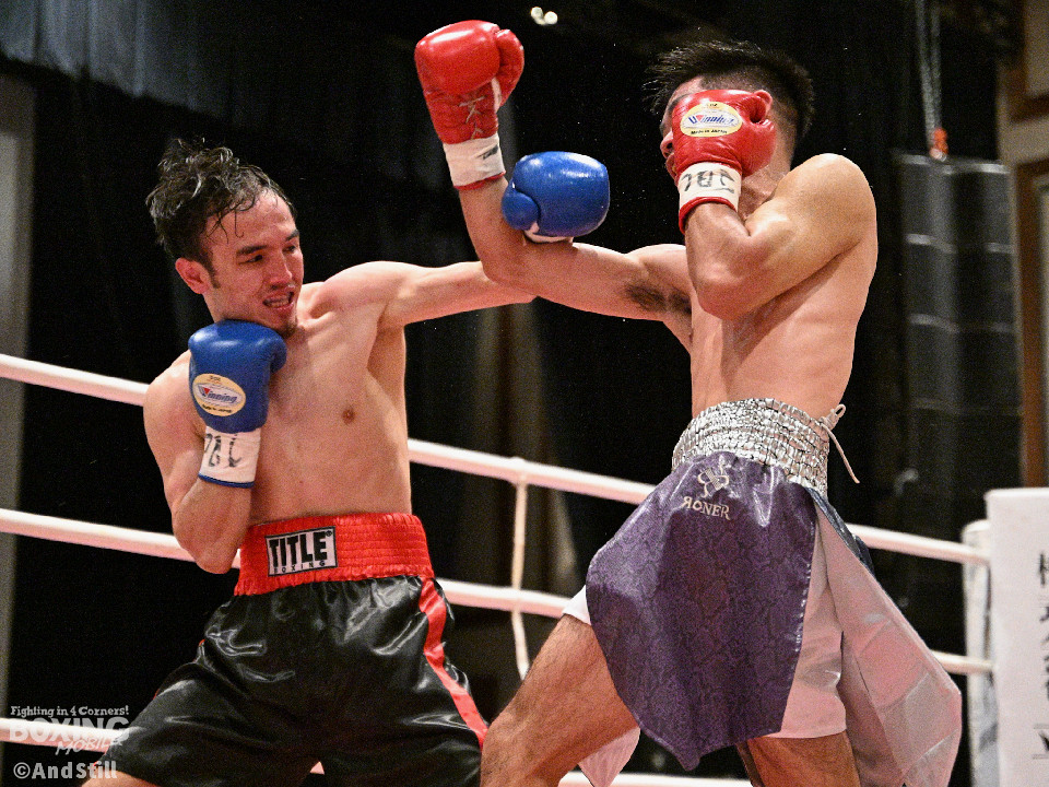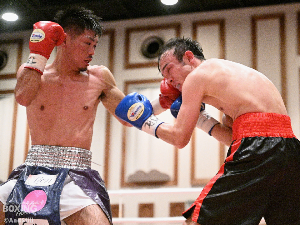 試合:金城は突き刺すような強いジャブで距離をコントロールすると、ショートアッパー、左の上下のコンビネーションで攻勢。チャーターフーはボディにジャブを突き刺すと、フックを振り応戦。2回、金城は丁寧にジャブを軸にガードで被弾を回避すると上下のコンビネーションで効果的に攻勢を印象付ける。3回、チャーターフーは力強いワンツーを繰り出すが、金城は冷静にアッパーからボディと上下への有効打でポイントをピックアップ。4回、金城は右オーバーハンドをヒット。焦らず上下へのパンチで削り、優勢に進めた。5回、金城は冴え渡るジャブから右カウンターを合わせてぐらつかせると攻勢。6回、金城はアッパーから右オーバーハンドを好打。8回、クロスレンジで互いにパンチを交錯させるが、要所で金城のジャブが有効に作用した。金城が2〜8ポイント差で難敵を撃破した。