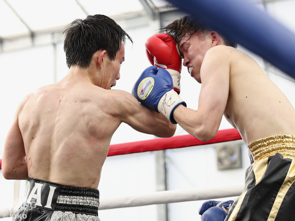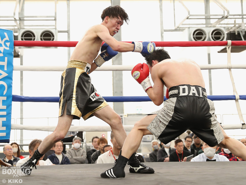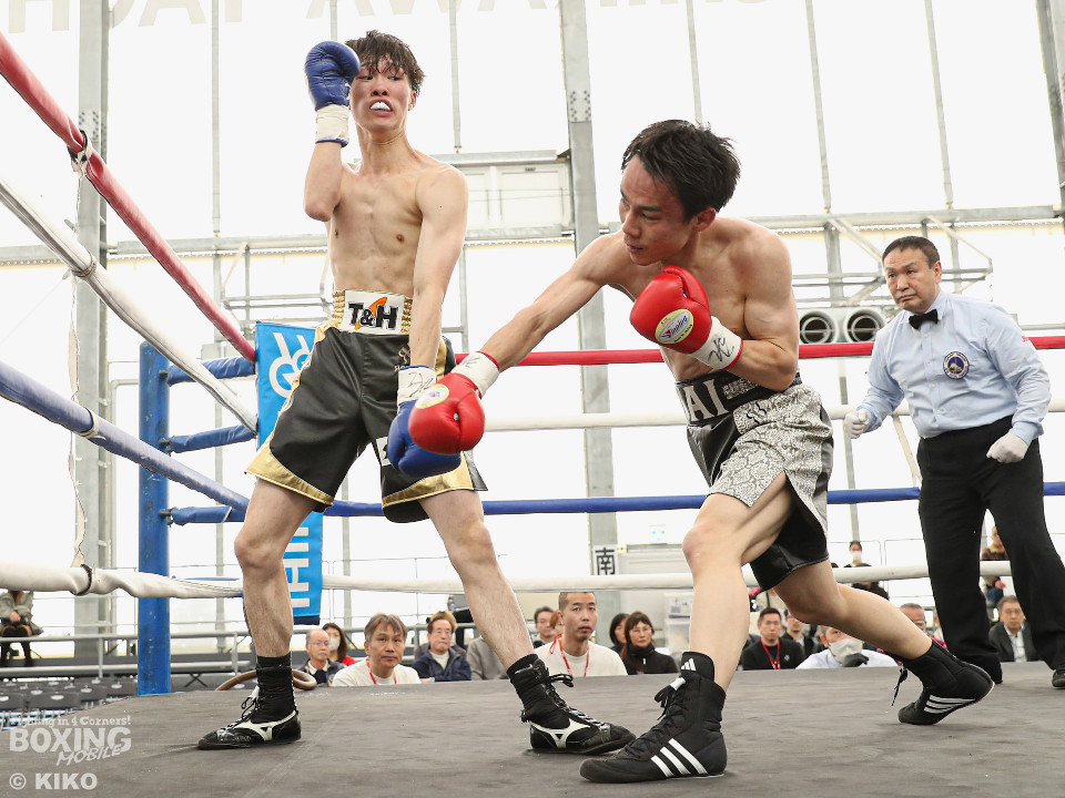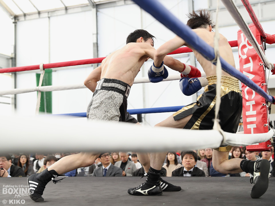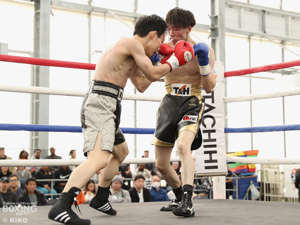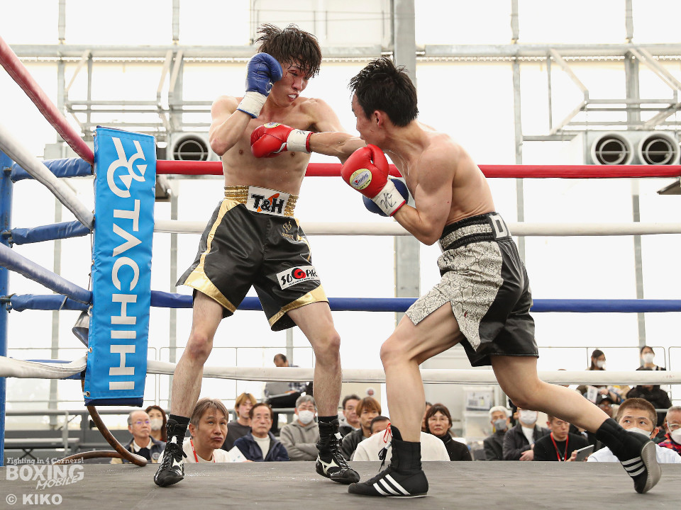 試合:紺野が至近距離で左右のフックを強振、対する福嶋はジャブを突き距離を保つ。2回、紺野が右のオーバーハンドでダウンを先取、立ち上がった福嶋が距離を保ちながらワンツーの連打で対抗しこの回をしのぐ。3回、4回と紺野がプレスを強め上下を攻め、福嶋は退がりながらもワンツーを返す。途中、福嶋が偶然のバッティングにより右目上をカット。防戦一方となった福嶋を見てレフェリーが試合をストップ。終始攻め続けた紺野がTKOで勝利を収めた。