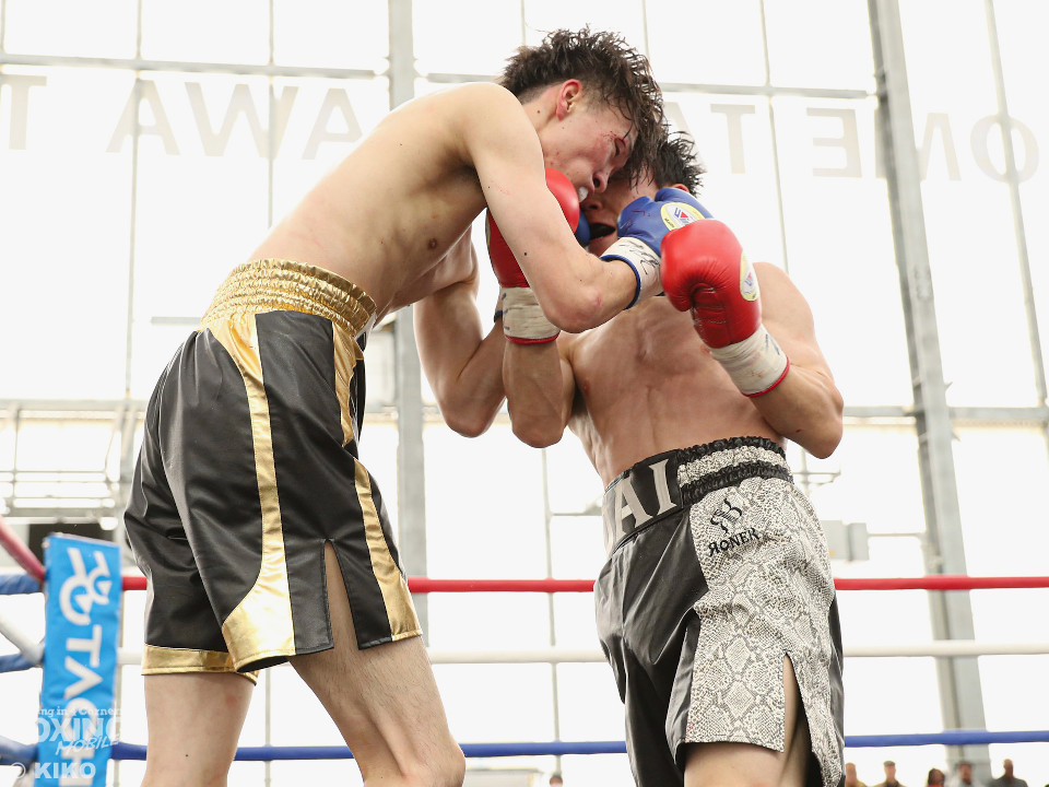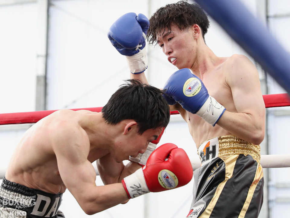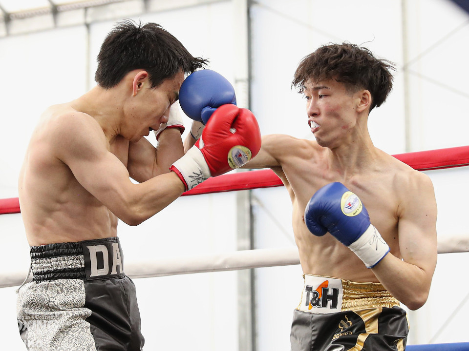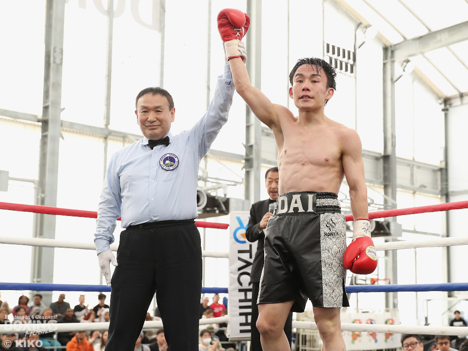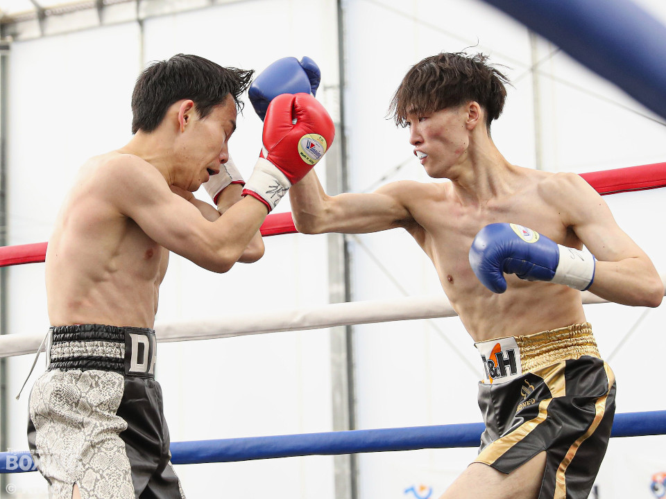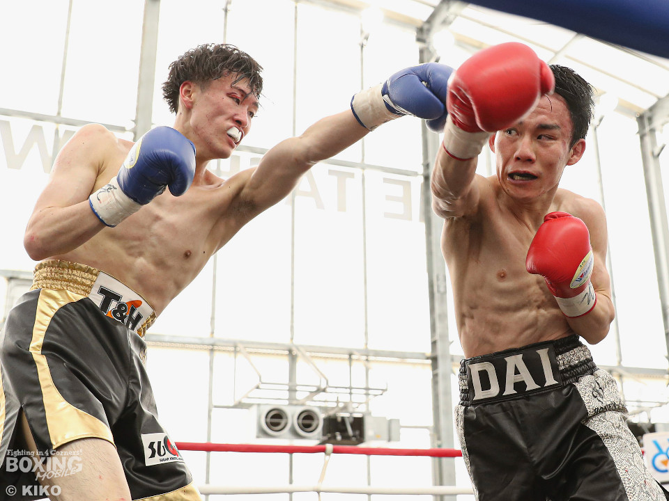 試合:紺野が至近距離で左右のフックを強振、対する福嶋はジャブを突き距離を保つ。2回、紺野が右のオーバーハンドでダウンを先取、立ち上がった福嶋が距離を保ちながらワンツーの連打で対抗しこの回をしのぐ。3回、4回と紺野がプレスを強め上下を攻め、福嶋は退がりながらもワンツーを返す。途中、福嶋が偶然のバッティングにより右目上をカット。防戦一方となった福嶋を見てレフェリーが試合をストップ。終始攻め続けた紺野がTKOで勝利を収めた。