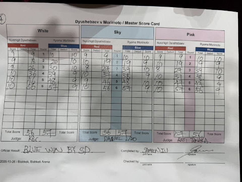 試合:森本がサウスポーのデュシェバエフと対決。初回は森本が距離を詰めてジャブと右ストレートを打って先に手を出した。3回、打ち合いの中で森本が右ストレートでダウンを奪った。立ち上がったデュシェバエフは距離を詰めて左を軸に組み立てを図った。4回もデュシェバエフはテンポアップしてワンツーとノーモーションの左を下に打って飛び込んだ。5回はデュシェバエフが森本の顔面を打ち抜く機会が増えた。前半はステップでデュシェバエフとの距離を作った森本だが、距離を詰められ始めた。最終回、体を寄せて離れるタイミングを狙って手を出す両者。打ち終わりに絡まった両者の腕をレフェリーが解いた。最後まで手を出し続けた両者だが判定に。