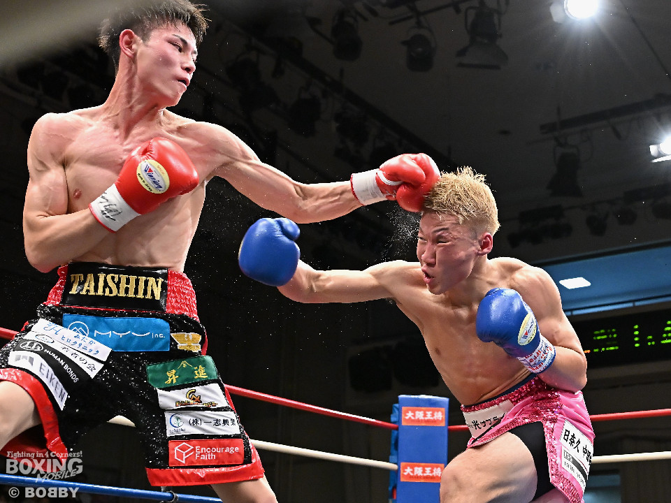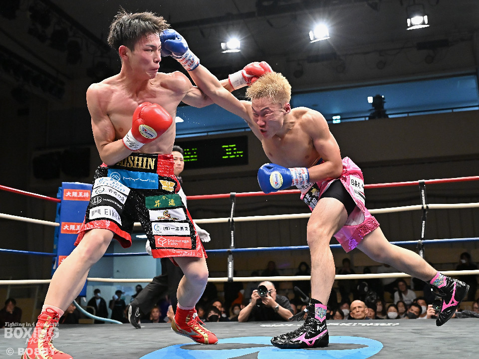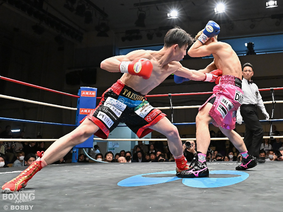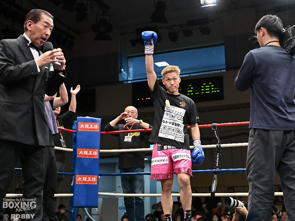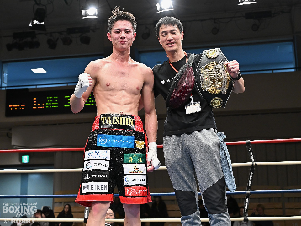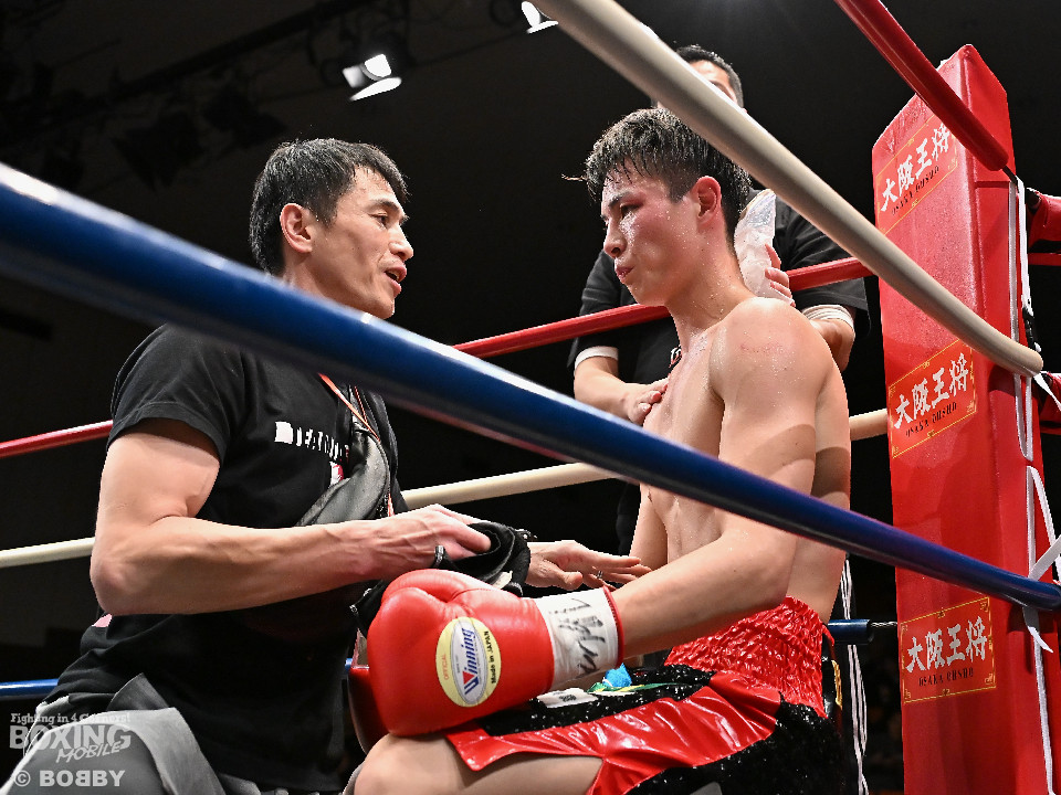 試合:日本ユース・ウェルター級王者の磯谷V2戦。挑戦者はA級初戦でチャンスをつかんだ山本。初回、磯谷がロングレンジをキープしながらジャブを飛ばすのに対し、山本は単発の左フックで対抗。2回、磯谷は長いリーチを活かした左で組み立てるとワンツーをヒット。続く回も磯谷が距離を保った。4回、山本はプレスをかけてワンツーを好打し見栄えの良さをアピール。このラウンド、磯谷は手数が少ない。前半終了時の公開採点は、39-37×3で磯谷がリード。5回、磯谷はジャブを軸に丁寧な組み立て。6回、磯谷はジャブで顔を弾くと山本の左目下が腫れてきた。8回、逆転を狙う山本は積極的に攻め立てたが決定打を打ち込むことができなかった。終始、試合をコントロールした磯谷が防衛に成功した。