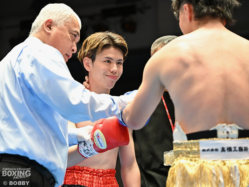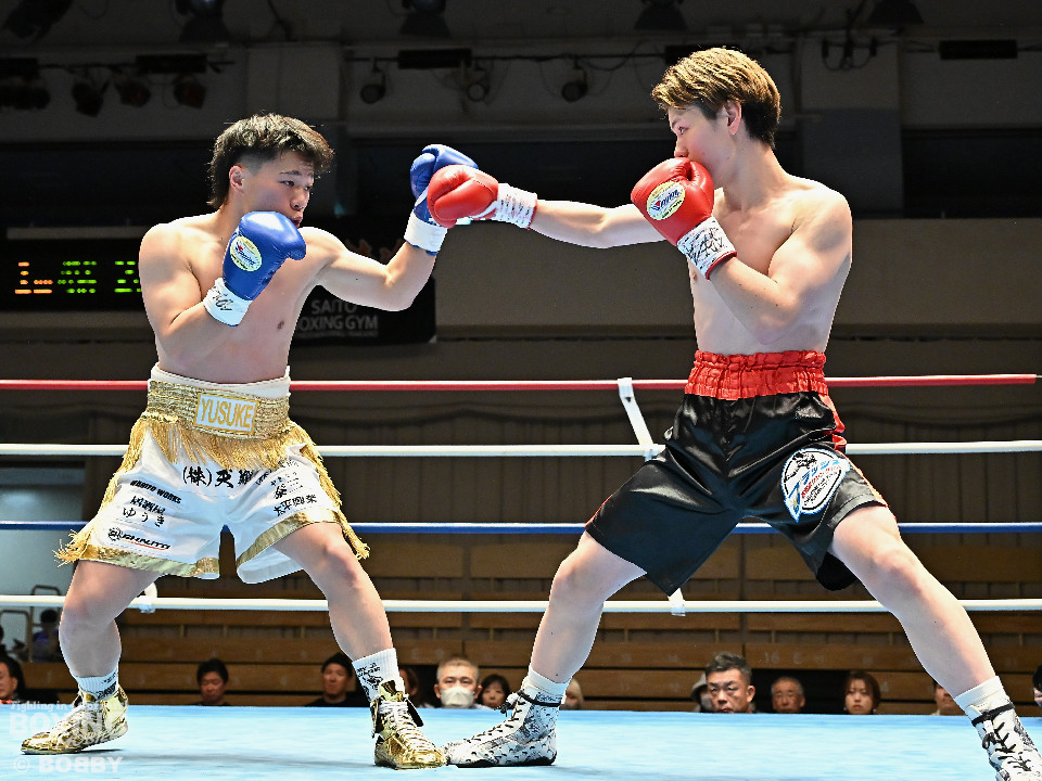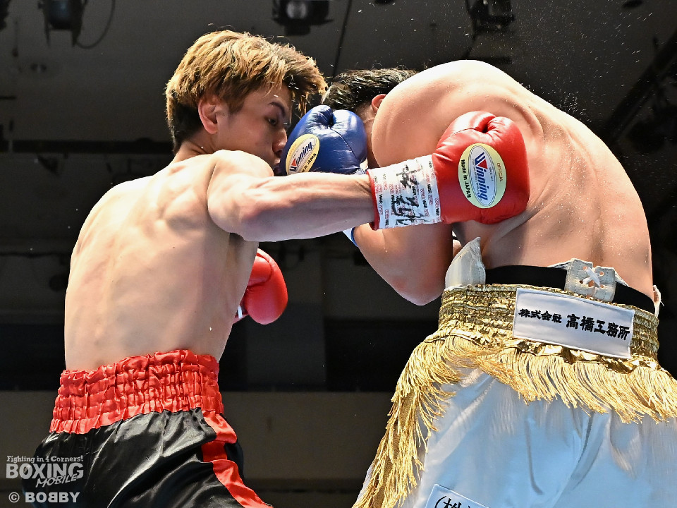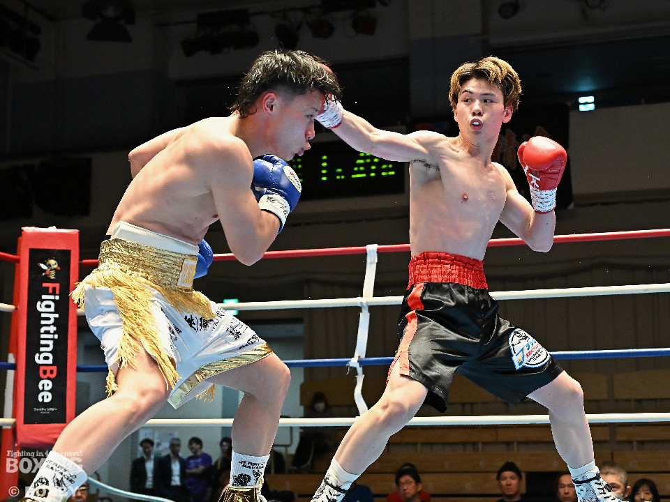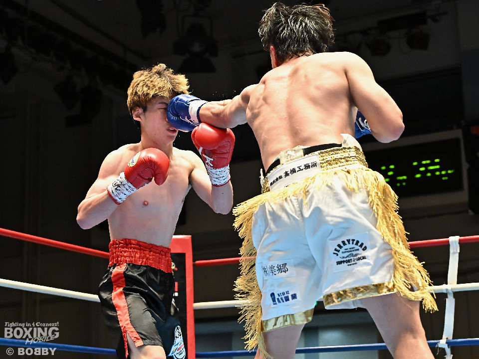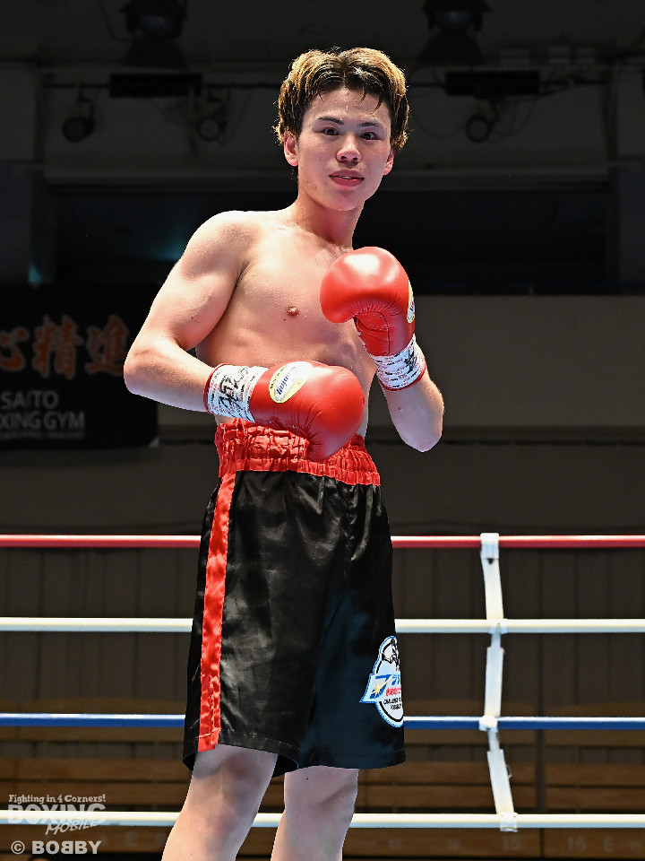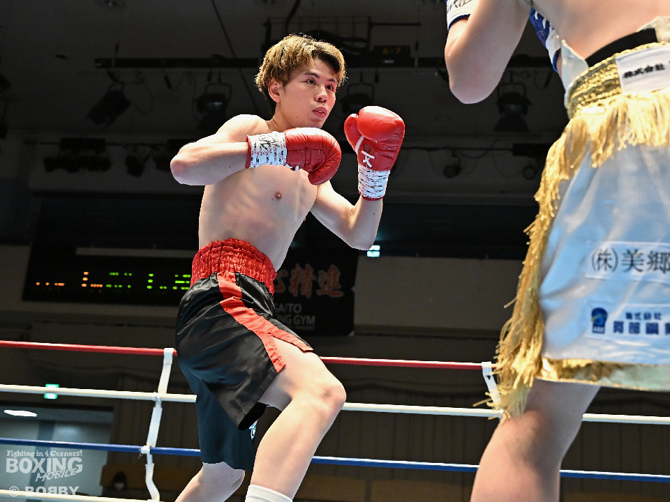 試合:サウスポー川島が後ろ重心から単発の左オーバーハンドで脅かすと返しのパンチを距離で外す。2回、右ストレートにつなげたい今井だが、距離が遠く行き切れず。3回、川島は左ストレートで迎え撃つと待ちのボクシングでポイントを加点。4回、川島は足を使いながら左ストレート、右フックを合わせてアウトボクシングを貫いた。川島がフルマークの判定勝ちで3連勝を飾った。