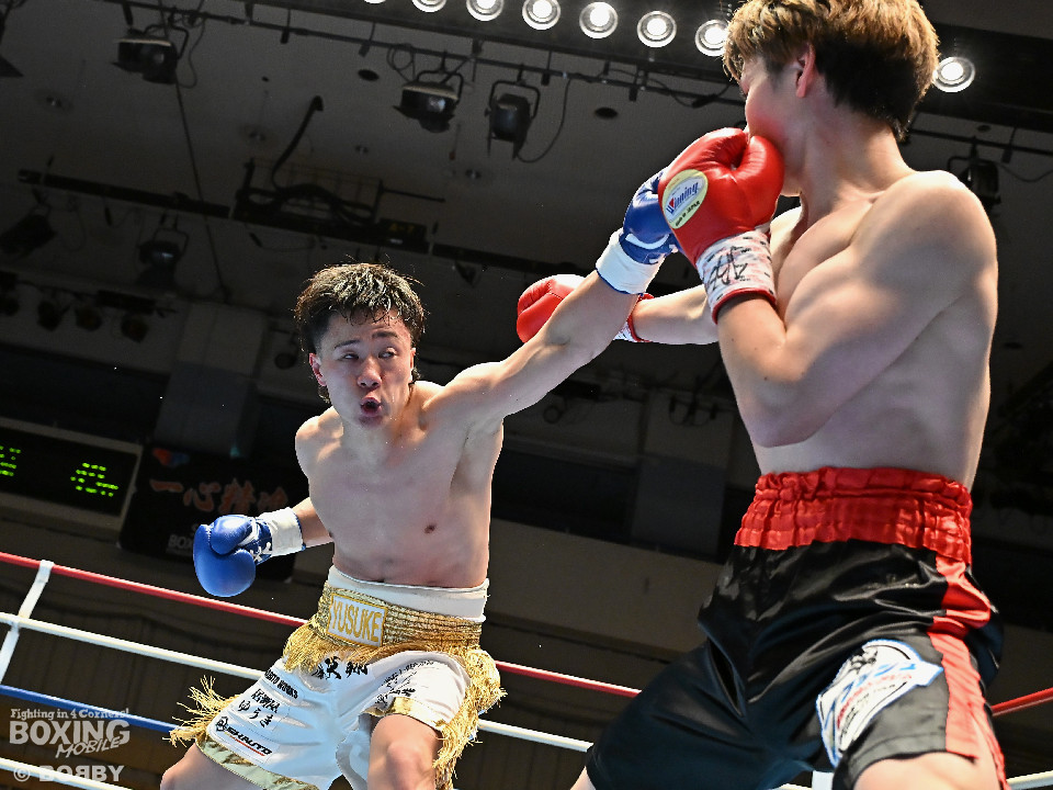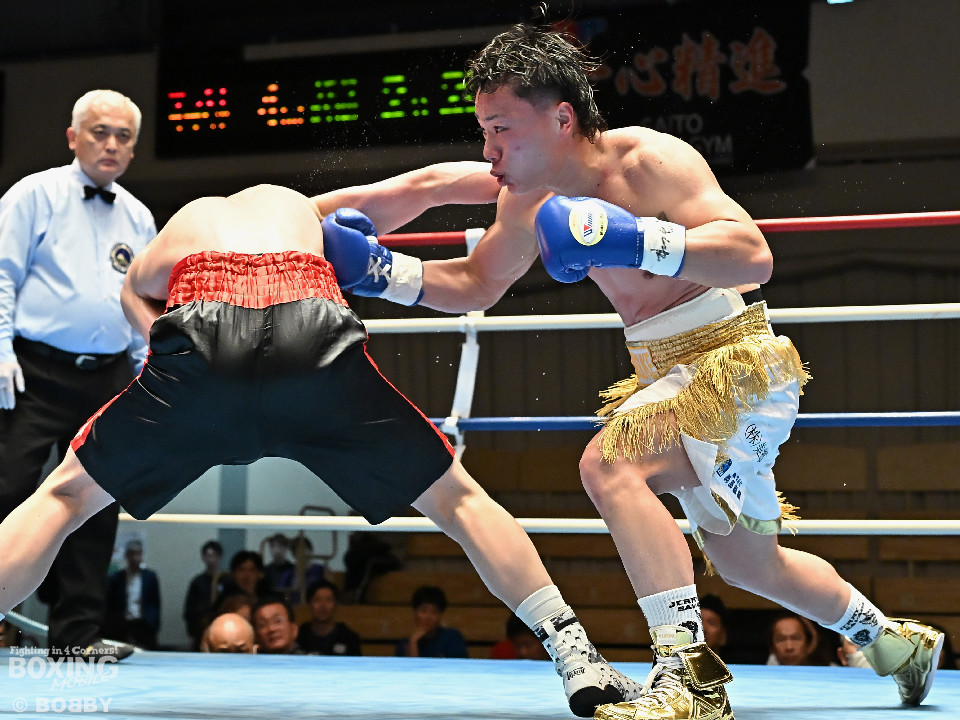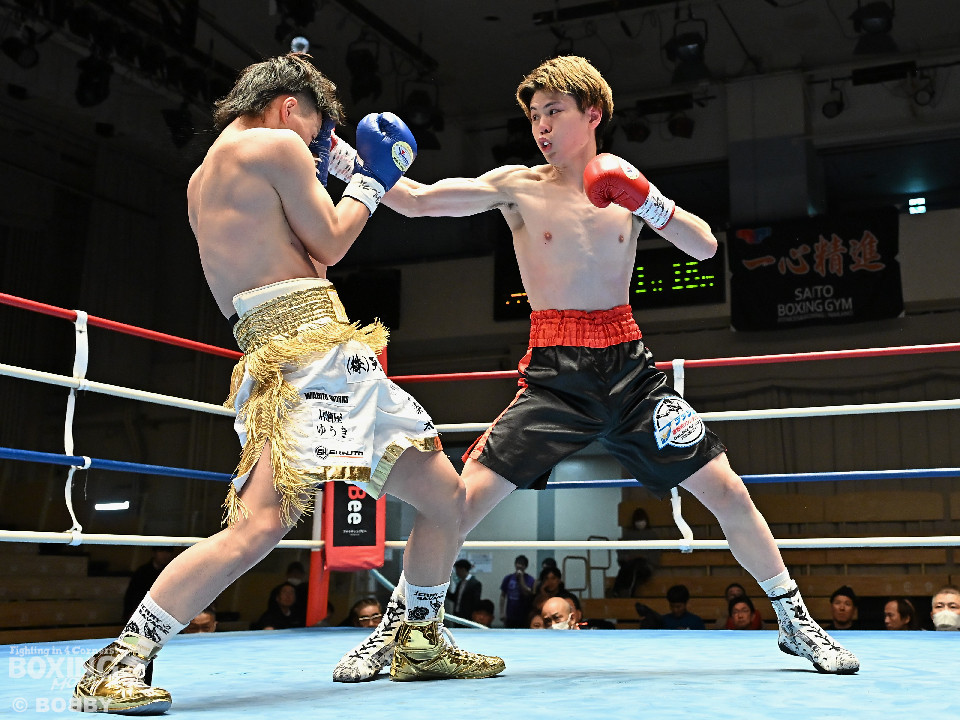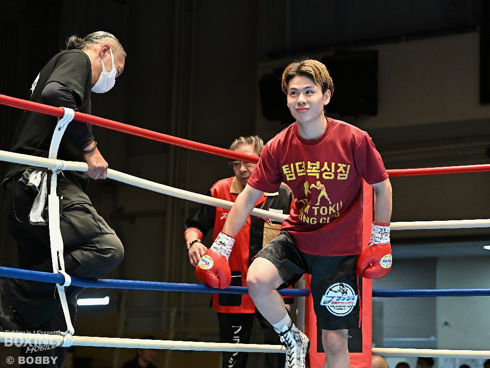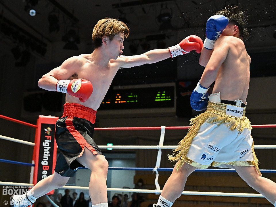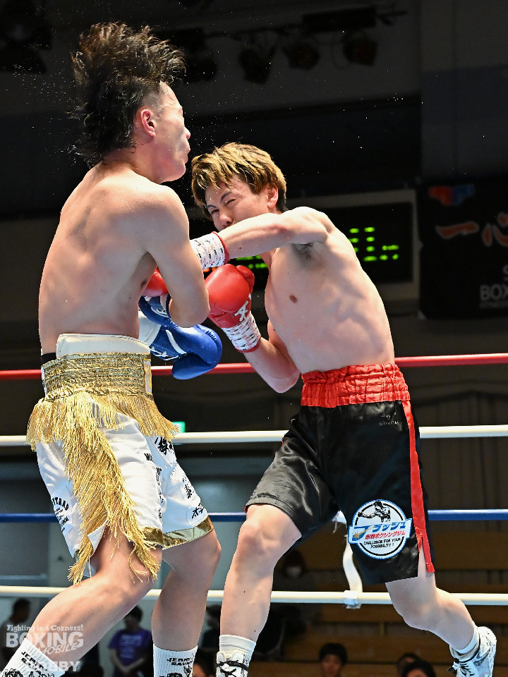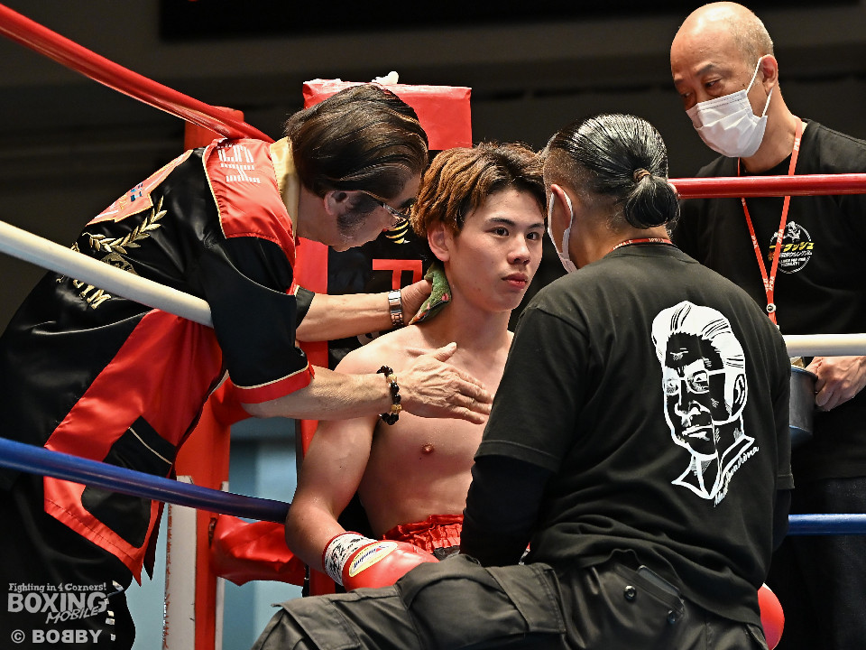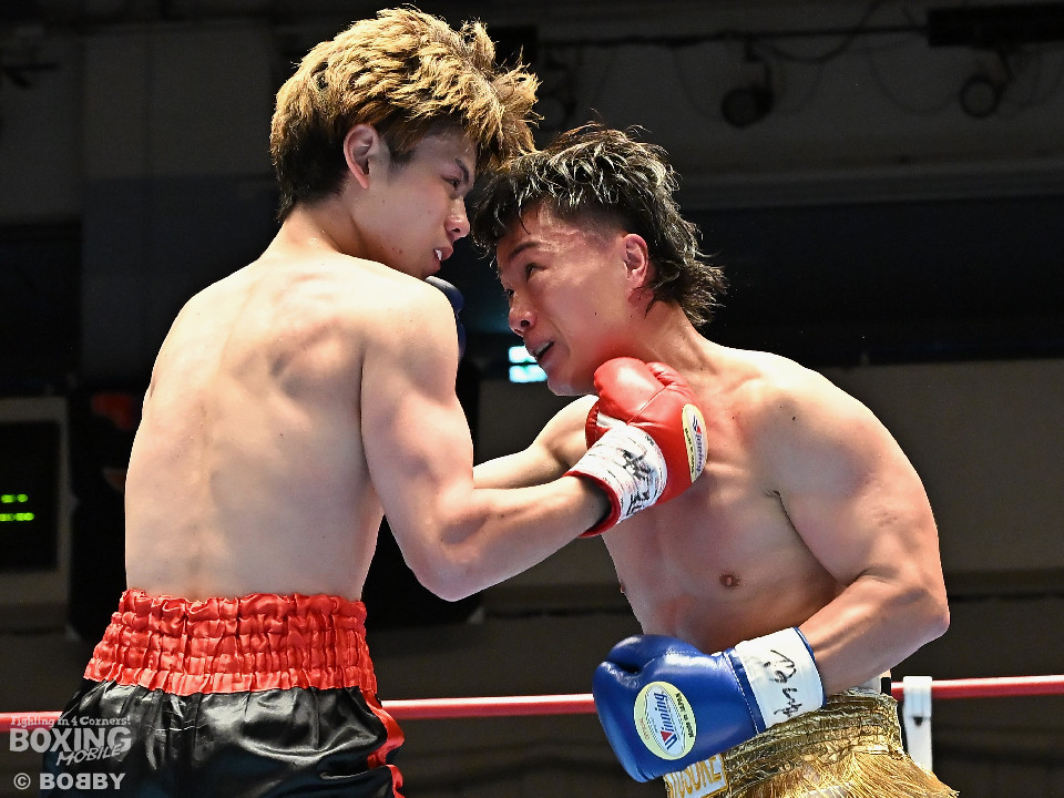 試合:サウスポー川島が後ろ重心から単発の左オーバーハンドで脅かすと返しのパンチを距離で外す。2回、右ストレートにつなげたい今井だが、距離が遠く行き切れず。3回、川島は左ストレートで迎え撃つと待ちのボクシングでポイントを加点。4回、川島は足を使いながら左ストレート、右フックを合わせてアウトボクシングを貫いた。川島がフルマークの判定勝ちで3連勝を飾った。
