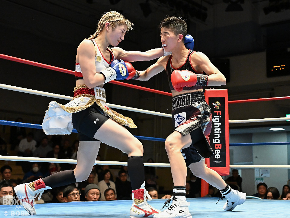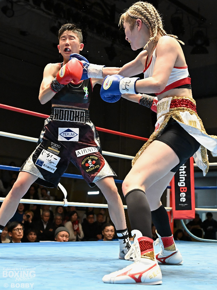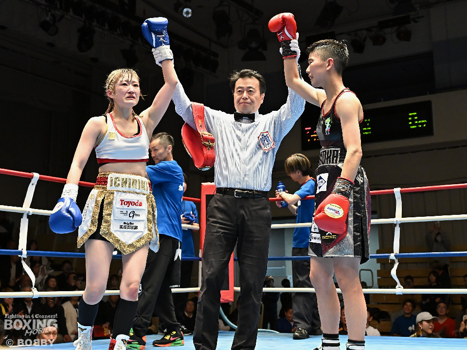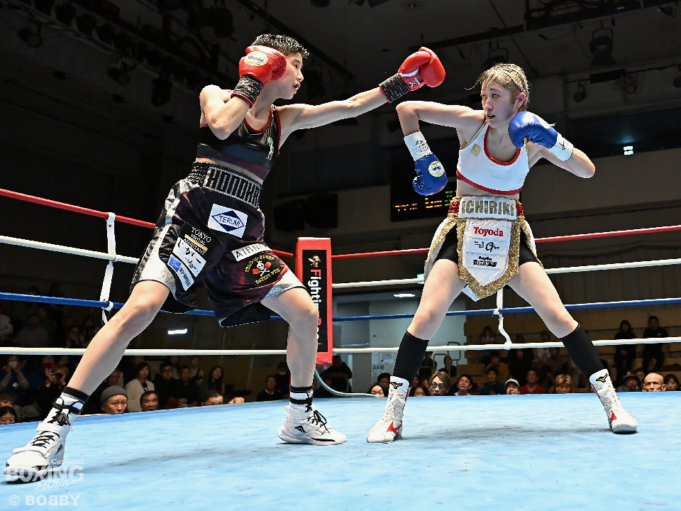試合:OPBF東洋太平洋アトム級王者の狩野とタイトル初挑戦の樋口が拳を交えた。初回、サウスポー樋口がトントンとステップを刻みながらワンツー、右フックで先制攻撃。2回、樋口はワンツーで顔を弾くと距離をキープ。狩野は右から切り込み対抗。3回、山場が少ない展開の中、ラウンド終盤、樋口が一瞬の隙を突き、左ショートをヒット。4回、一進一退の攻防でし烈なペース争い。前半終了時の公開採点は39-37×1、38-38×2で狩野がわずかにリード。5回、狩野は距離を詰めてワンツーを繰り出せば、樋口も右フックで応戦。狩野はヒッティングで右目下を腫らした。6回、お互いにクリーンヒットがない中、狩野が右ショートをヒット。7回、狩野は足を使いながら要所でワンツーをヒット。8回、樋口はプレスをかけてワンツーを繰り出せば、狩野も負けじと返したが、決定打は生まれなかった。ジャッジ委ねられた採点は1者が狩野につけたが残り2者はドロー。狩野が苦戦しながらもベルトを死守した。