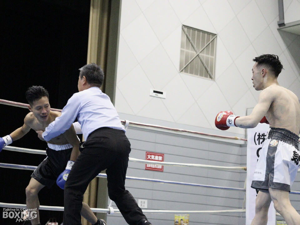 試合:中間距離でジャブの差し合いからスタート、辻がワンツーでガクッと腰を沈めさせるとチャンスを逃さず右ストレートでダウンを奪取。再開後、小玉に襲い掛かると怒涛の連打でレフェリーストップに持ち込んだ。辻が初回KO勝ちでデビュー戦を飾った。