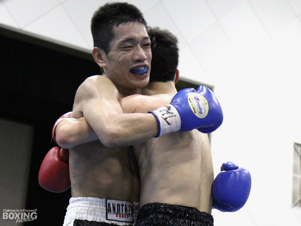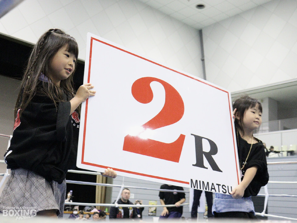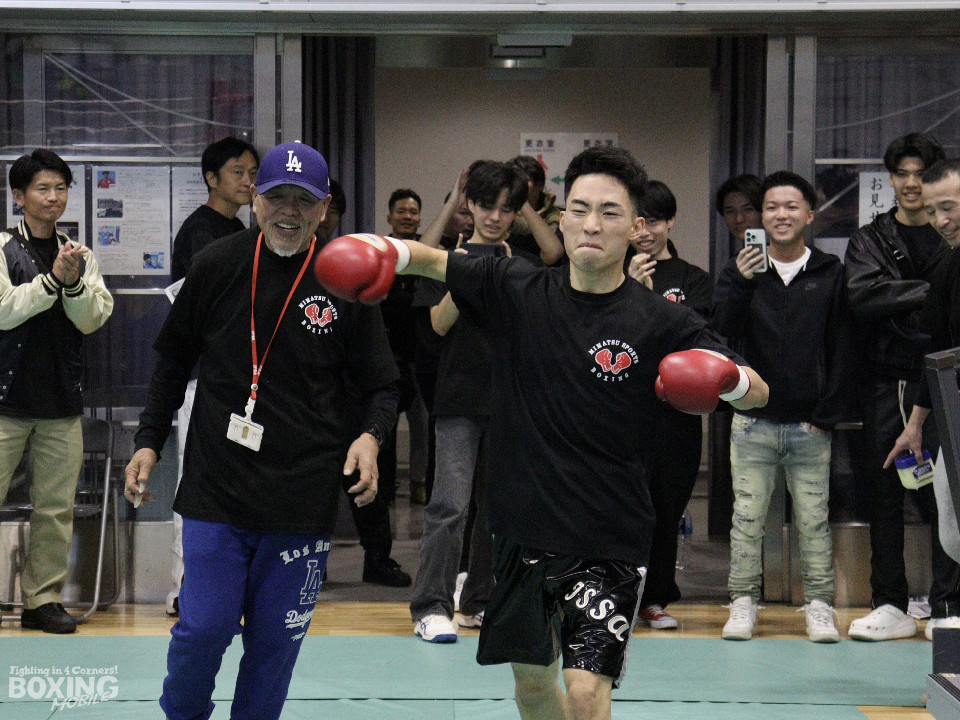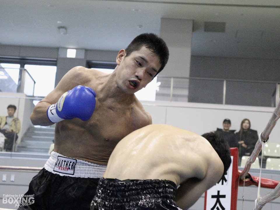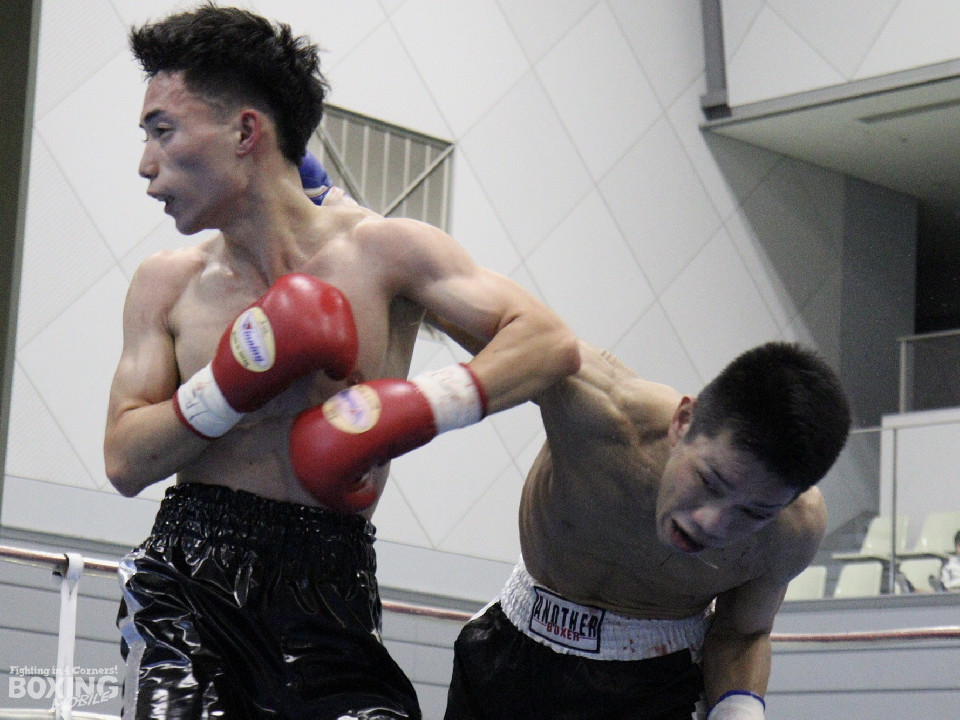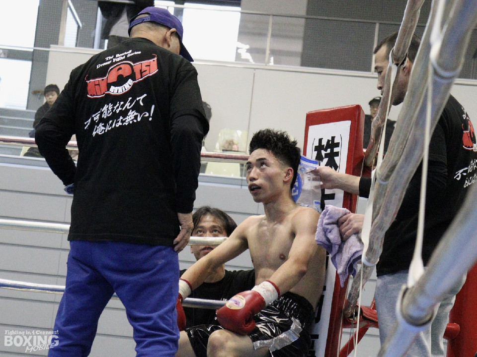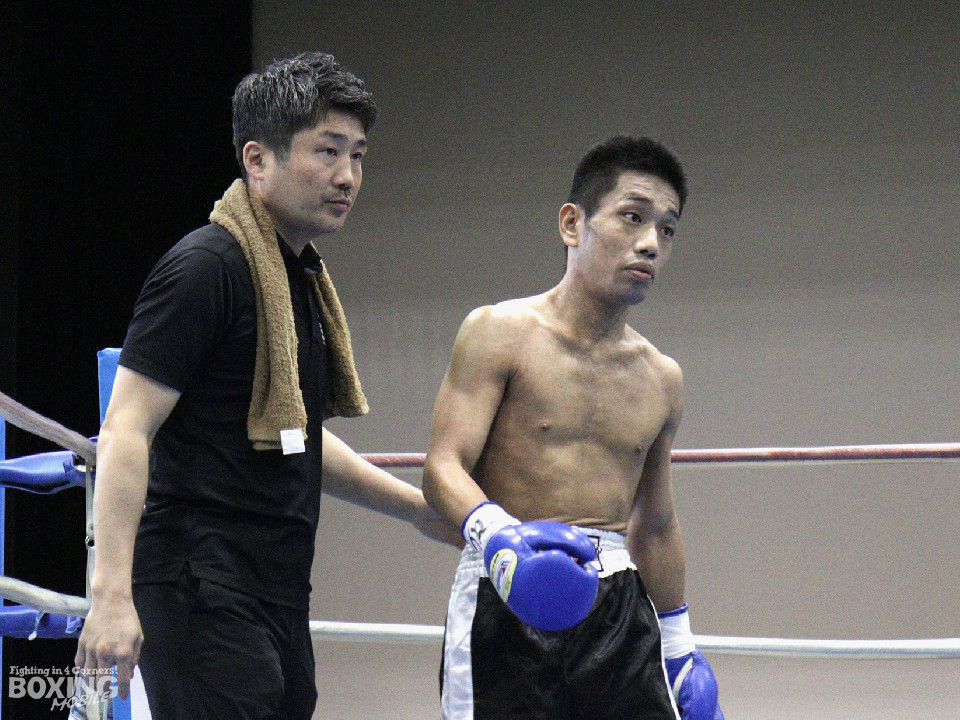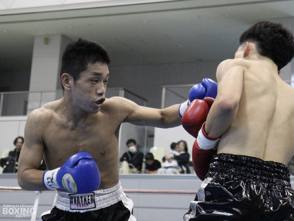 試合:重岡が出入りを意識しながら右カウンターで顔を弾き先制。2回、重岡はフットワークを駆使しながらワンツーをヒット。左ボディで動きを止めに行きたい牧山だが、捕まえきれず。3回、牧山はしつこく前に出て右フックを叩きつけて反撃。偶然のバッティングで牧山は左目上をカット。4回、多少の空振りを気にせずグイグイと攻め立てる牧山と足を使って捌きたい重岡の構図となった。ジャッジに委ねられた採点は三者三様の引き分け。