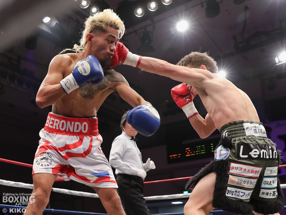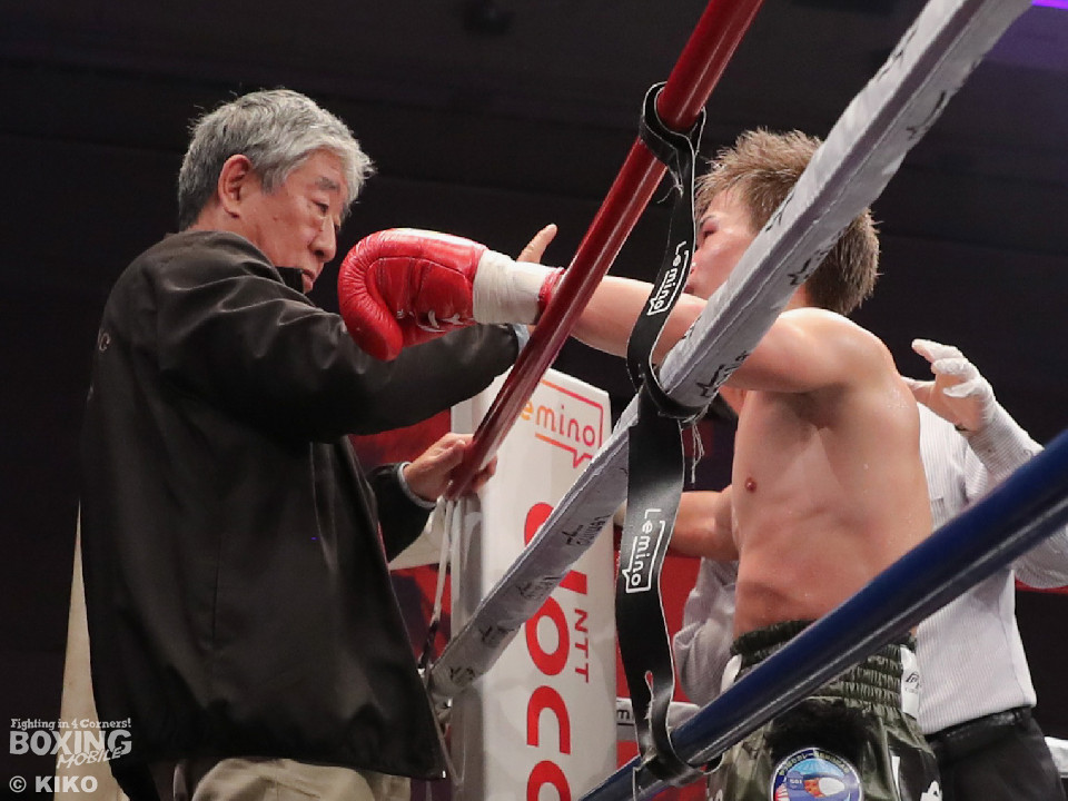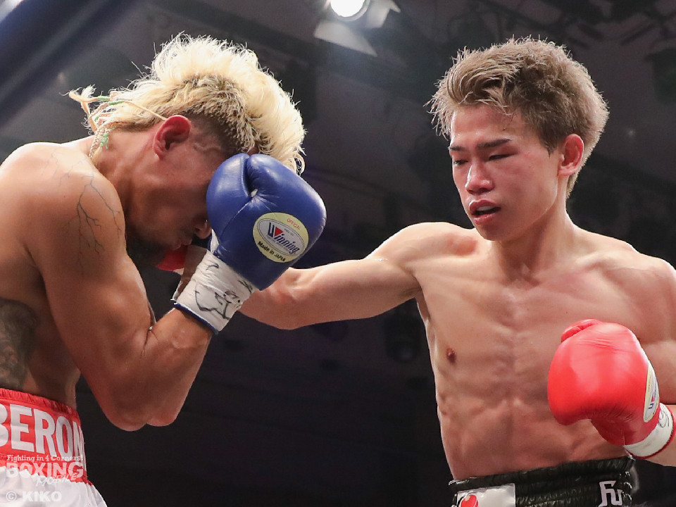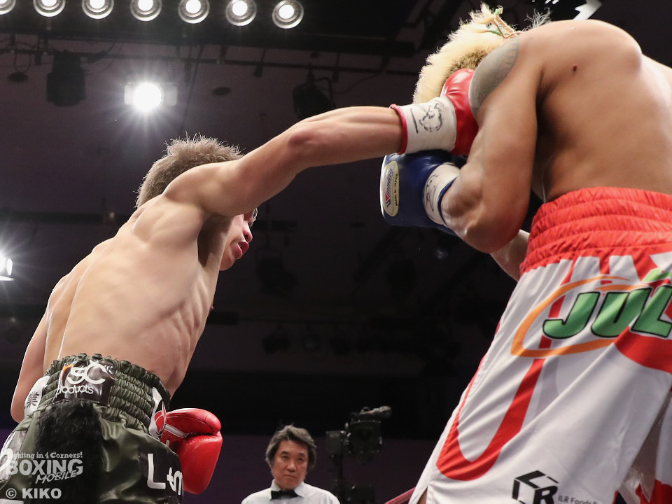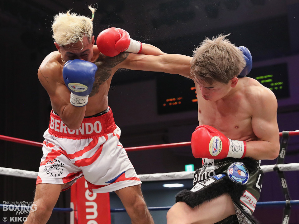 試合:WBO-APスーパーフライ級9位の田中が5戦目のリングに上がった。初回、田中がワンツー左ボディで仕掛けるのに対し、ベロンドも叩きつけるような右ボディで応戦。ラウンド終盤、田中が左ボディを突き刺すとベロンドは一瞬の間を置いてダウン。絶好のスタートを切った。2回、田中は緩急をつけながら上下に打ち分け攻勢。3回、田中は強烈な右フックから左ボディでダメージを与えると返しのパンチを冷静に対応。5回、田中は右ストレートで再三、顔を弾くがタフなベロンドも時折右オーバーハンドを返す。田中は偶然のバッティングで右目下を腫らした。6回、ベロンドは思い切りの良い右フックで反撃。7回、田中はジャブを軸にワンツーを好打しポイントを加点。8回、田中の右目下の腫れが大きくなり、2度目のドクターチェックの末、これ以上の試合続行を不能と判断したレフェリーは試合をストップした。田中が負傷判定勝ちで6連勝を飾った。