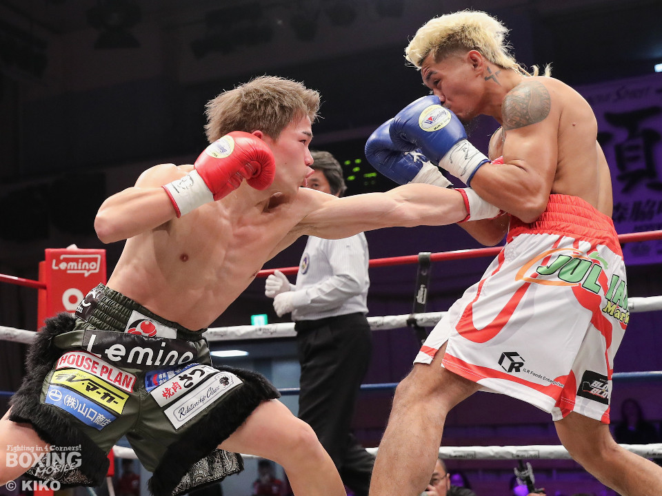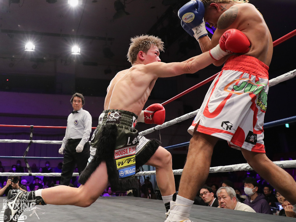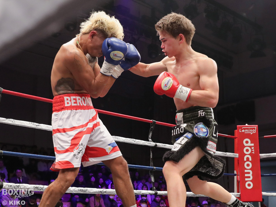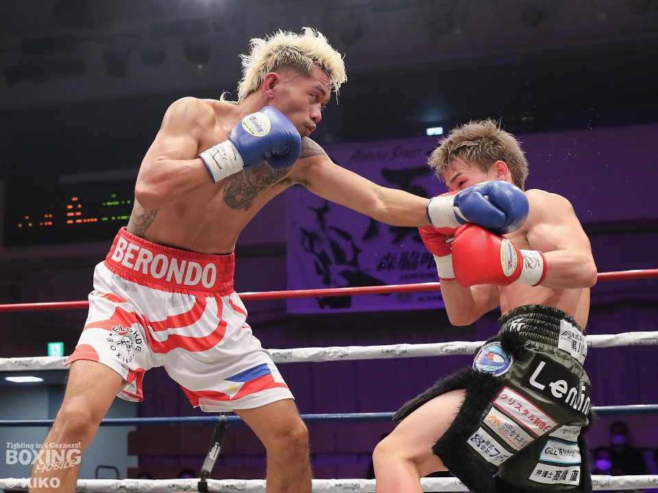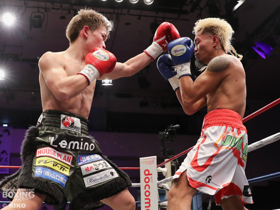 試合:WBO-APスーパーフライ級9位の田中が5戦目のリングに上がった。初回、田中がワンツー左ボディで仕掛けるのに対し、ベロンドも叩きつけるような右ボディで応戦。ラウンド終盤、田中が左ボディを突き刺すとベロンドは一瞬の間を置いてダウン。絶好のスタートを切った。2回、田中は緩急をつけながら上下に打ち分け攻勢。3回、田中は強烈な右フックから左ボディでダメージを与えると返しのパンチを冷静に対応。5回、田中は右ストレートで再三、顔を弾くがタフなベロンドも時折右オーバーハンドを返す。田中は偶然のバッティングで右目下を腫らした。6回、ベロンドは思い切りの良い右フックで反撃。7回、田中はジャブを軸にワンツーを好打しポイントを加点。8回、田中の右目下の腫れが大きくなり、2度目のドクターチェックの末、これ以上の試合続行を不能と判断したレフェリーは試合をストップした。田中が負傷判定勝ちで6連勝を飾った。