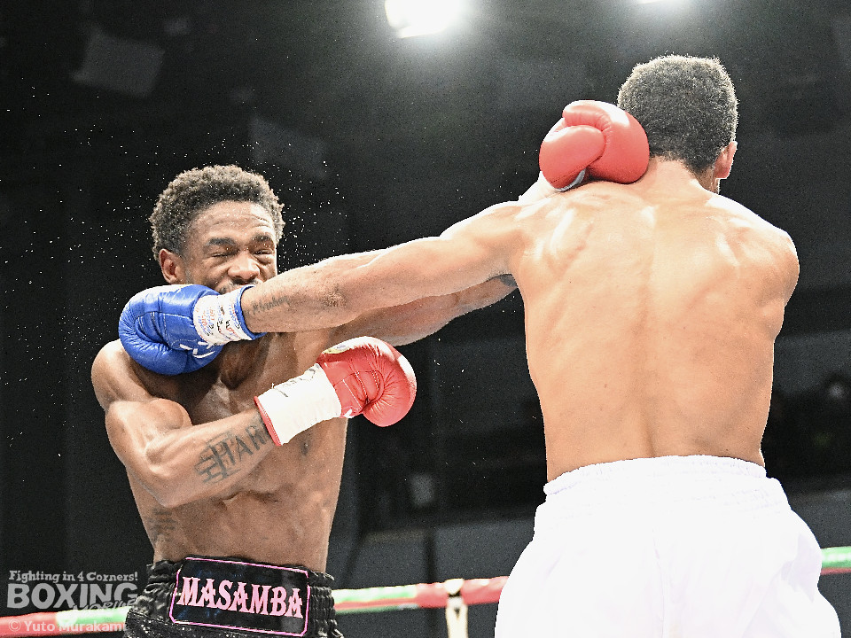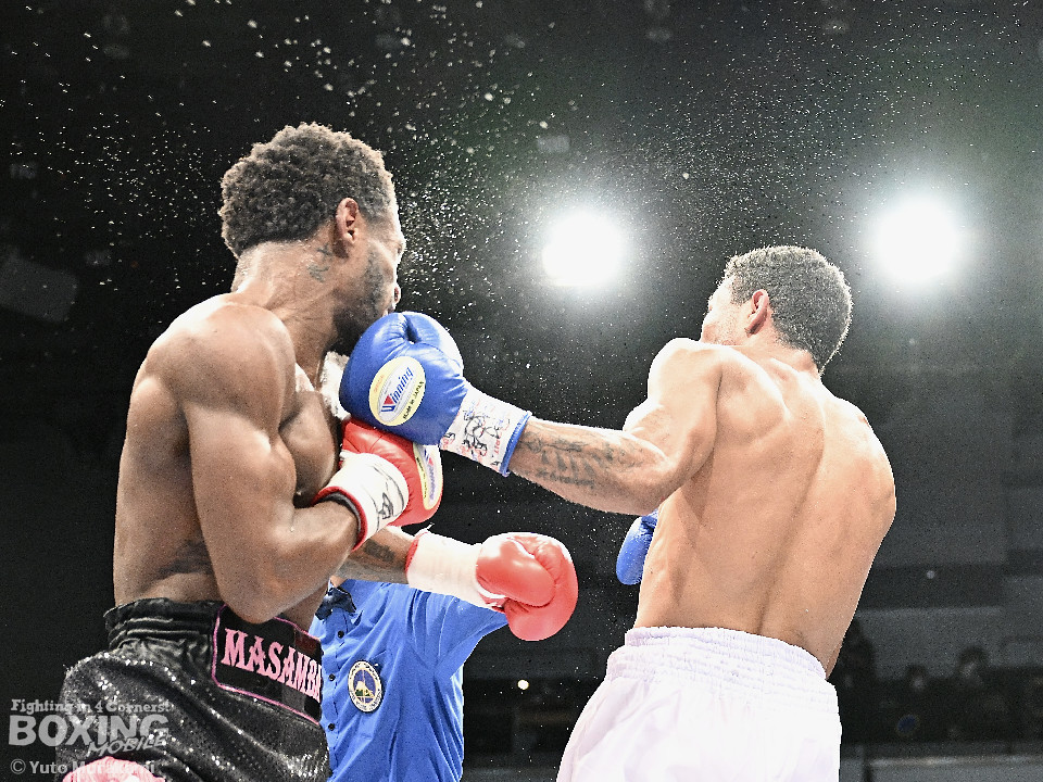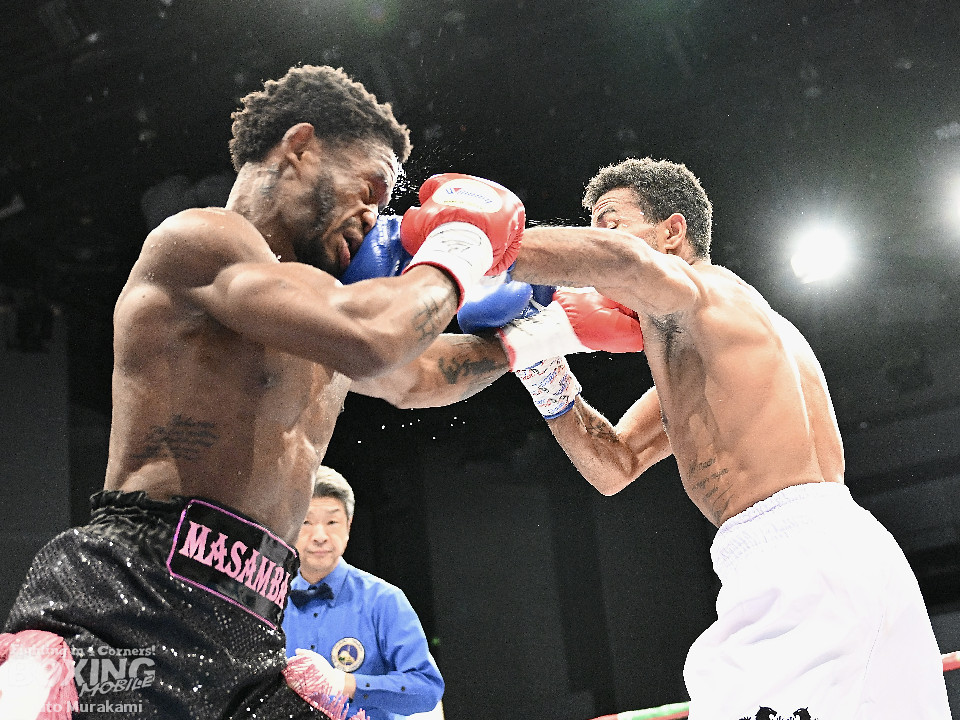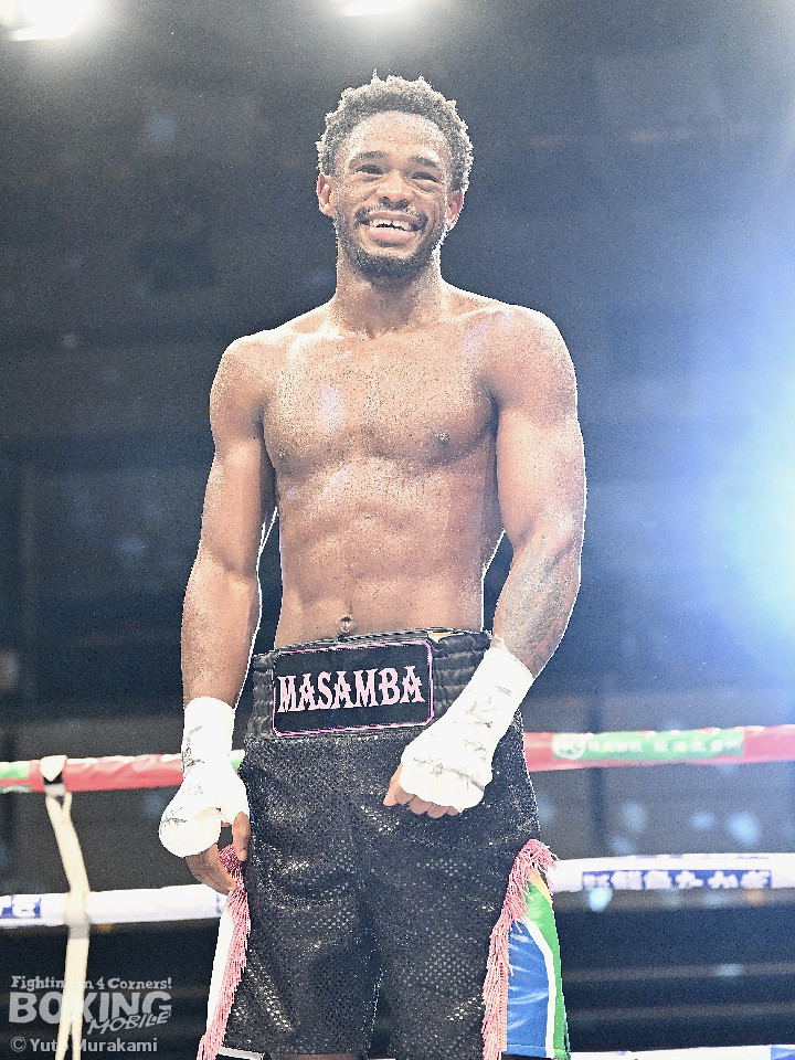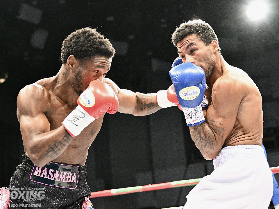 試合:南アフリカ出身のマサンバがジャブを上下に散らして組み立てるのに対し、ミヤンはリターンの右で対抗。2回、マサンバはワンツーで腰を沈めさせるが追撃の右が後頭部に当たってしまい、レフェリーはミヤンに対し休憩を与えた。3回、マサンバは右フックで顔を弾くと、ラウンド終了間際にワンツーでダウンを奪った。4回、仕留めにいきたいマサンバだが、狙いすぎなのか単発に。ミヤンはレフェリーに相手のラビットパンチをアピールした。6回、ミヤンは左フックで効かせると距離を詰めるが、後続打を決められず。7回、サークリングしながらジャブを飛ばすマサンバに対し、ミヤンが追う展開。8回、マサンバはフットワークで打ち合いを避け続けた。マサンバがデビューから3連勝を飾った。