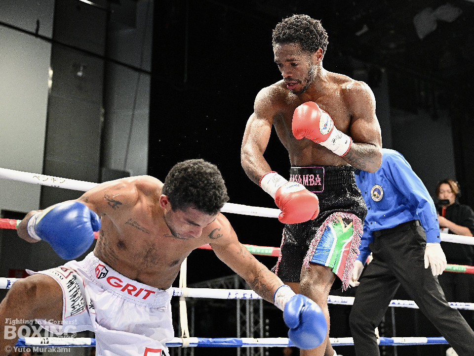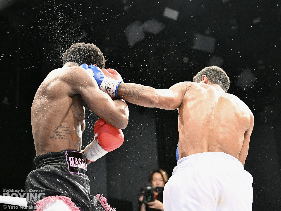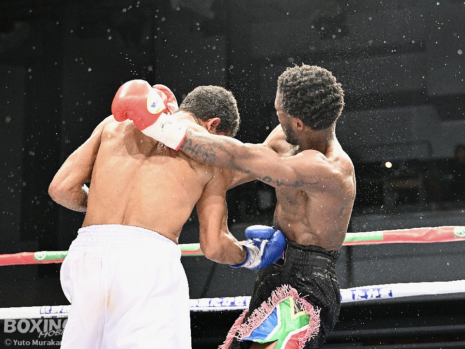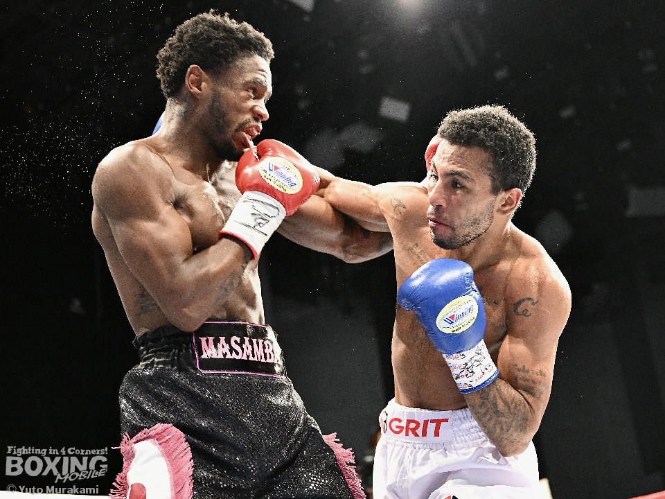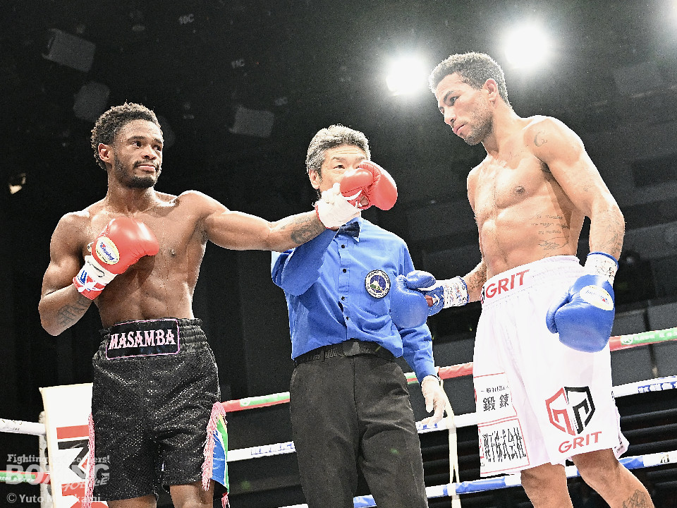 試合:南アフリカ出身のマサンバがジャブを上下に散らして組み立てるのに対し、ミヤンはリターンの右で対抗。2回、マサンバはワンツーで腰を沈めさせるが追撃の右が後頭部に当たってしまい、レフェリーはミヤンに対し休憩を与えた。3回、マサンバは右フックで顔を弾くと、ラウンド終了間際にワンツーでダウンを奪った。4回、仕留めにいきたいマサンバだが、狙いすぎなのか単発に。ミヤンはレフェリーに相手のラビットパンチをアピールした。6回、ミヤンは左フックで効かせると距離を詰めるが、後続打を決められず。7回、サークリングしながらジャブを飛ばすマサンバに対し、ミヤンが追う展開。8回、マサンバはフットワークで打ち合いを避け続けた。マサンバがデビューから3連勝を飾った。