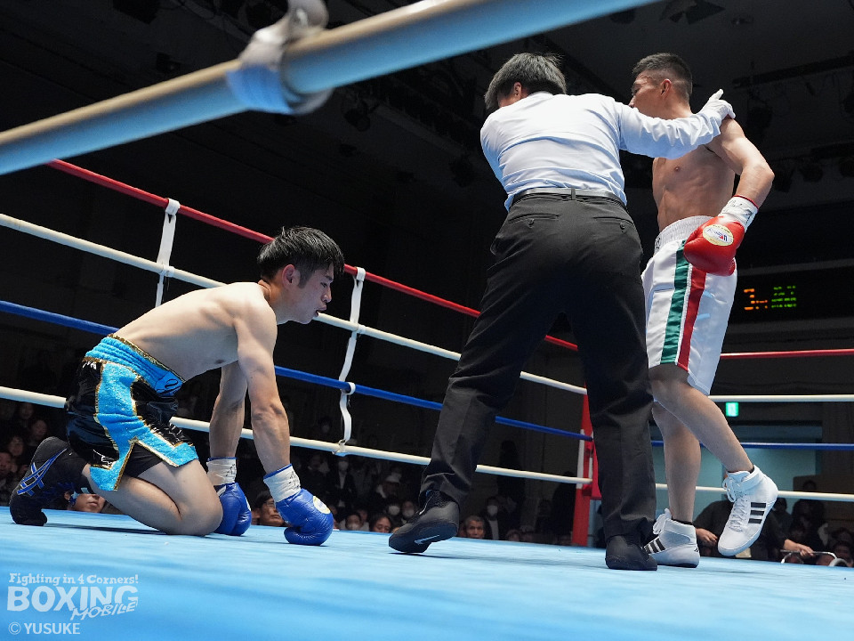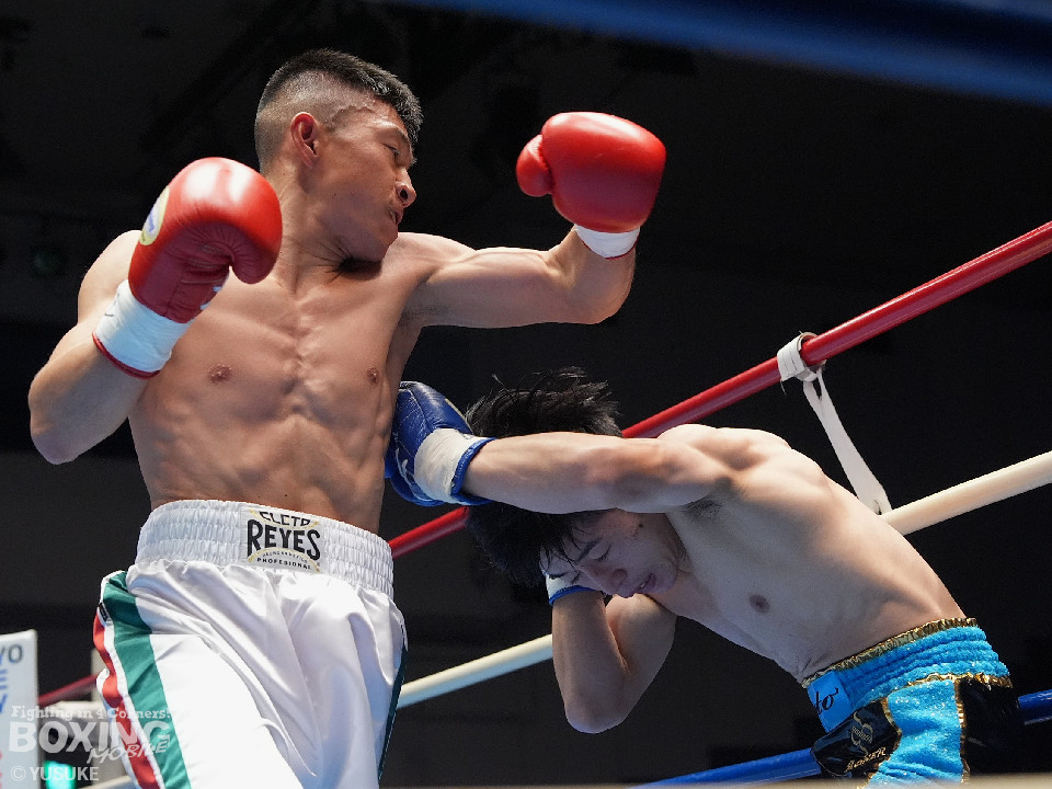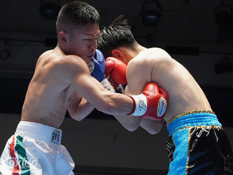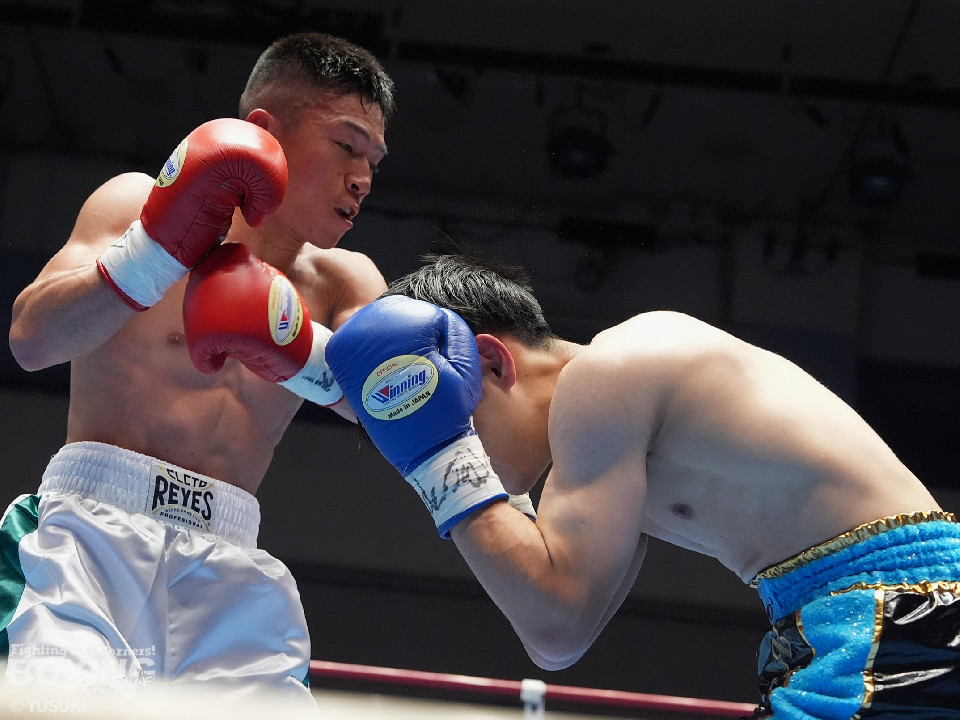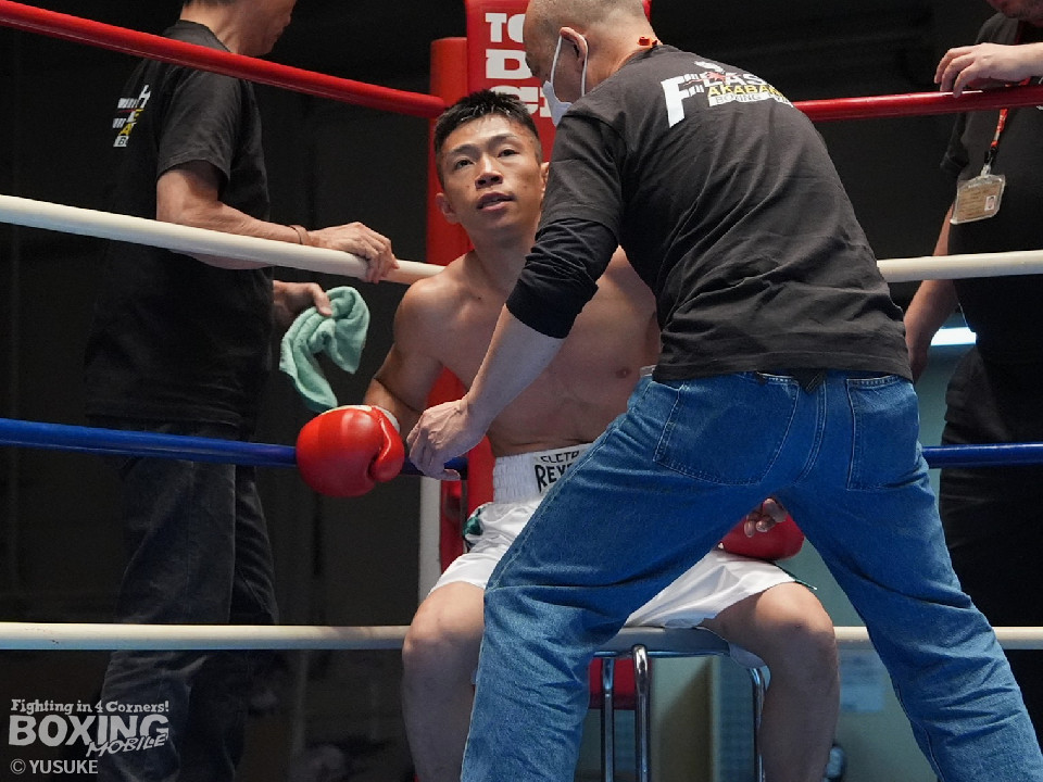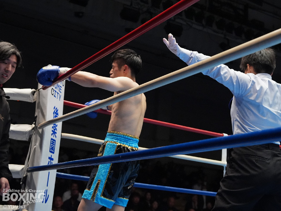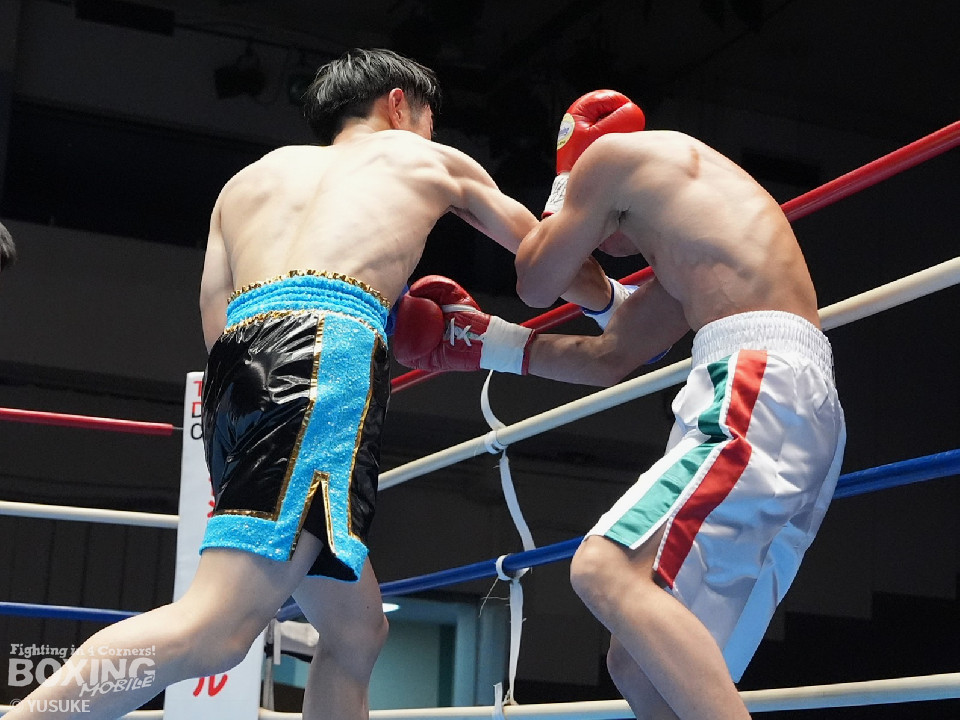 試合:矢作が左フックから右フックにつなげてアグレッシブな姿勢。ガードでしのいだ芝崎だが後手に回った。2回、芝崎は左フックで顔を弾くと上下に打ち分け反撃。しかし、矢作はここは引くまいと倍返し。3回、ショートレンジで我慢比べに打ち合いに発展。ラウンド終了間際、矢作は左ショートフックでダウンを奪いポイントで引き離した。4回、矢作は右アッパーで顔を弾くと芝崎の左目の異常に気がついたレフェリーがドクターチェックを要請。これ以上の試合続行は不能と判断した。矢作がキャリア初のKO勝ちでB級(6回戦)昇格を決めた。