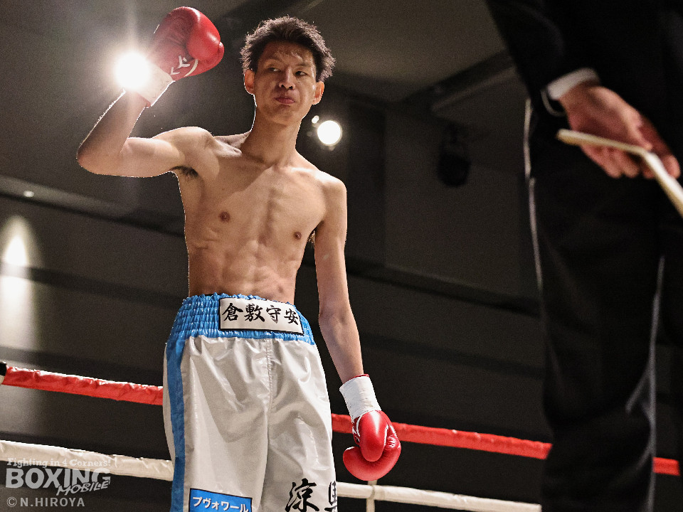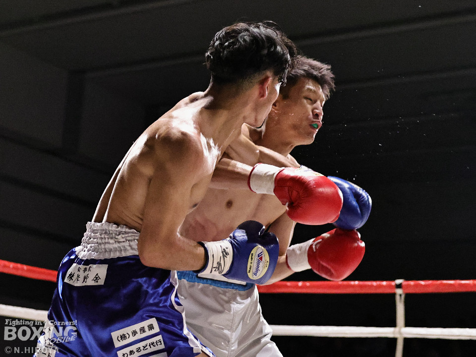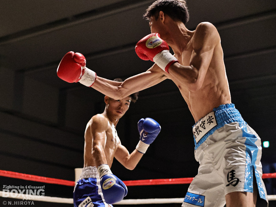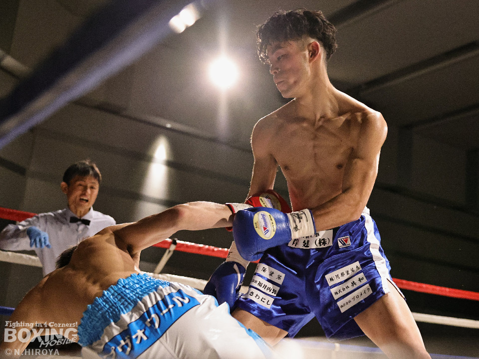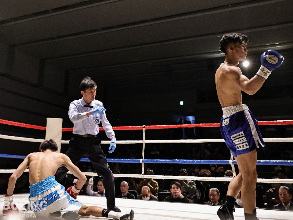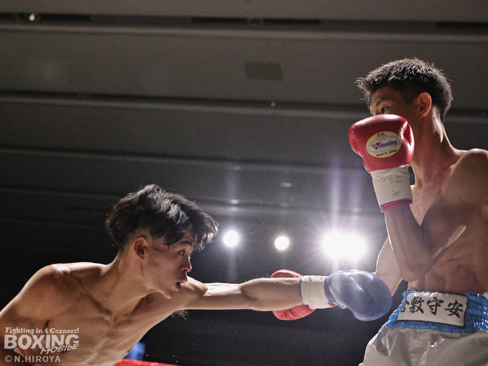 試合:サウスポー同士の一戦は、見尾が前の手でコントールしながら懐に入らせず。ラウンド終盤、右フックでグラつかせて先手を奪った。2回、冨山は上下に揺さぶりをかけると右フックをヒット。ジリジリと距離を詰めて右フックでダウンを奪取。再開後、左クロスで倒して決着をつけた。前のめりに倒れた見尾は担架で運ばれた。冨山がデビュー戦をKO勝ちした。