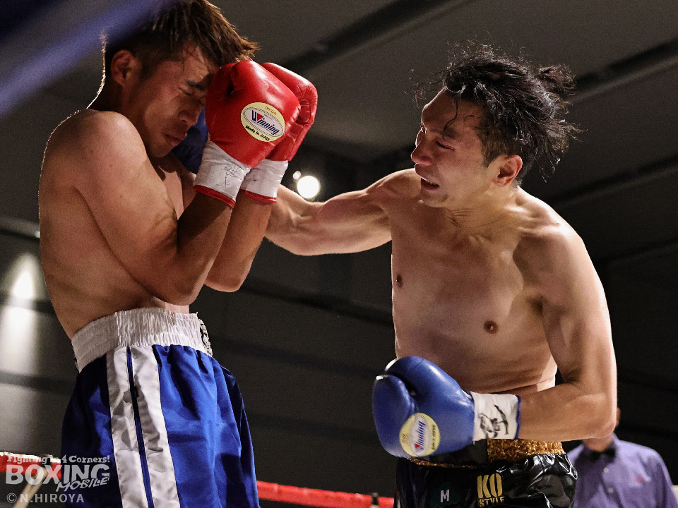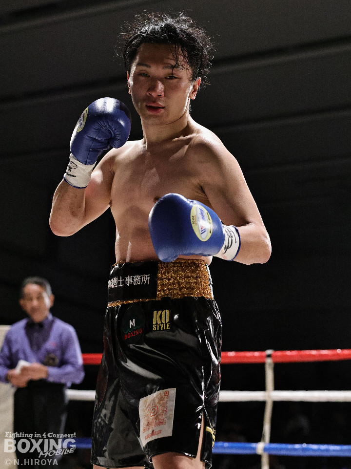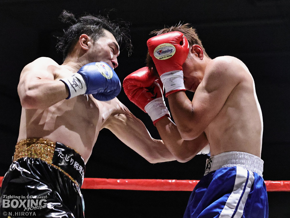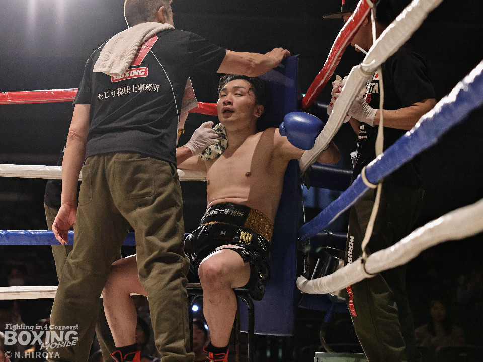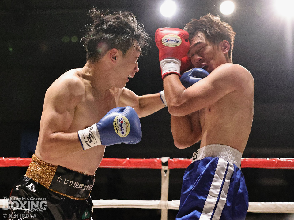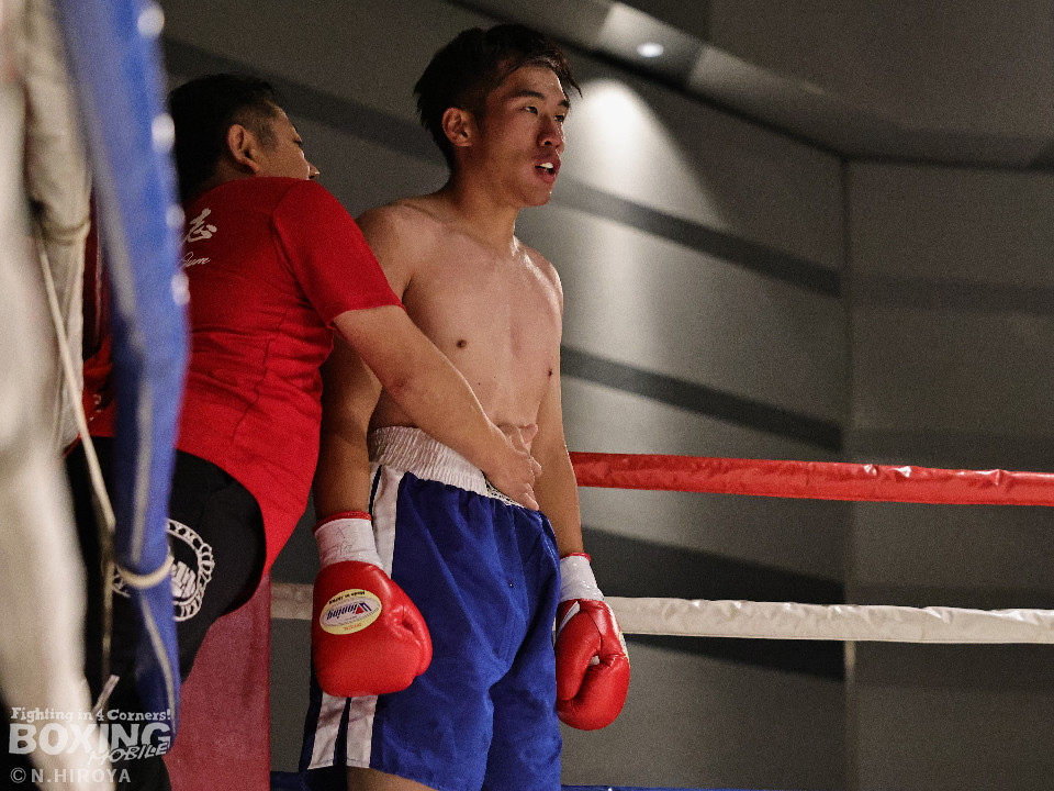 試合:谷川がワンツー連打で仕掛けるが、藤本はガッチリとガードすると左ボディを好打。プッシュしながらボディに的を絞り攻め立てた。2回、谷川はワンツーをねじ込み反撃に転じるが、藤本は押し負けず。ボディ攻撃で後退させると右フックで顔を弾いたところでレフェリーがストップした。