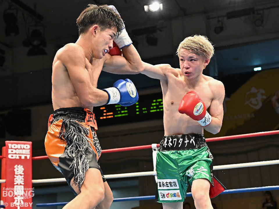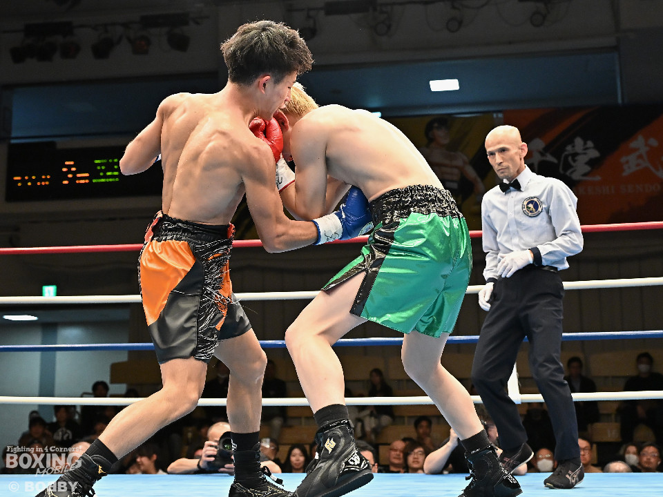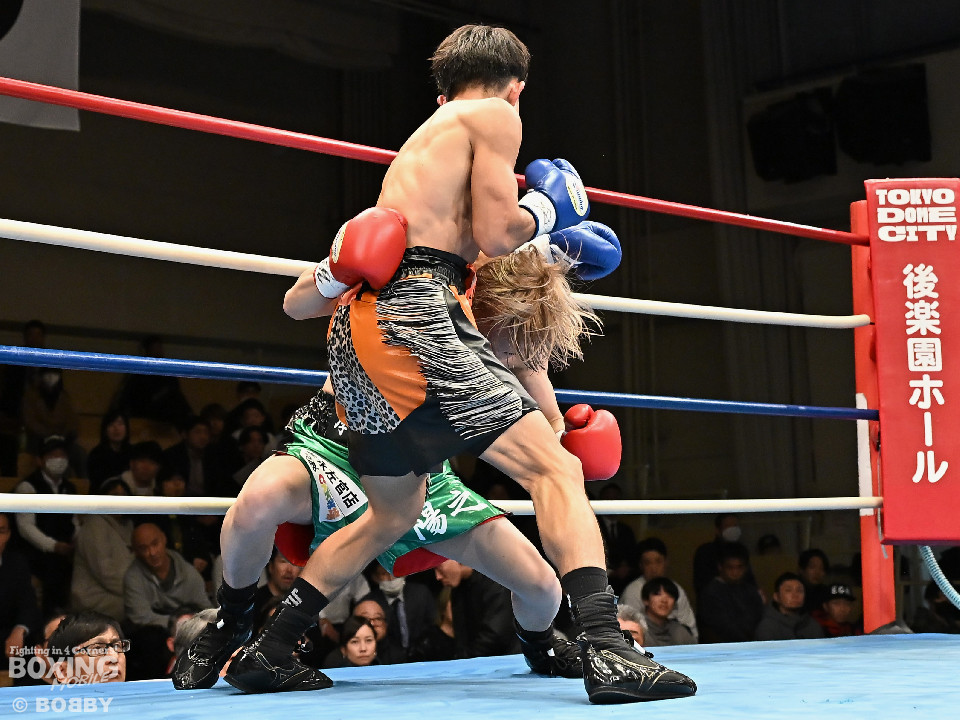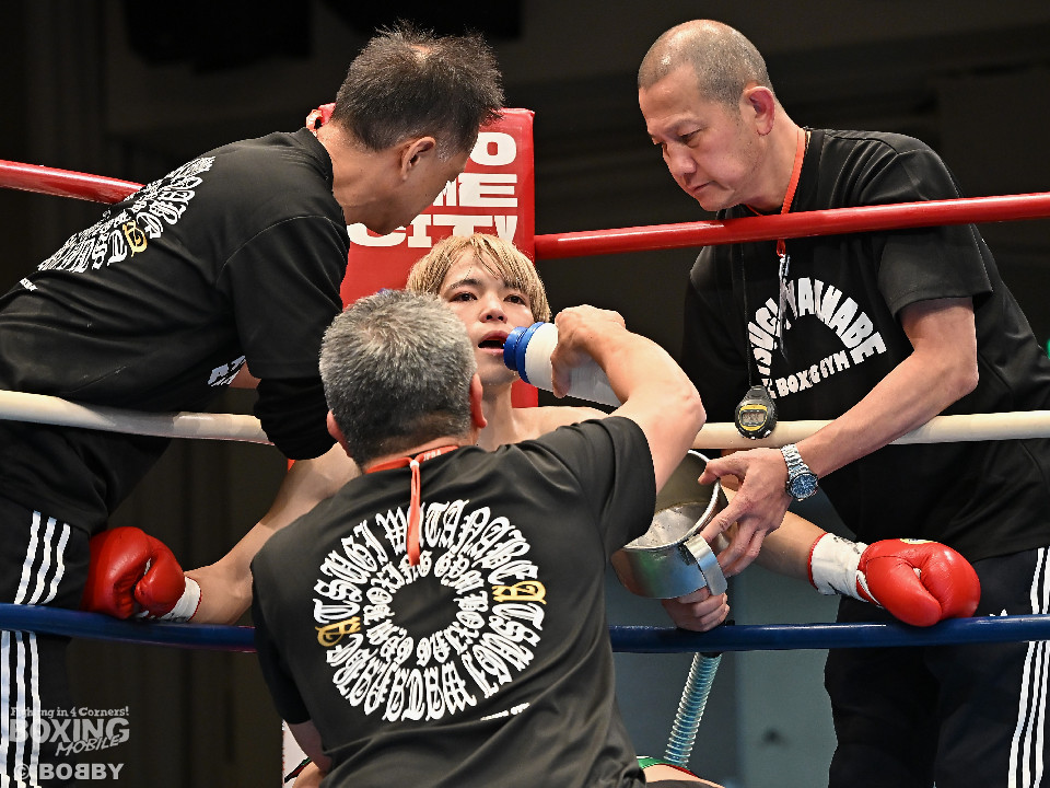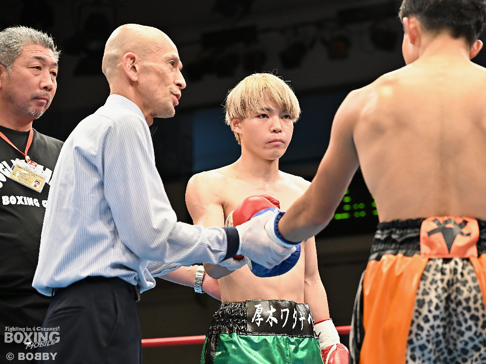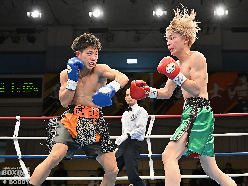 試合:和田が前後の動きを意識しながらジャブを飛ばして積極的な攻撃。谷津は打ち終わりを狙うと右ショートで膝を揺らした。2回、和田は右ボディストレートを差し込むと右フックでグラつかせて追撃の右でダウンを奪取。再開後、仕留めに行くが、谷津も気持ちを前面に押し出して食い下がった。3回、和田はジャブで丁寧に組み立ててポイントを加点。4回、和田は右カウンターでグラつかせると崩れ落ちた谷津を見てレフェリーがストップした。ダメージが深い谷津は担架で運ばれた。4勝目を挙げた和田がB級(6回戦)昇格を決めた。