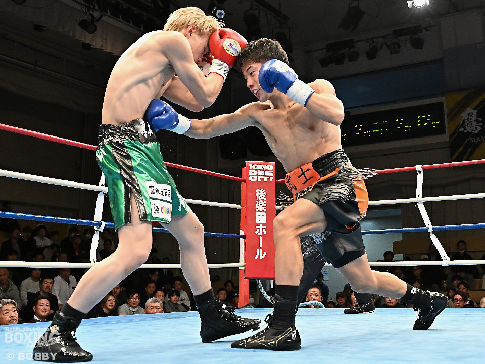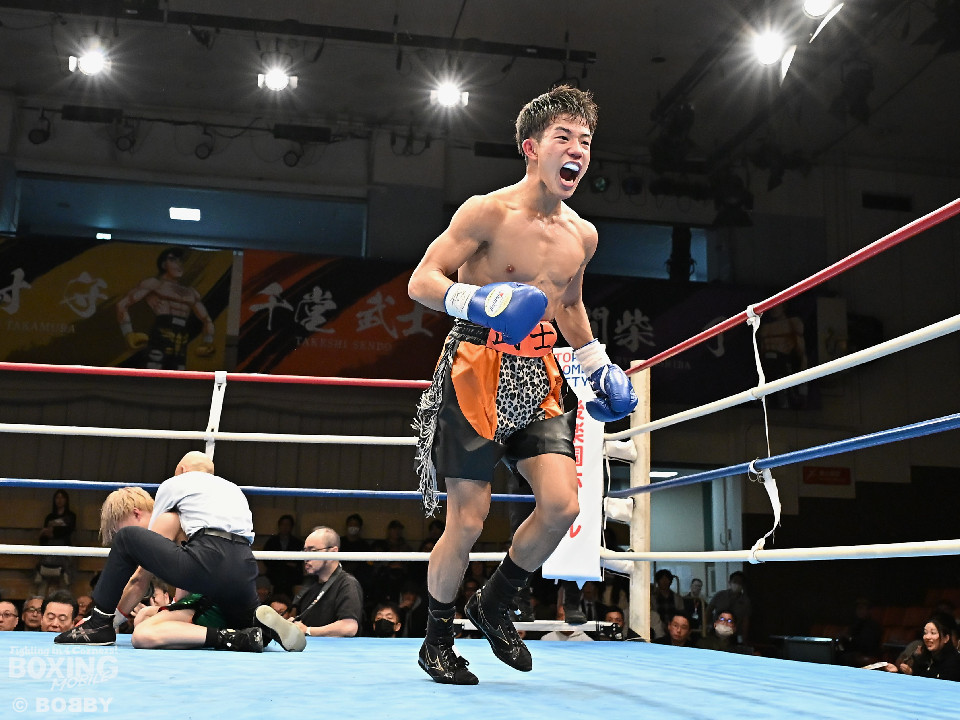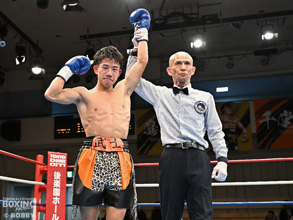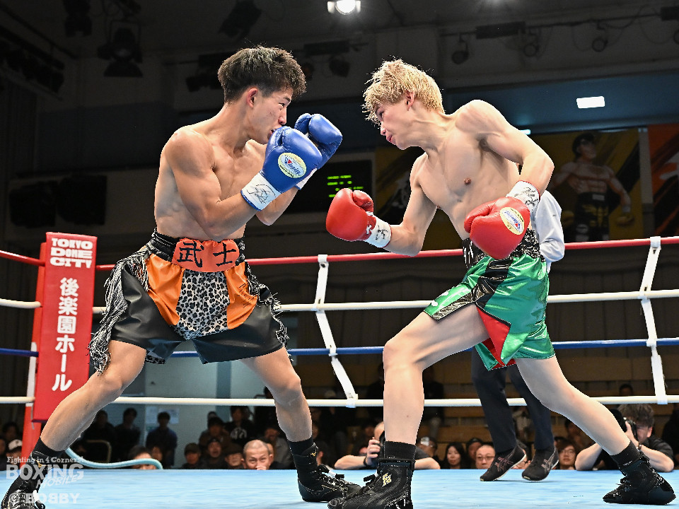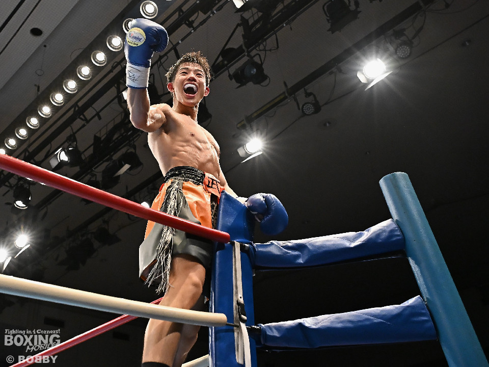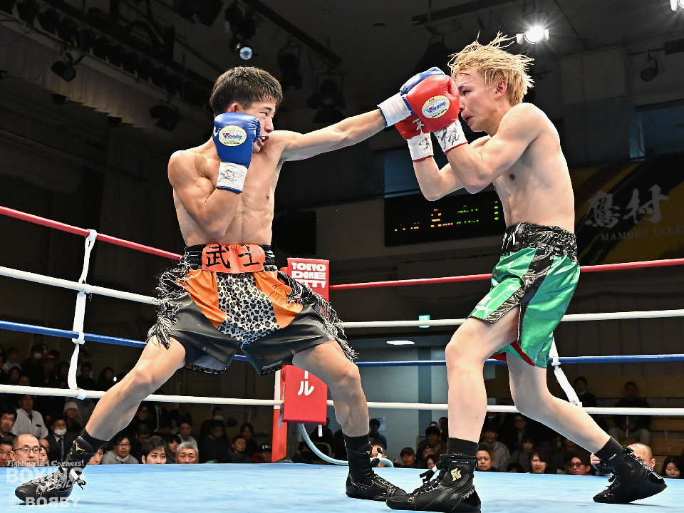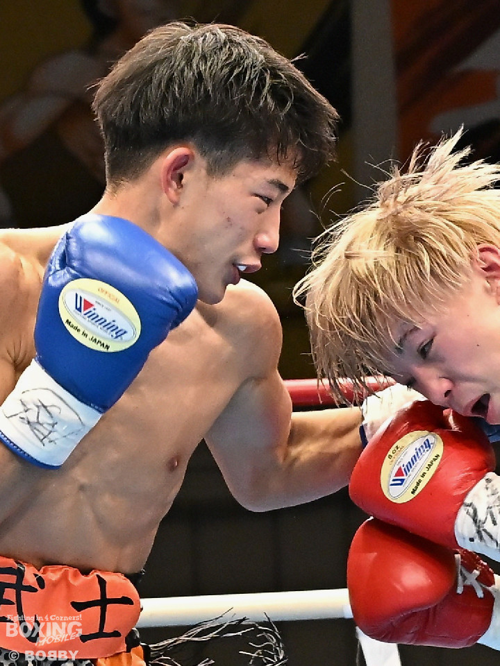 試合:和田が前後の動きを意識しながらジャブを飛ばして積極的な攻撃。谷津は打ち終わりを狙うと右ショートで膝を揺らした。2回、和田は右ボディストレートを差し込むと右フックでグラつかせて追撃の右でダウンを奪取。再開後、仕留めに行くが、谷津も気持ちを前面に押し出して食い下がった。3回、和田はジャブで丁寧に組み立ててポイントを加点。4回、和田は右カウンターでグラつかせると崩れ落ちた谷津を見てレフェリーがストップした。ダメージが深い谷津は担架で運ばれた。4勝目を挙げた和田がB級(6回戦)昇格を決めた。