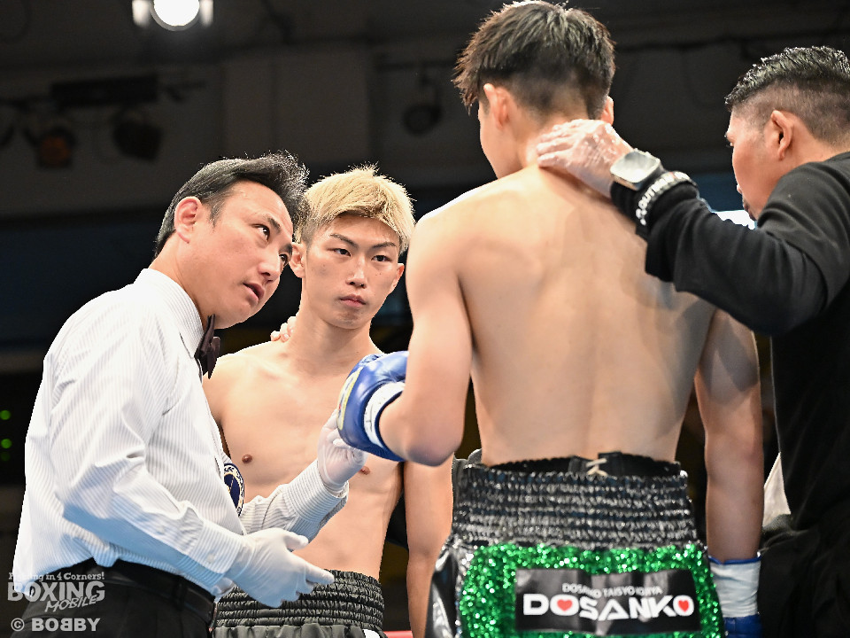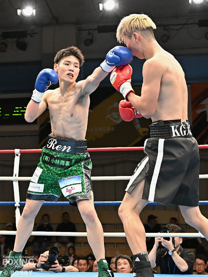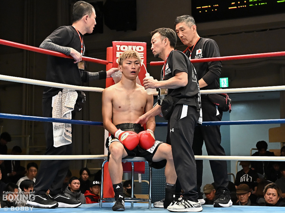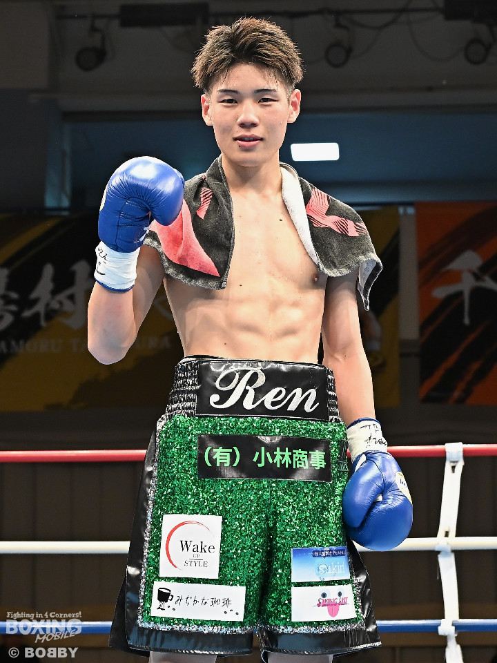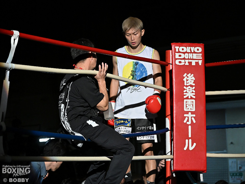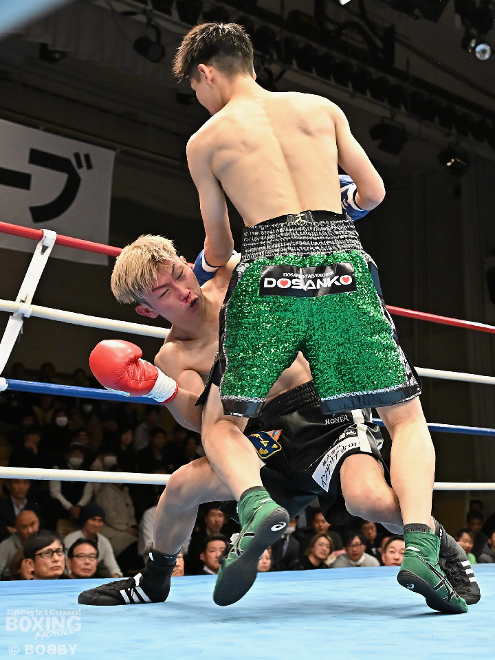 試合:小林がジャブを飛ばしながらアグレッシブに攻めるとワンツーを再三ヒット。リズムをつかむとワンツーでダウンを奪い絶好のスタートを切った。2回、右カウンターを狙う菊池に対し、小林は左を軸にダメージを与えると右ストレートで倒して決着をつけた。