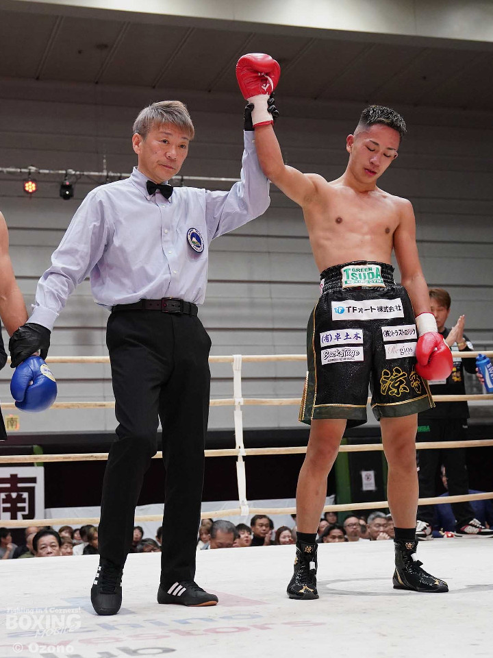 試合:平井がスピードのあるジャブを放ちリズムを刻む。満生は近距離での打撃で活路を見出したい。2回、一気に距離が近くなりパンチを交換する両者。平井はボディを有効に使い満生の動きを一瞬止める。3回、次は満生がキレのいいフックを連続でヒット。平井の動きが鈍くなるが要所でパンチを打ち返す。最終回、愚直に前に出る満生を平井が迎え撃つ。終了のゴング直前には平井がボディから顔面にパンチを集め印象付けた。結果は判定となり平井が勝利を挙げた。