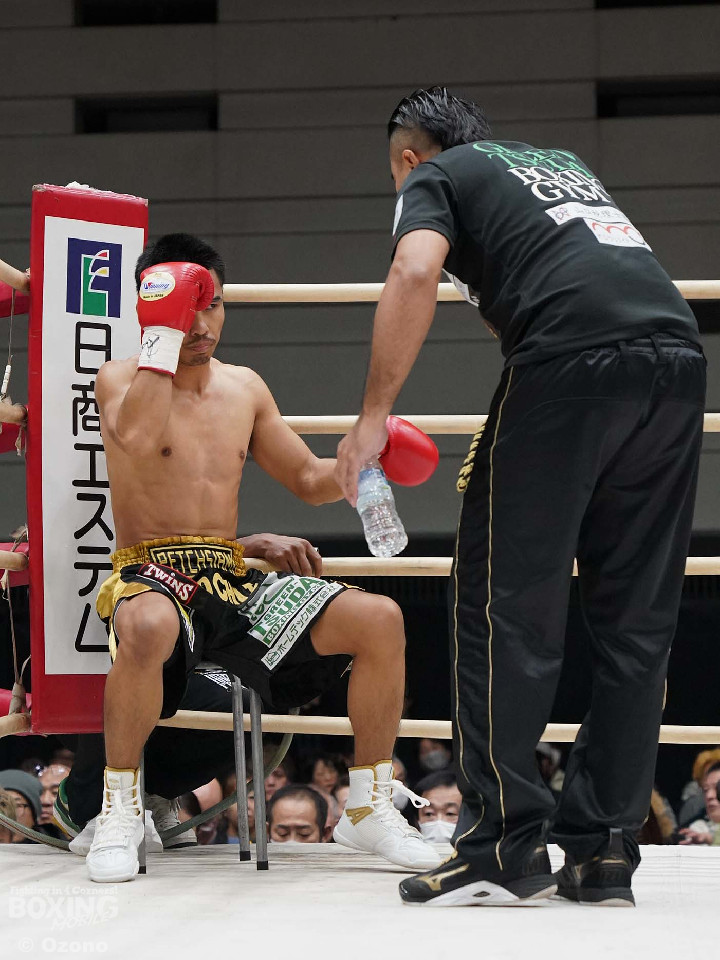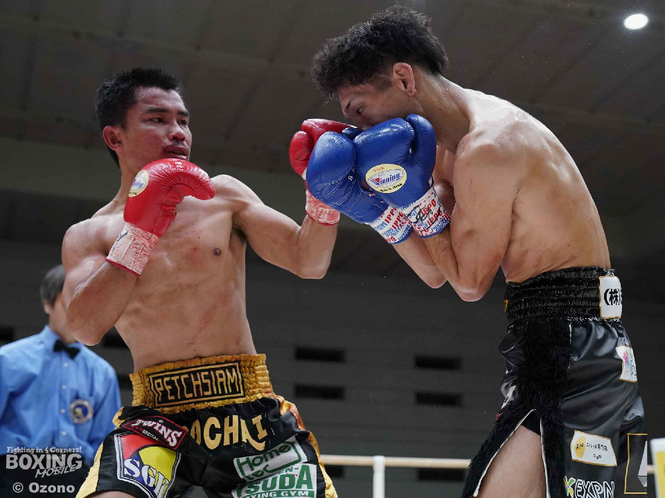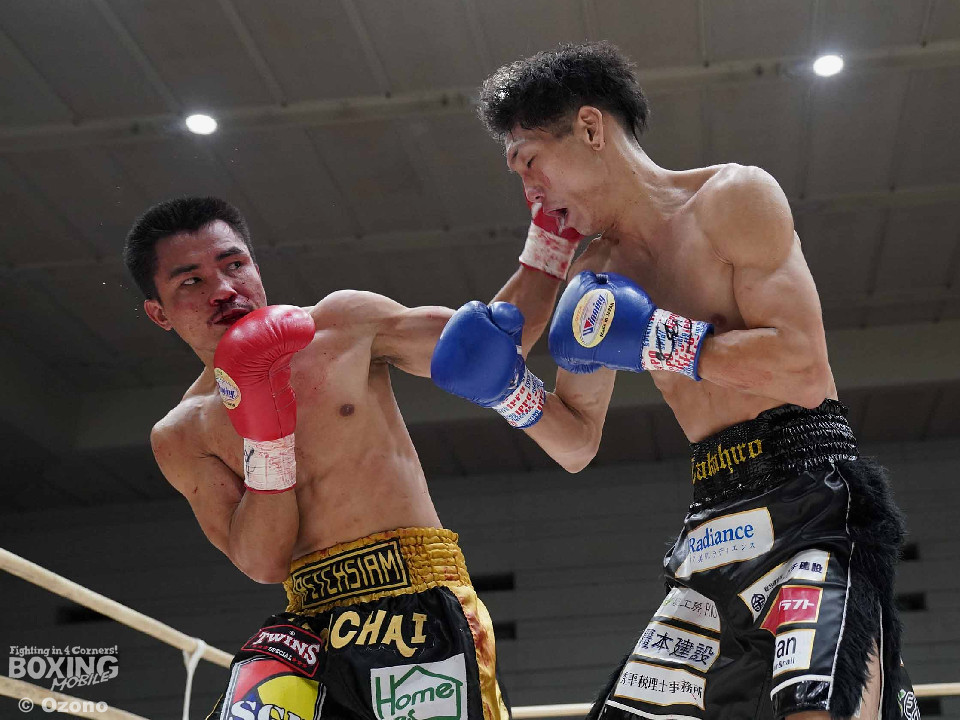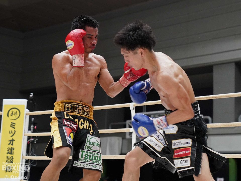 試合:田井がスイッチしながらリズムよくパンチを放つ。ラードチャイはガードを上げ様子を見る展開。2回、田井がアッパー、ボディと角度をつけたパンチを増やす。ラードチャイは防戦一方となり鼻血を流すが、ガードを固め決定打は許さない。3回、サイドチェンジしながら多彩なパンチを放つ田井。試合中盤も田井は老獪なラードチャイから中々決定打を奪えない。6回、ボディを嫌がるラードチャイにパンチをまとめるがここもダウンを演出することができずラウンド終了。試合終盤も判定では圧倒的に田井リードだがラードチャイは逆転を狙わずディフェンスに徹する。そのまま試合終了となりフルマークで田井が勝利を挙げた。