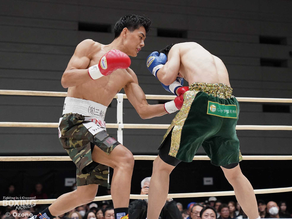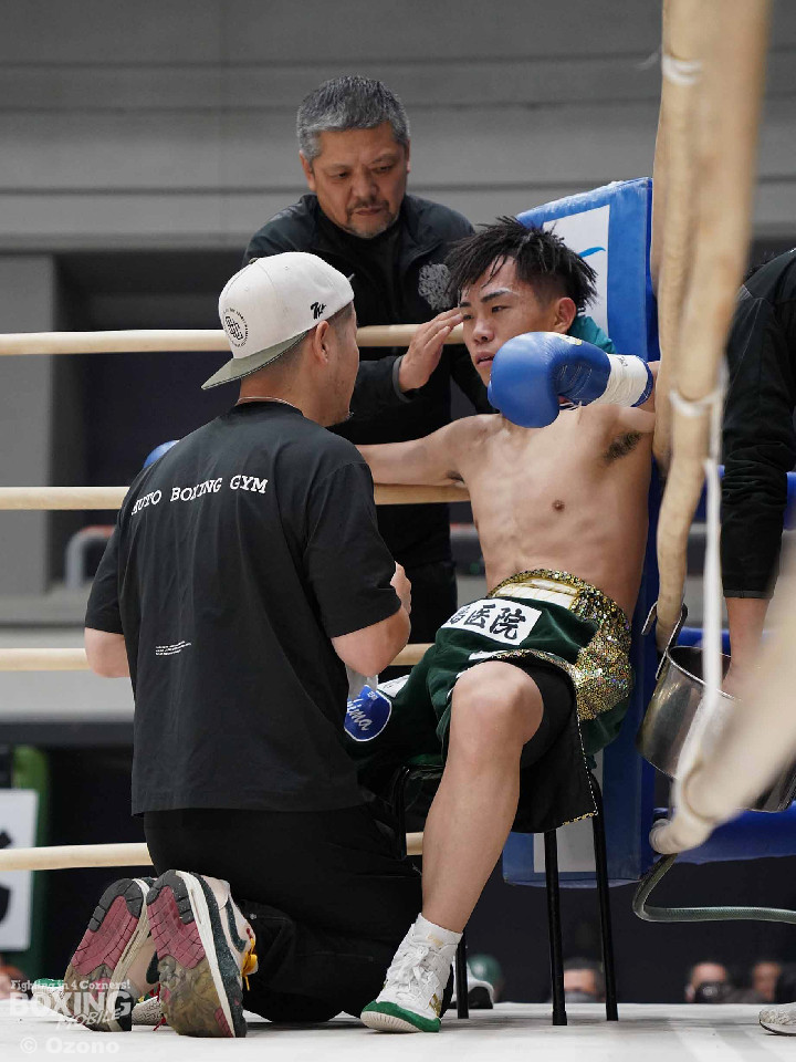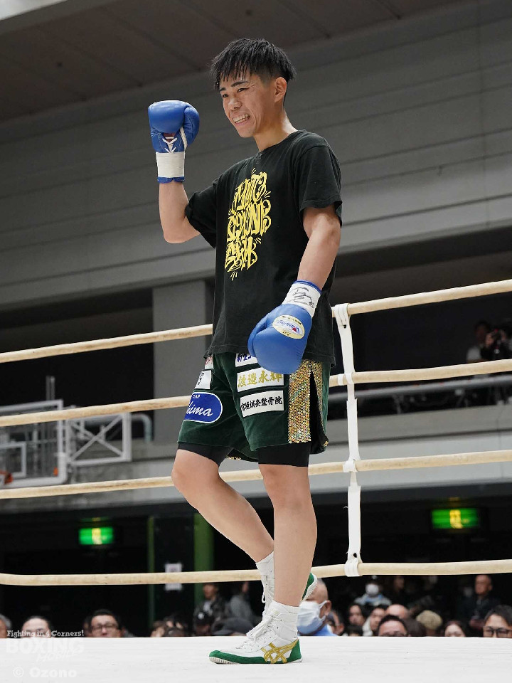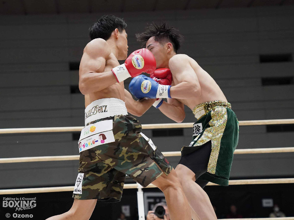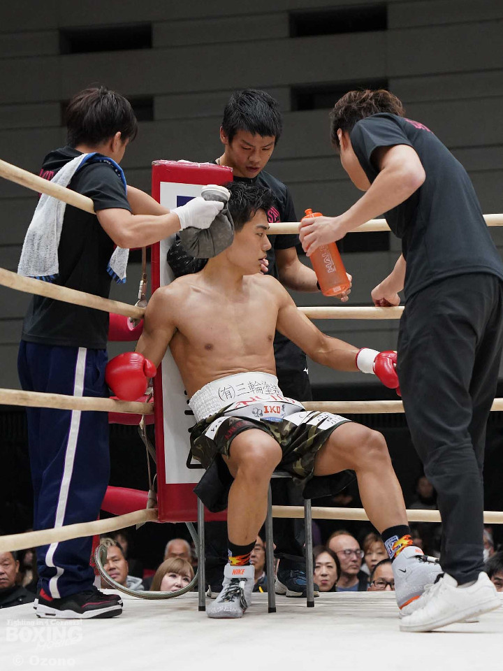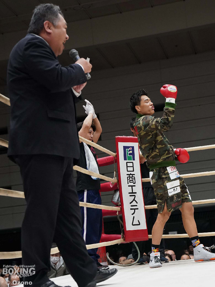 試合:上体を屈めて勢いよく前に出る湯浅。田下は冷静に対処しボディからアッパーに繋げ頭を跳ね上げる。ラウンド終了間際、コーナーを背にした田下の左ストレートがクリーンヒット!一度目のダウンを奪う。2回、スイッチを交えなが前に出る湯浅のパンチをL字ガードを駆使して冷静に防いだ田下。その後、攻めに転じると左ストレートを再びクリーンヒットし二度目のダウンを奪う。そのまま10カウントを聞かせ田下がKO勝利を挙げた。