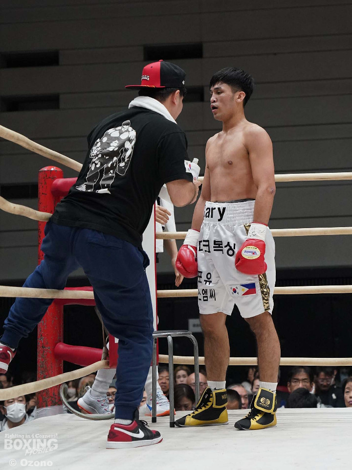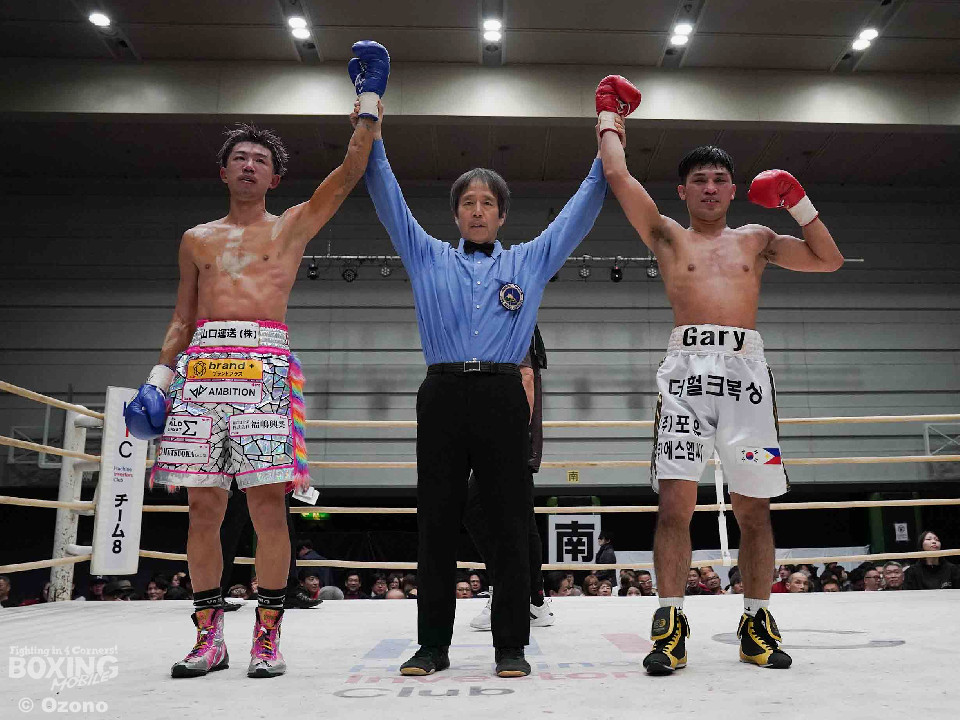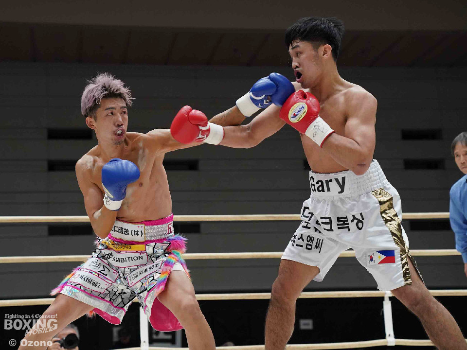 試合:サウスポースタイルでL字ガードで構えるゲーリーに対しジャブを伸ばし距離を測る原。初回はお互い相手の出方を伺う展開。2回、原が奥に構えた右手でボディを打ち、ゲーリーの意識を下に散らす。3回、L字ガードでボディを守る相手に右ボディでガードの隙間を狙う原。ペースを握る。4回、原が顔面へもパンチをヒットさせ始める。5回、堅実にヒット数を重ねる原だがゲーリーも時折タイミングよくハードパンチをヒットし侮れない。6回、原がカウンターでボディ、アッパーを当てるがラウンド終盤、ゲーリーの左フックがヒットしそのまま連打を許してしまう。7回、原がステップを刻みリズムを取り戻すが、ゲーリーもここぞとばかりに飛び込みながら左フックを振り回す。最終回、ジャブとボディで距離をキープする原。ゲーリーも強引に飛び込みパンチを振りクリーンヒットするもダウンを奪うまでには至らず試合終了。判定は三者三様のドローとなった。