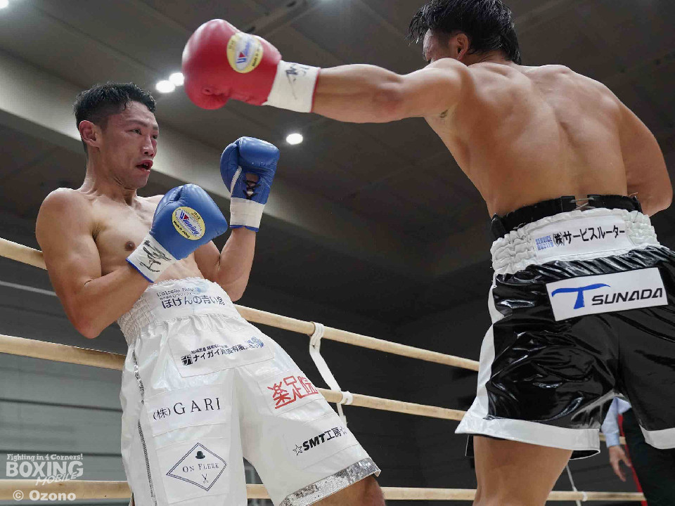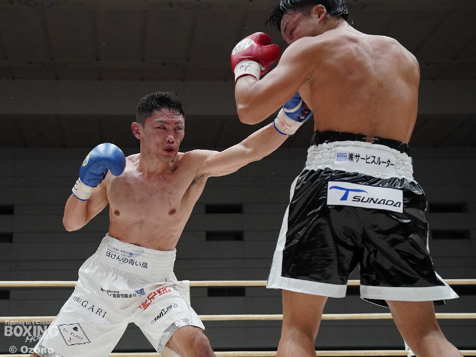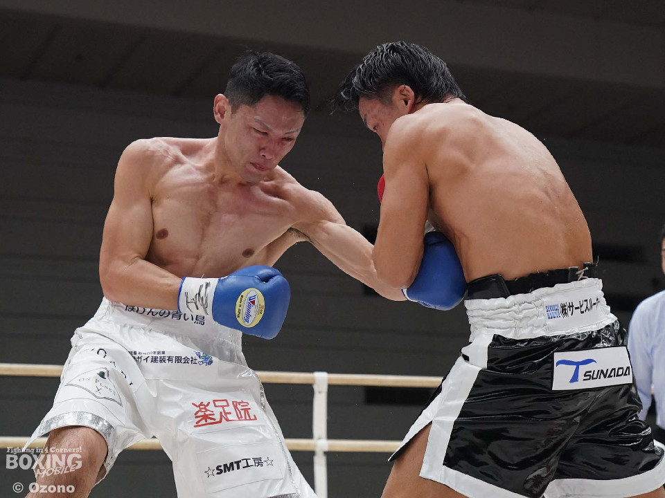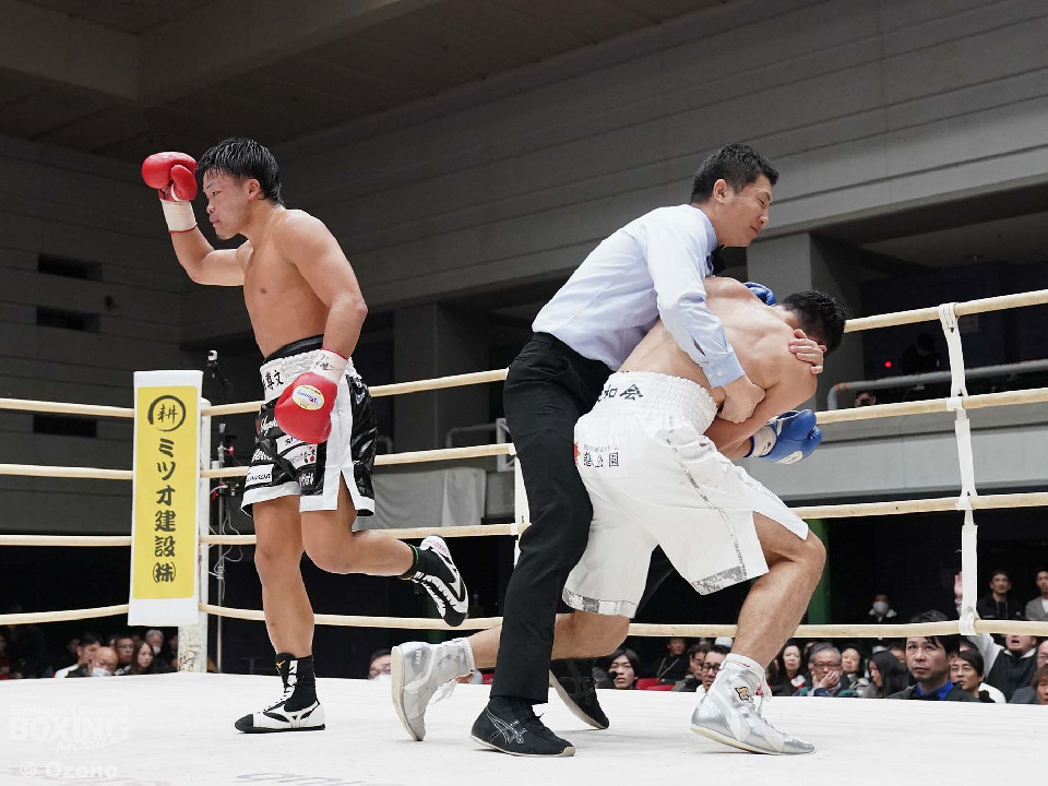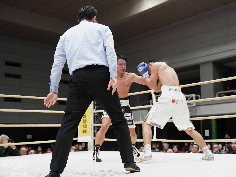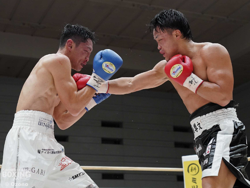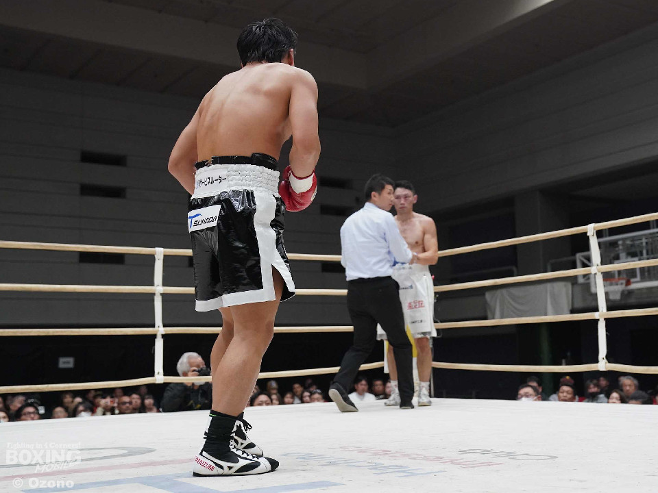 試合:リーチで上回る濱島がジャブをつきヒットさせる。柴田はガードを固め懐に入る機会を伺いながらジャブも伸ばしお互い初回はジャブの交錯となった。2回、濱島はジャブからボクシングを組み立て柴田の顔を腫らす。パワーで勝る柴田は徐々に距離が合ってきたか。近距離で左右フックを当てる。3回、一気に距離を縮めた柴田は上からフックを振り下ろし一度目のダウンを奪う。立ち上がった濱島に怒涛の連打をするが試合は決めきれずゴング。4回、柴田の勢いは止まらず左右ボディフック連打で会場を沸かし顔面へもパンチを集めた。濱島も打ち返してはいるが柴田の勢いを止めるまでには至らず。この回ヒッティングで濱島が左目をカット。5回、柴田の右ストレートがヒットするが濱島は「効いてないぞ」とアピール。6回、濱島の手数が復活。しかし柴田は引くことなく前に出て顔面にパンチを集める。7回、開始直後から打ち合いになる。ここでフック連打を仕掛けた柴田の左フックが直撃しダウンを奪う。立ち上がる濱島に怒涛の追撃をしダメージを見たレフェリーが試合を止めた。