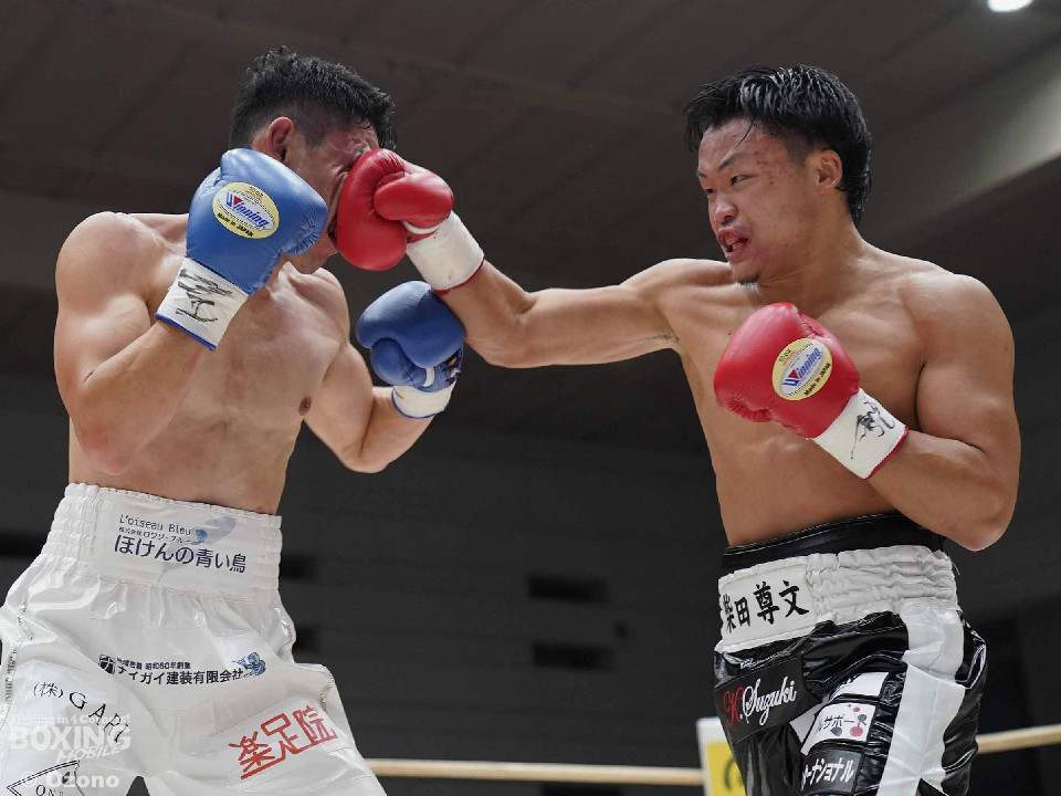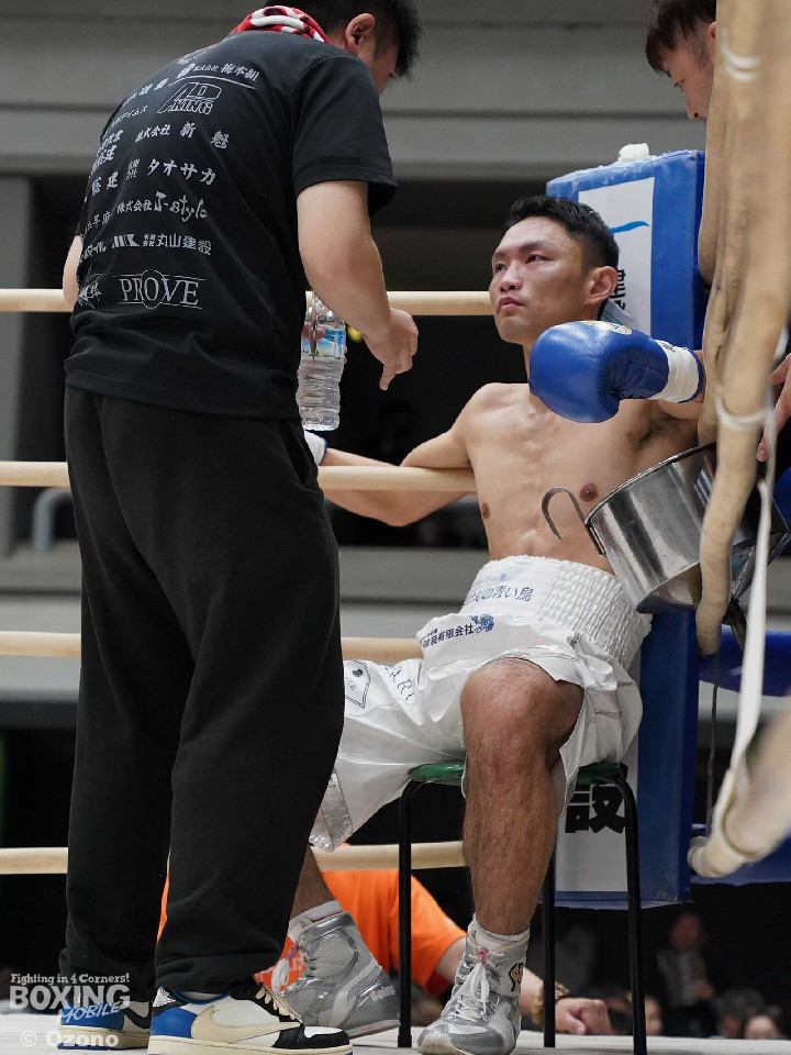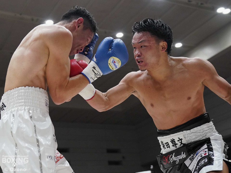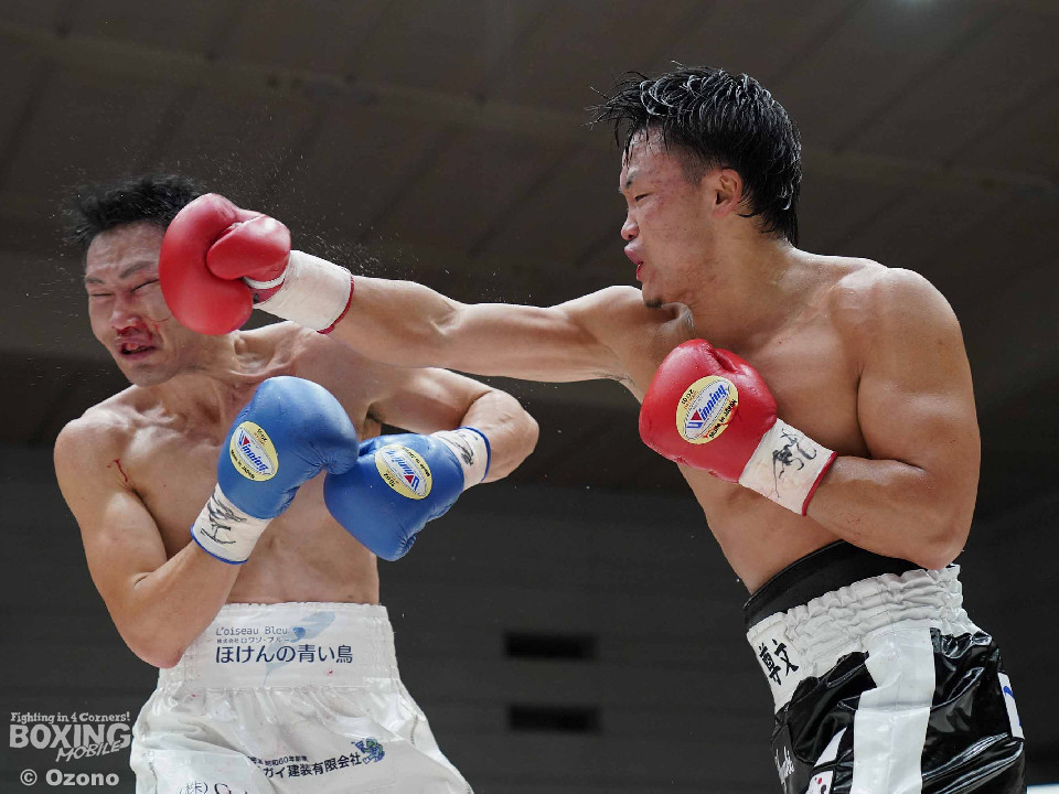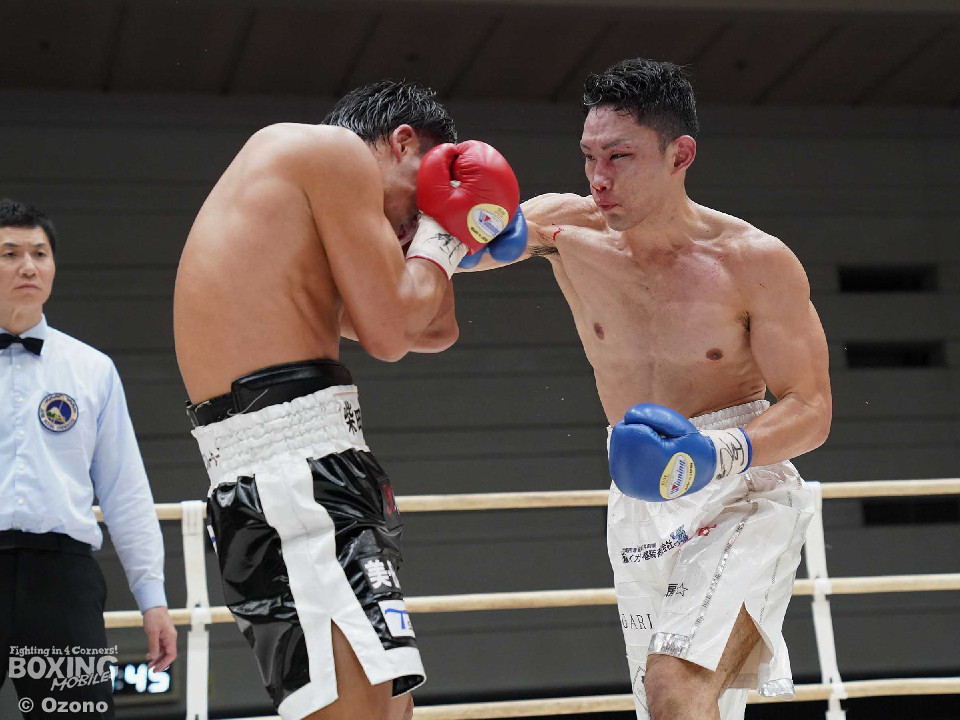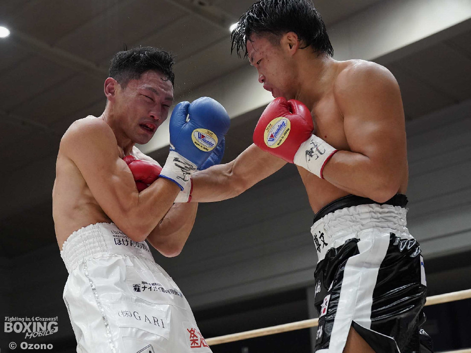 試合:リーチで上回る濱島がジャブをつきヒットさせる。柴田はガードを固め懐に入る機会を伺いながらジャブも伸ばしお互い初回はジャブの交錯となった。2回、濱島はジャブからボクシングを組み立て柴田の顔を腫らす。パワーで勝る柴田は徐々に距離が合ってきたか。近距離で左右フックを当てる。3回、一気に距離を縮めた柴田は上からフックを振り下ろし一度目のダウンを奪う。立ち上がった濱島に怒涛の連打をするが試合は決めきれずゴング。4回、柴田の勢いは止まらず左右ボディフック連打で会場を沸かし顔面へもパンチを集めた。濱島も打ち返してはいるが柴田の勢いを止めるまでには至らず。この回ヒッティングで濱島が左目をカット。5回、柴田の右ストレートがヒットするが濱島は「効いてないぞ」とアピール。6回、濱島の手数が復活。しかし柴田は引くことなく前に出て顔面にパンチを集める。7回、開始直後から打ち合いになる。ここでフック連打を仕掛けた柴田の左フックが直撃しダウンを奪う。立ち上がる濱島に怒涛の追撃をしダメージを見たレフェリーが試合を止めた。