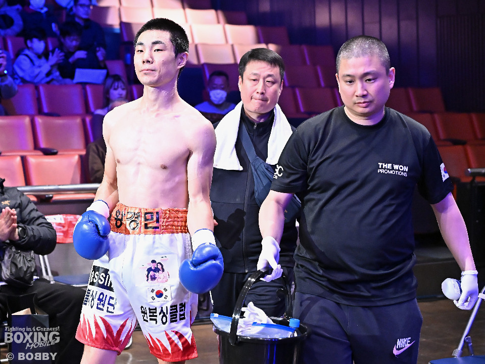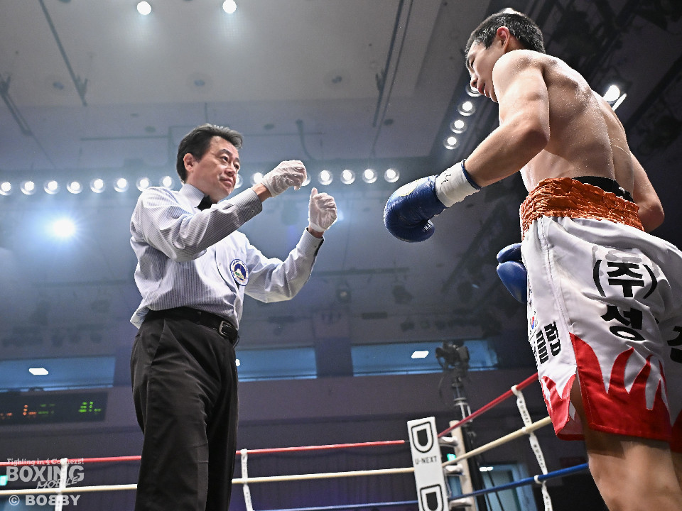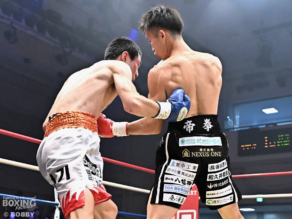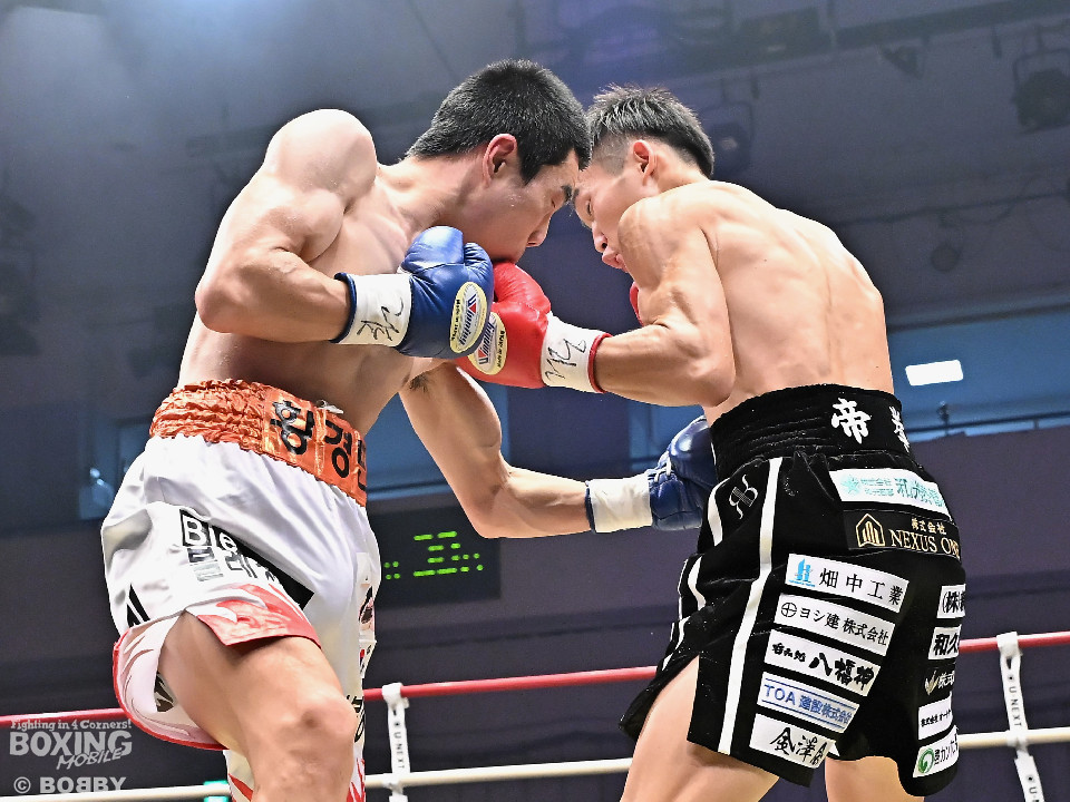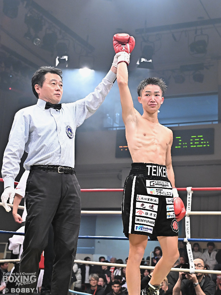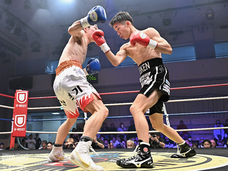 試合:プロデビュー戦の浅井が韓国出身のファン・キョンミンと対決。右オーバーハンドと左右のボディを叩いて左フックの角度を変えて飛び込むキョンミンに対して、右から左フックを合わせた浅井がダウンを奪った。立ち上がったキョンミンをロープに押し込んで詰めに行った浅井だったが、左フックを合わされてダウンを奪われた。2回、右ストレートでロープに押し込んだ浅井が距離をとってリングの中央に戻ると左ボディを差し込んでレフェリーストップ。キョンミンは前のめりに耐えようとしたがレフェリーは試合を止めた。