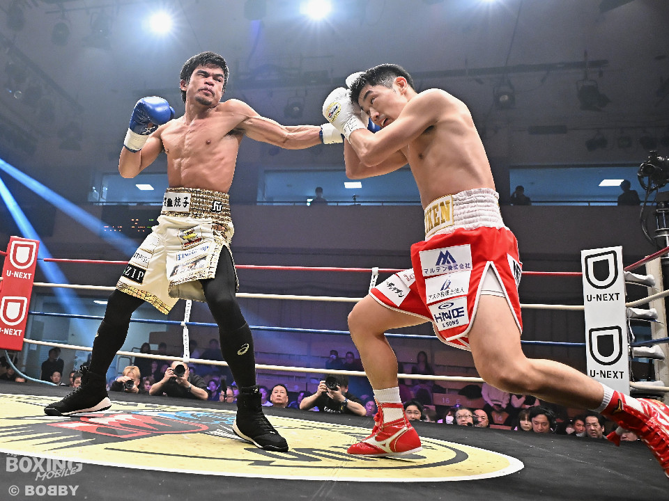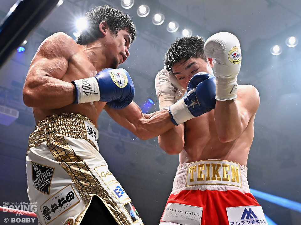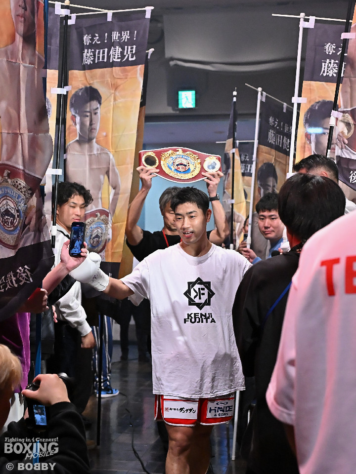 試合:サウスポーの藤田とペテの対決。初回はジャブを突きながら距離を測って左を上下に打ち分けた藤田に対して、ペテはガードを下げずに打ち終わりを狙った。2回に入ると前に出てきたペテが右ノーモーションと左フックで先に手を出した。藤田は落ち着いて距離を取って被弾を回避した。距離が近くなった3回はジャブから左のアッパーとストレートを打ち分けた藤田に対して、ペテも左ボディと右を返した。4回は藤田が左ボディアッパーをえぐった。下を意識させた藤田がキャリを詰めて右フックと左ストレートで顔面を弾いた。6回、両者が踏み込んだタイミングで偶然のバッティング。ドクターチェックに時間を要した。試合再開後はペテがサウスポーにスイッチして右から左ストレートを繰り返した。7回も藤田は左右のボディを叩いた。ペテは鼻の中央部を偶然のバッティングでカットした。8回、右ストレートと、左フックを絡めた連打のペテに藤田が右ショートを顔面に打ち込むとペースを藤田が掴んだが仕留めきれず。9回、藤田がワンツーの左ストレートでロープまで詰めるが仕留めきれず。ペテも左右の手を出して決定打を許さず。最終回、スピードと手数を取り戻したペテが右ストレートと左フックと左右の連打を多用。最後に藤田がボディに入れたがゴング、判定に。