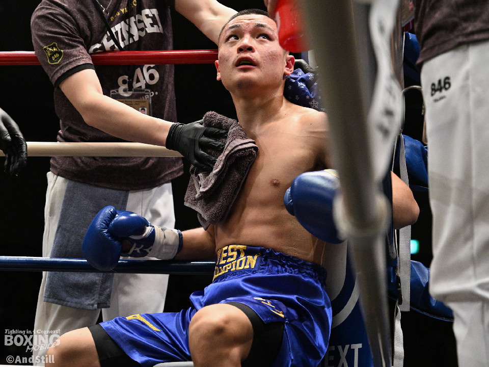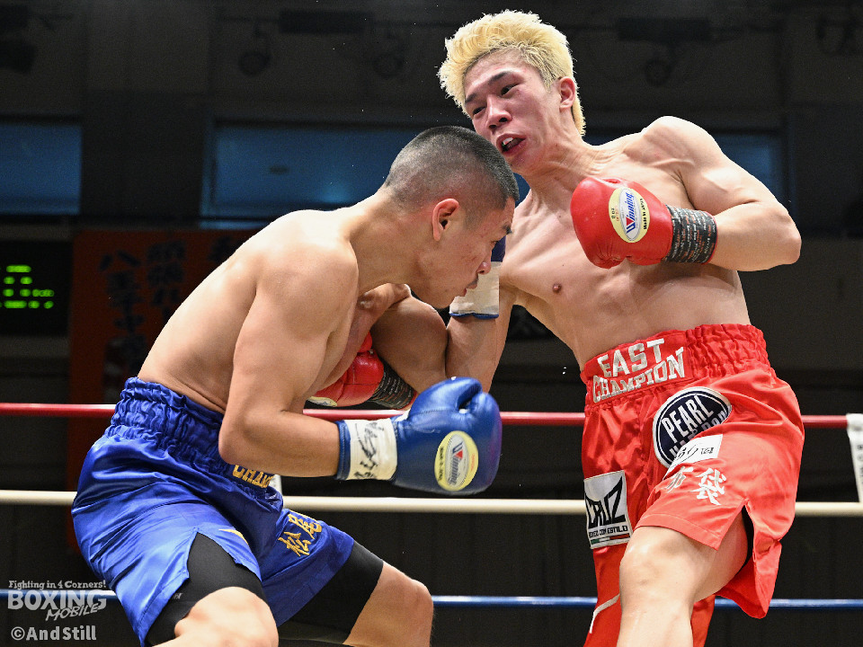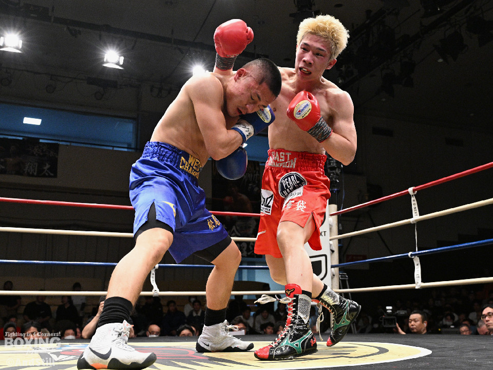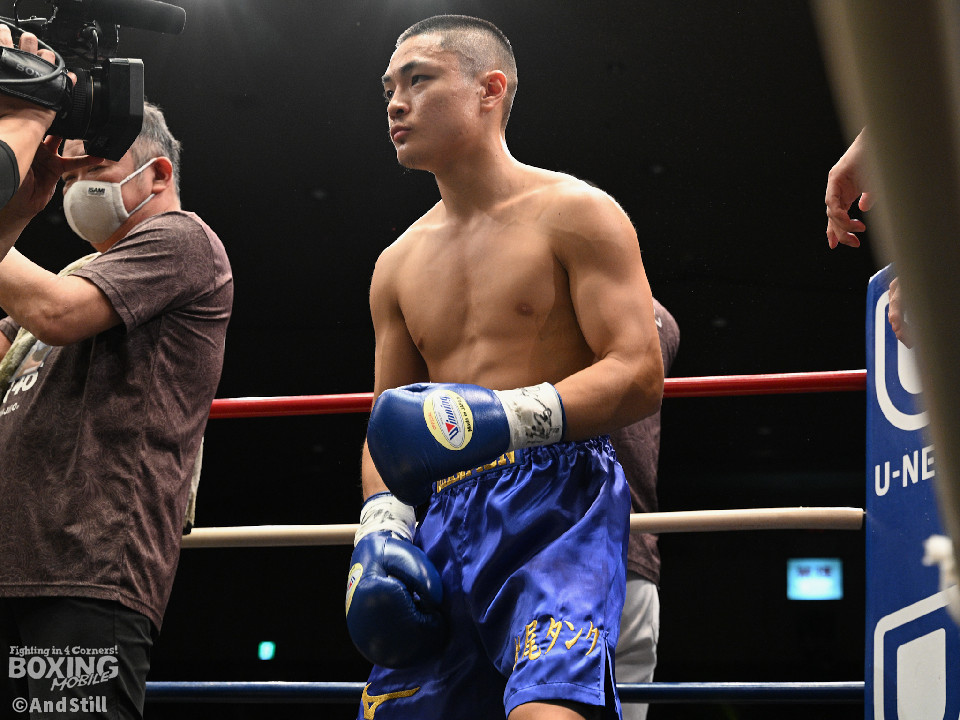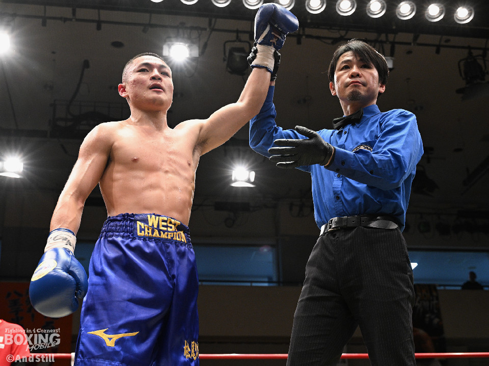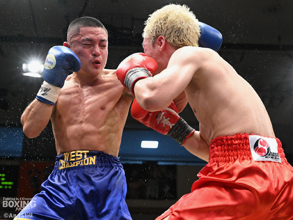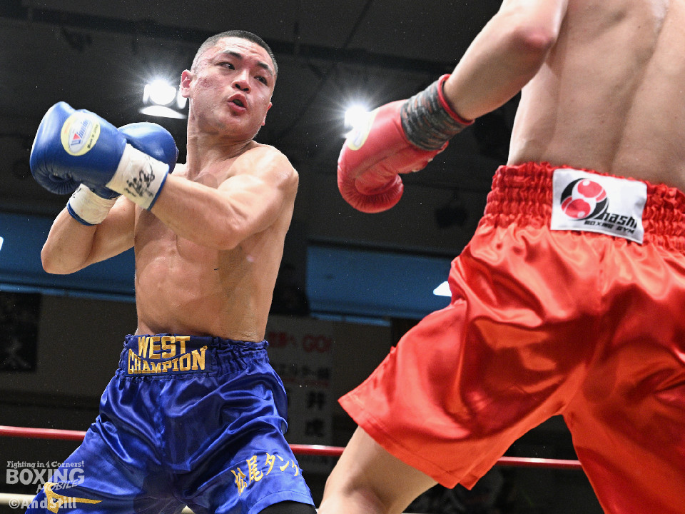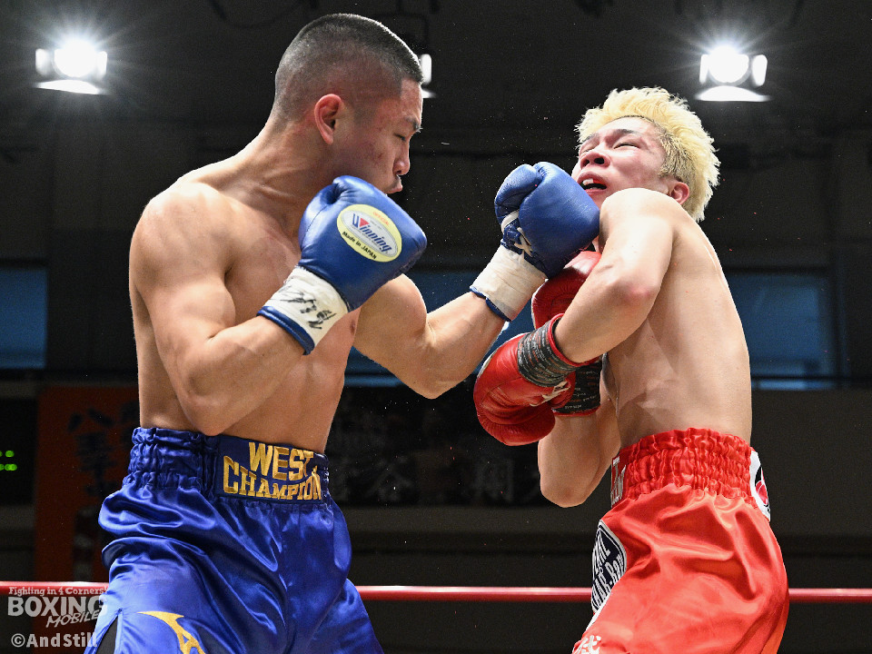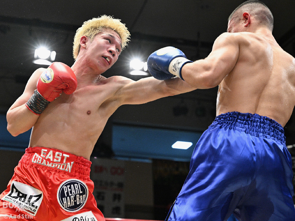 試合:松尾が鋭く踏み込み右ストレート、左ボディをヒットでアグレッシブな姿勢。2回、布袋はプッシュしながら左フックを叩きつけるが、松尾はバックステップからワンツーを好打。お互いに引かず激しいパンチの応酬。3回、松尾は右アッパー、右オーバーハンドで顔を弾くと頭のポジションを上手くずらして見栄えの良さをアピール。4回、至近距離で回転力を活かした打ち合い。松尾が左アッパーから右ストレートにつなげた。5回、松尾はワンツーで顔を弾くとパパっとまとめて攻勢をアピール。最後まで手数を出す布袋を振り切った。1~5ポイント差をつけた松尾が全日本新人王に輝いた。