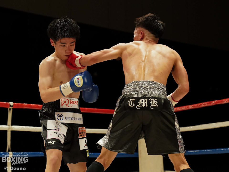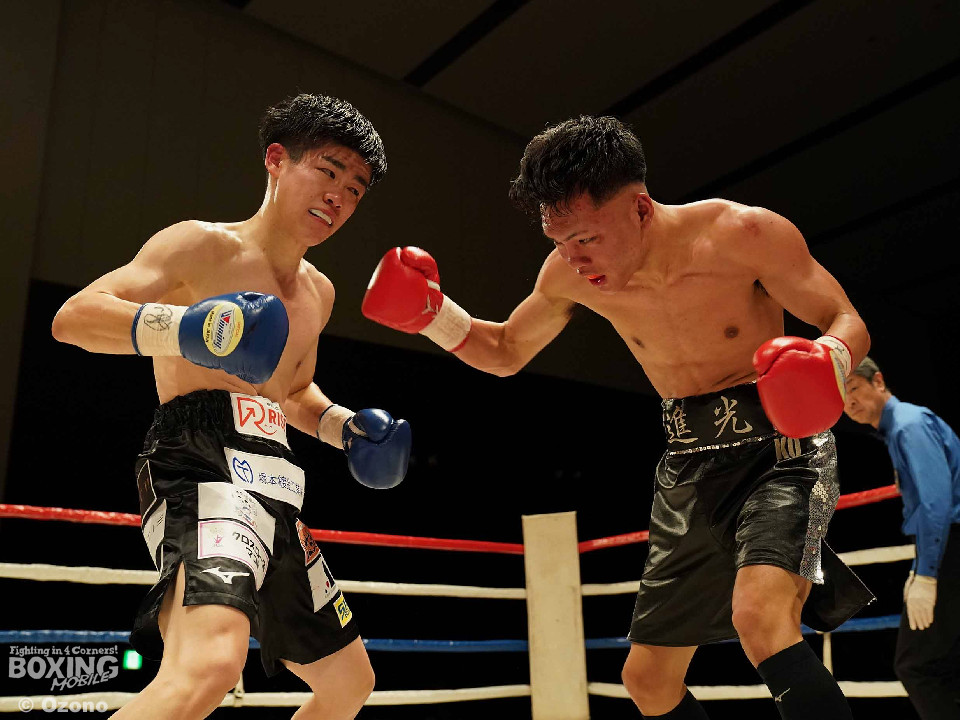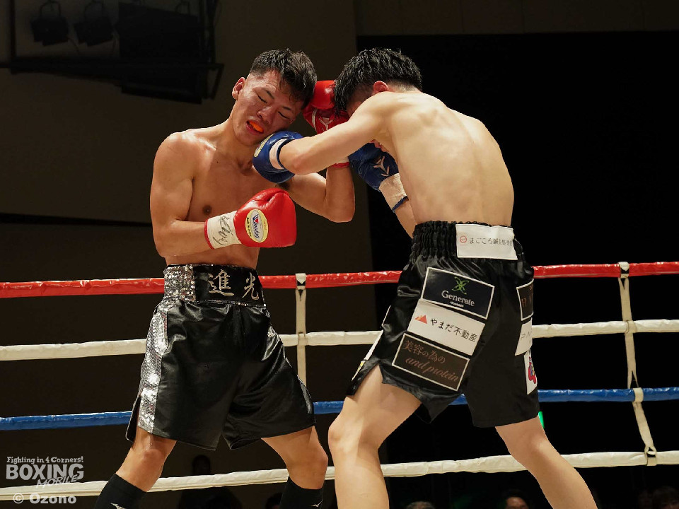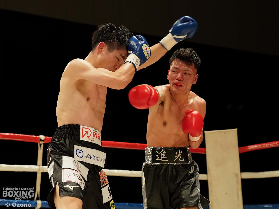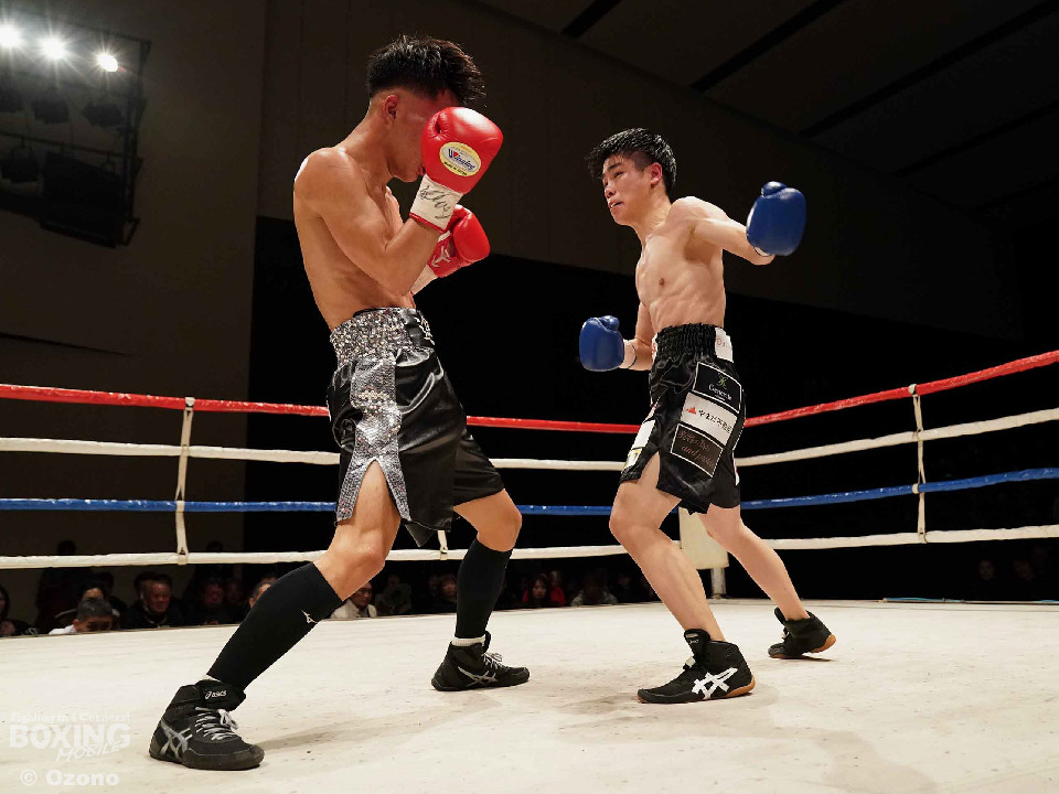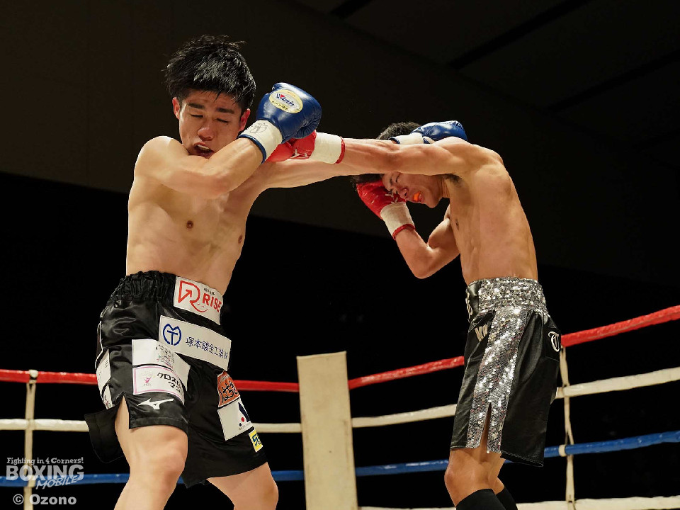 試合:初回は手数の多い宮田がワンツーで距離を詰めると、隅田はカウンターを狙った。2回に入ると一転、隅田が近い距離で右のショートアッパーを再三ヒット、距離を取って立て直した宮田だったが、隅田の勢いは止まらなかった。頭をつけて打ち合った3回、隅田は右アッパーとストレート、宮田はガードの上を叩いた。最終回は、フックが当たる距離で強振。隅田はアッパー、宮田も右をヒット。判定ドロー。