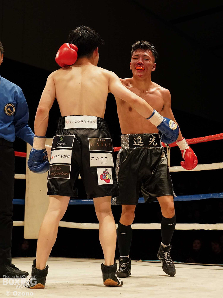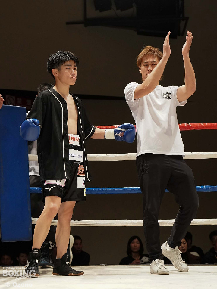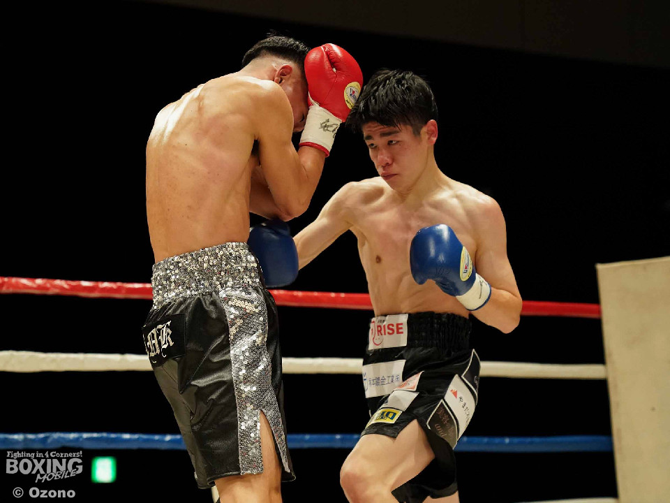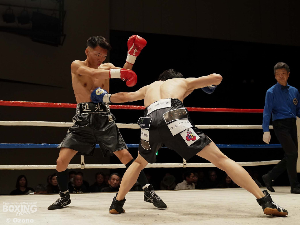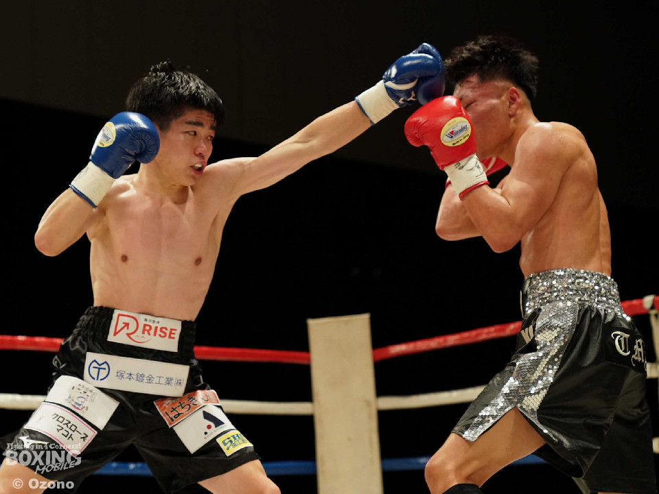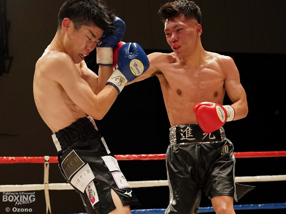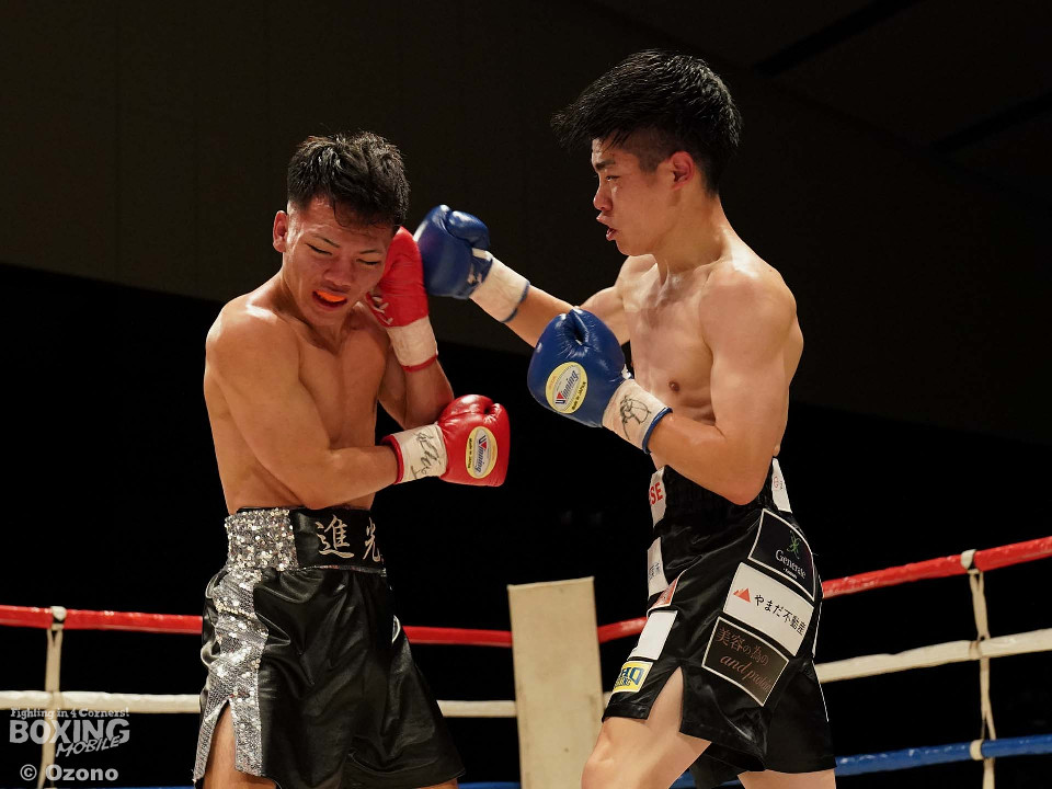 試合:初回は手数の多い宮田がワンツーで距離を詰めると、隅田はカウンターを狙った。2回に入ると一転、隅田が近い距離で右のショートアッパーを再三ヒット、距離を取って立て直した宮田だったが、隅田の勢いは止まらなかった。頭をつけて打ち合った3回、隅田は右アッパーとストレート、宮田はガードの上を叩いた。最終回は、フックが当たる距離で強振。隅田はアッパー、宮田も右をヒット。判定ドロー。