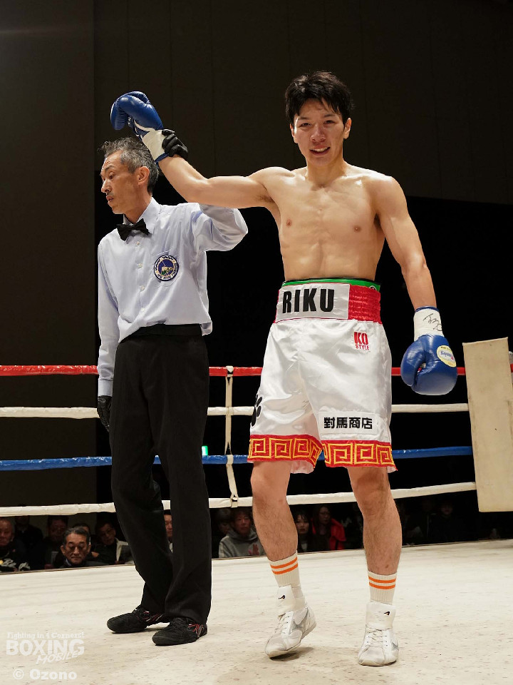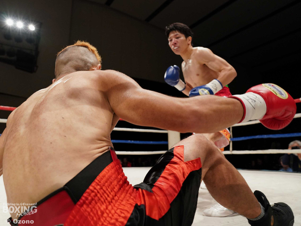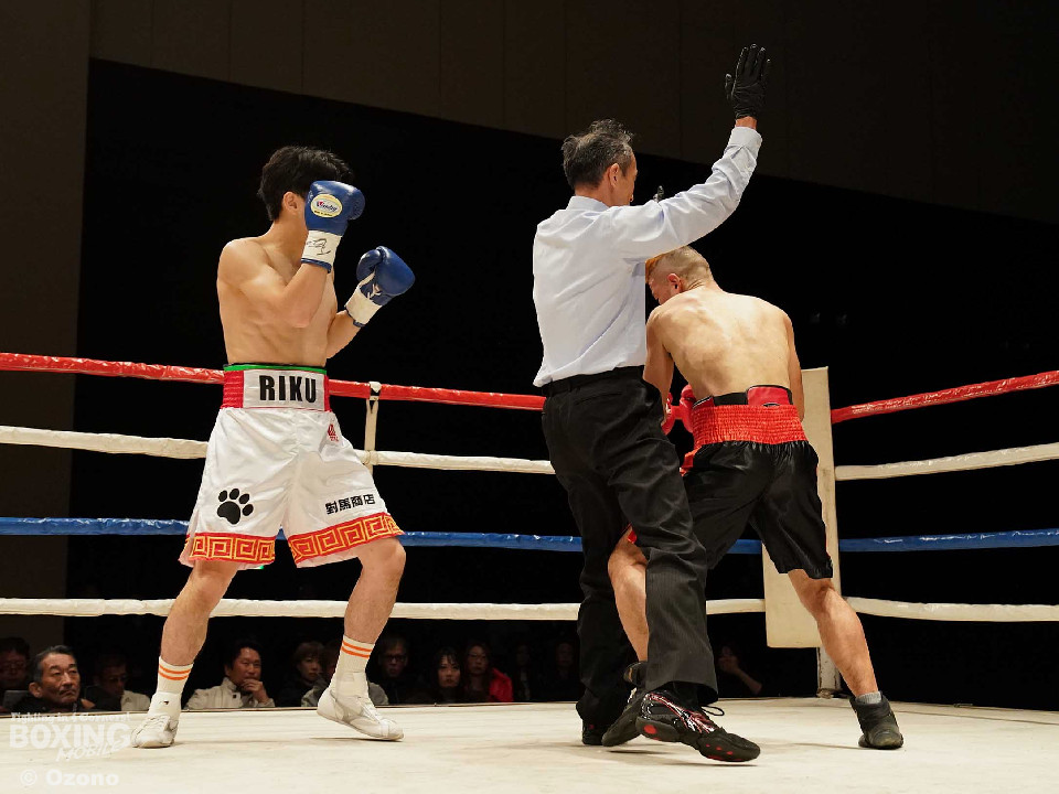 試合:元原と對馬のジャブの差し合いから始まった。広いスタンスから、距離をアジャストした對馬がワンツーをヒットすると、連打でダウンを奪った。立ち上がった元原だったが、對馬が連打をまとめるとレフェリーが試合を止めた。
