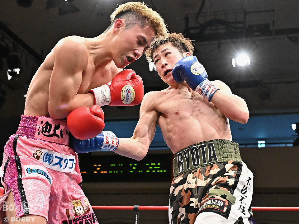 試合:佐藤が押し込むようなジャブで仕掛けるとリターンの右クロスを対応。2回、佐藤は打ち下ろしの右ストレートを好打すると左を軸に組み立てる。思い通りの展開を作れない池上だが、ラウンド終盤、強引に詰めて右フックで対抗。3回、池上は左ボディを突き刺し体力を削る作戦。佐藤もここは引くまいと右アッパーを織り交ぜてフィジカル勝負に突入。4回、火が出るような打撃戦。池上の右の見栄えがやや上回ったか。5回、佐藤が右ストレートをねじ込めば、池上も回転力を上げてて譲らず。6回、池上は激しいパンチの応酬の中、池上が左右フックを叩きつけた。ジャッジに委ねられた採点は57-57×3でドロー!