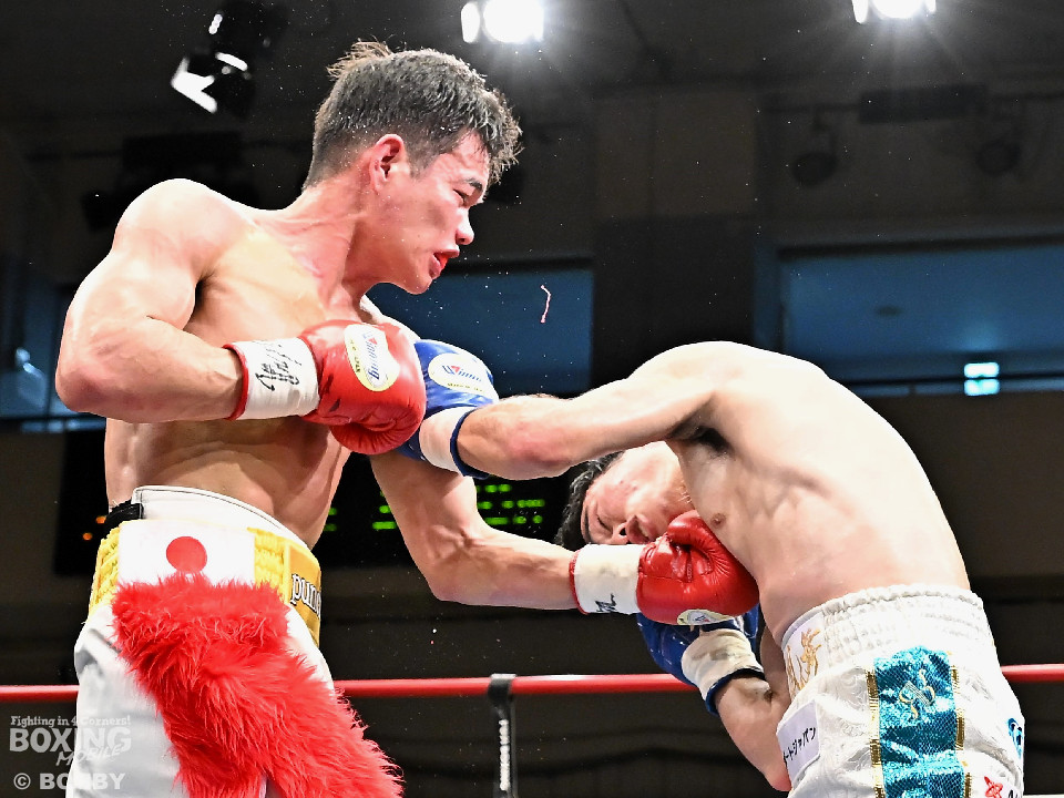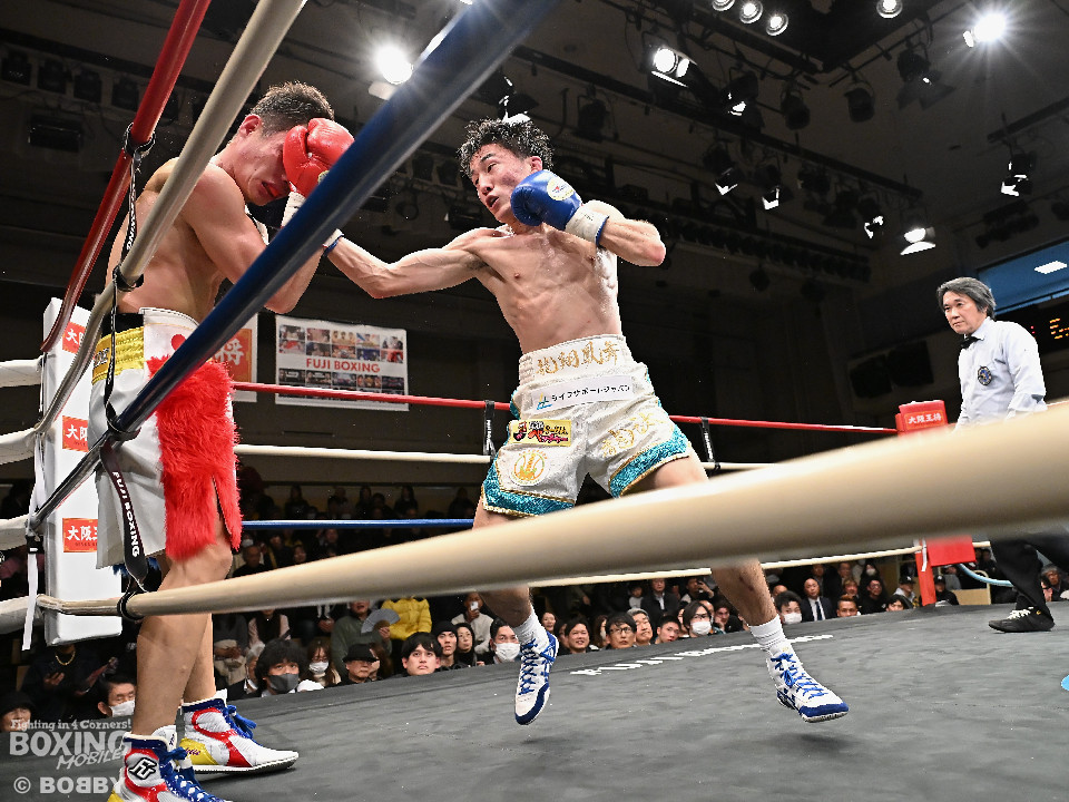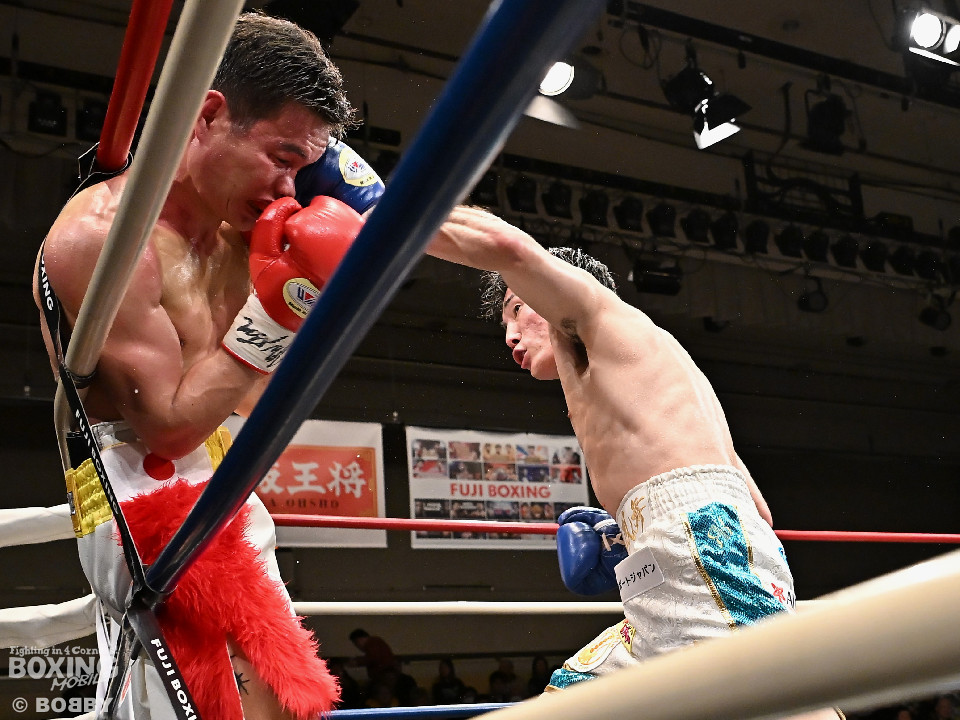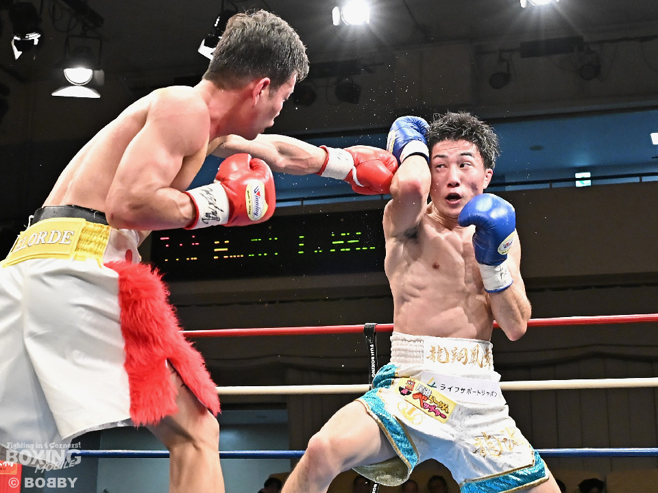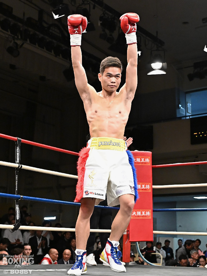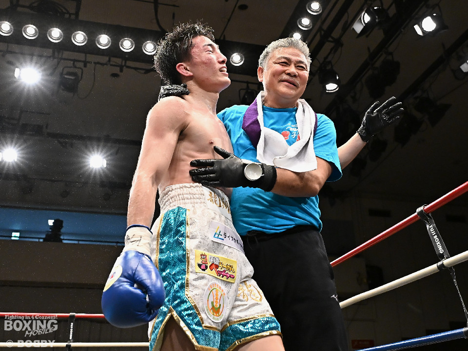 試合:元キックボクサーの末國と活動拠点をフィリピンから日本に移したケネスが拳を交えた。サウスポー同士による一戦は、末國が前後の動きを意識しながら左ボディストレートを差し込み先制、ケネスもキレのある右フックで対抗。初回からヒリヒリする攻防を展開。2回、末國は右ボディを好打すると相手のカウンターに冷静に対応。3回、ケネスはプレスを強めて左フックを強振。末國は足を使いながらジャブからワンツーにつなげた。4回、末國は左ストレートを上下に打ち分けるとリズム感のある攻撃。ケネスはヒッティングで左目下を腫らした。続く回も末國のラウンド。距離をキープしながら着実にダメージを与えた。最終6回、末國は上下にキッチリと打ち分けるとワンツーで攻勢。チャンスを逃さず連打でレフェリーストップに持ち込んだ。