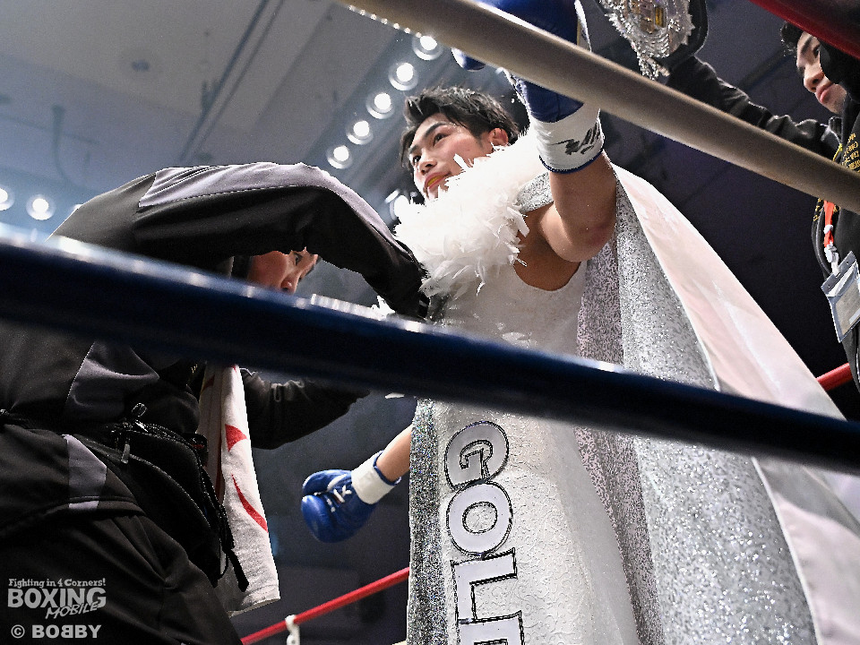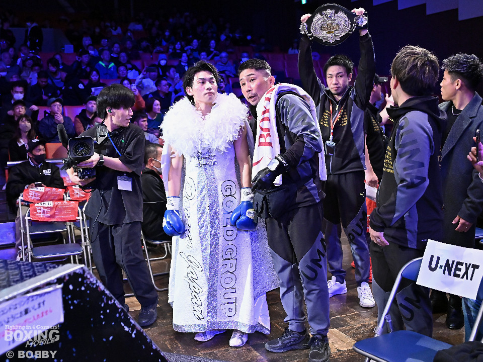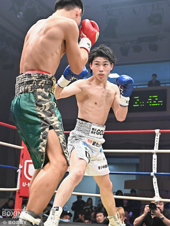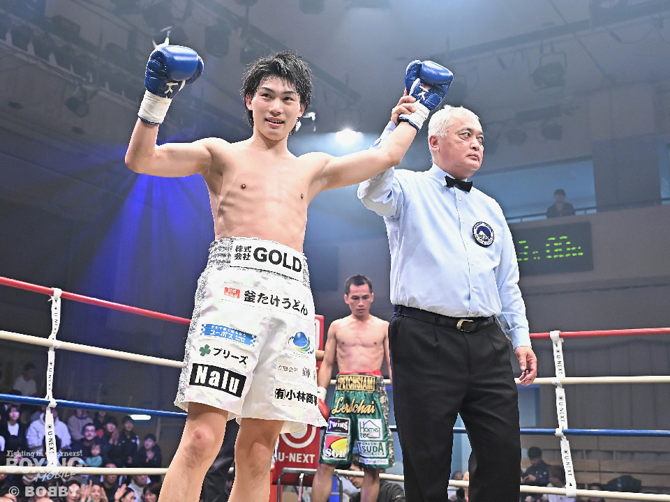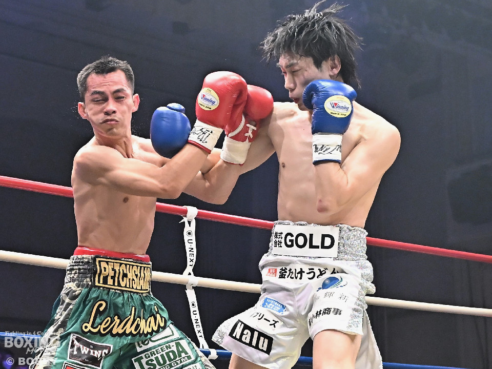 試合:タイ出身のデンチャイと日本フライ級現役王者のサウスポーの野上の対決。ジャブを突きながら距離を詰めた野上が徐々にプレスを強めた。2回、野上が距離を半分詰めると、左ボディからの右フックでダウンを奪うと、レフェリーは間髪入れずに試合を止めた。