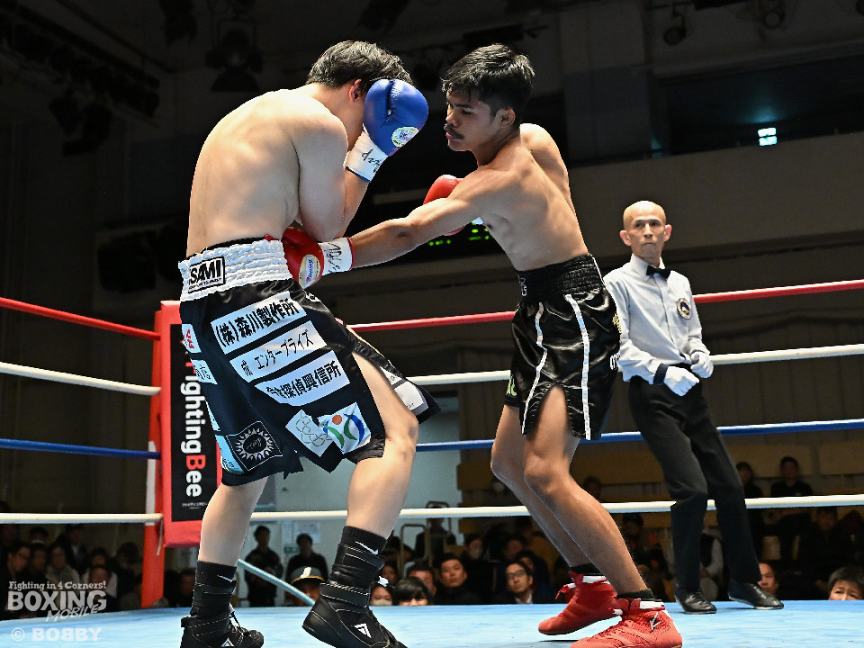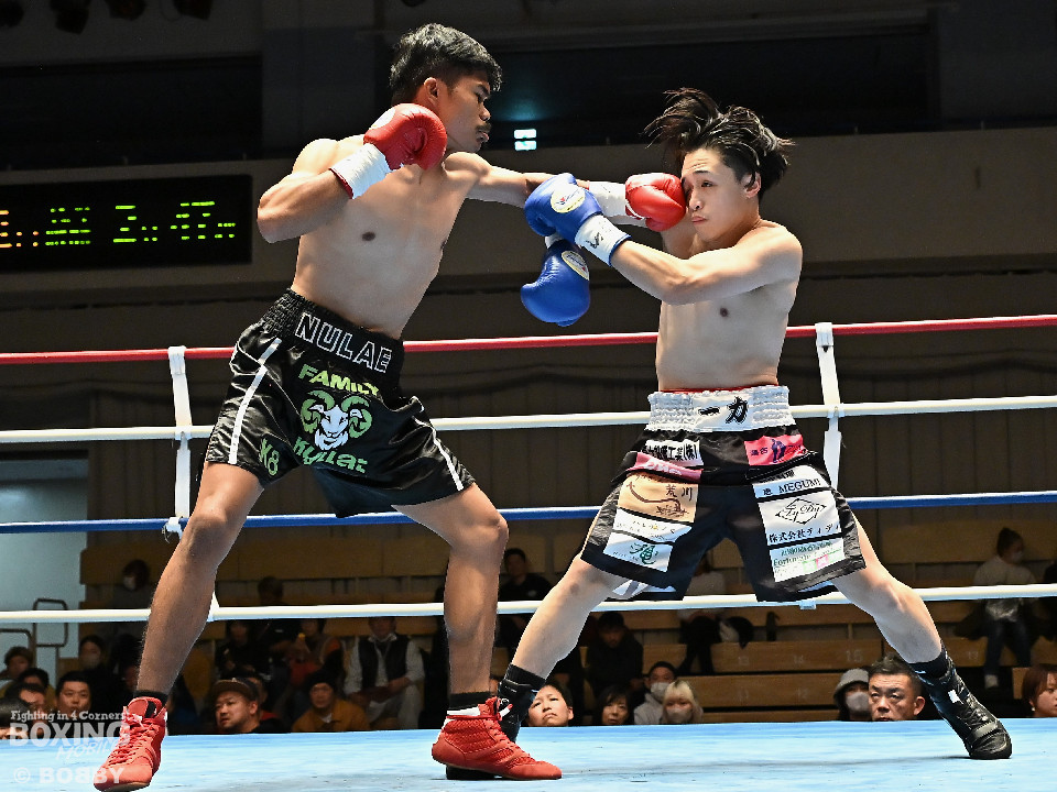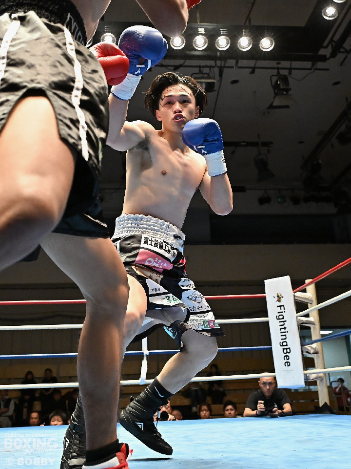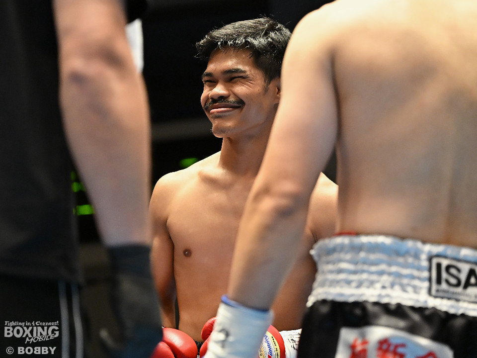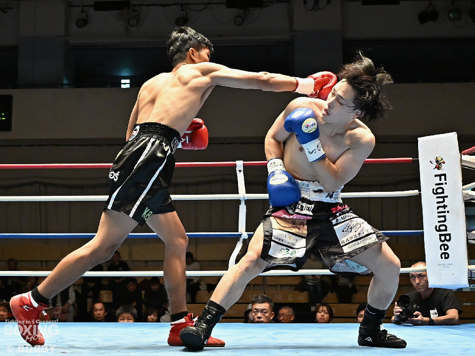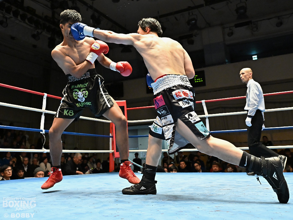 試合:サウスポー矢代が前の手で距離を測りながら左ストレートをヒット。2回、矢代は左ボディアッパーを突き刺すと返しの右をバックステップで回避。しかし、ソンムサックも頭から突っ込みながら右ストレートを返した。3回、矢代はこれでもかと左ボディアッパーを決めると、カウンターの左ボディアッパーで痛烈なダウンを奪取。ソンムサックは苦悶の表情を浮かべたまま10カウントを聞いた。矢代が約2年3ヶ月ぶりの復帰戦を勝利した。