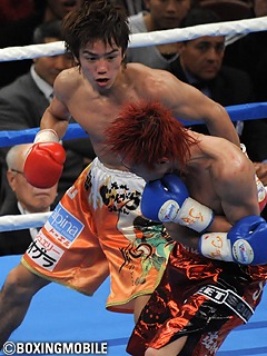 試合:序盤、両者積極的に仕掛けると、互いのストレートが交差。その後、清水が距離を掴んだか、右ストレートが五十嵐にクリーンヒット。中盤、距離を完全に掴んだ清水が仕掛けると、ワンツー・左フックをヒットさせ左ボディを返しポイントを奪う。終盤、五十嵐も反撃に出るが左ストレートの単発気味に。距離を支配した清水が的確に右ストレート・左フックをヒットさせてペースを離さず。試合は判定に委ねられたが、清水が判定3-0で暫定王者・五十嵐を下し日本フライ級王座を統一した。
