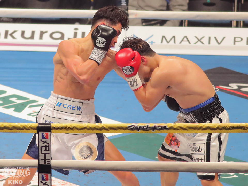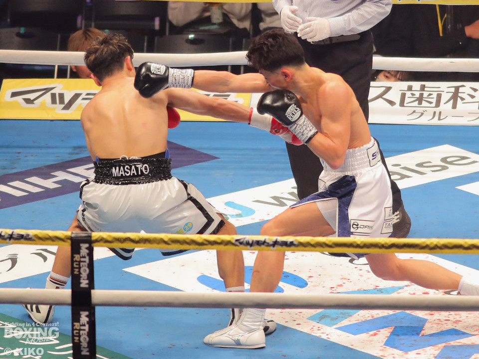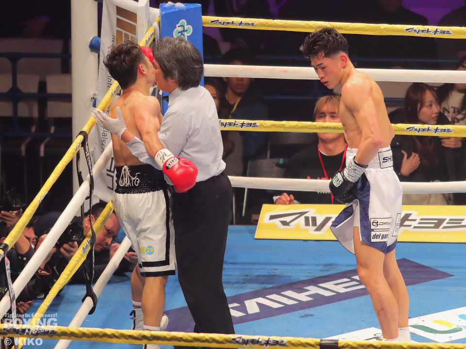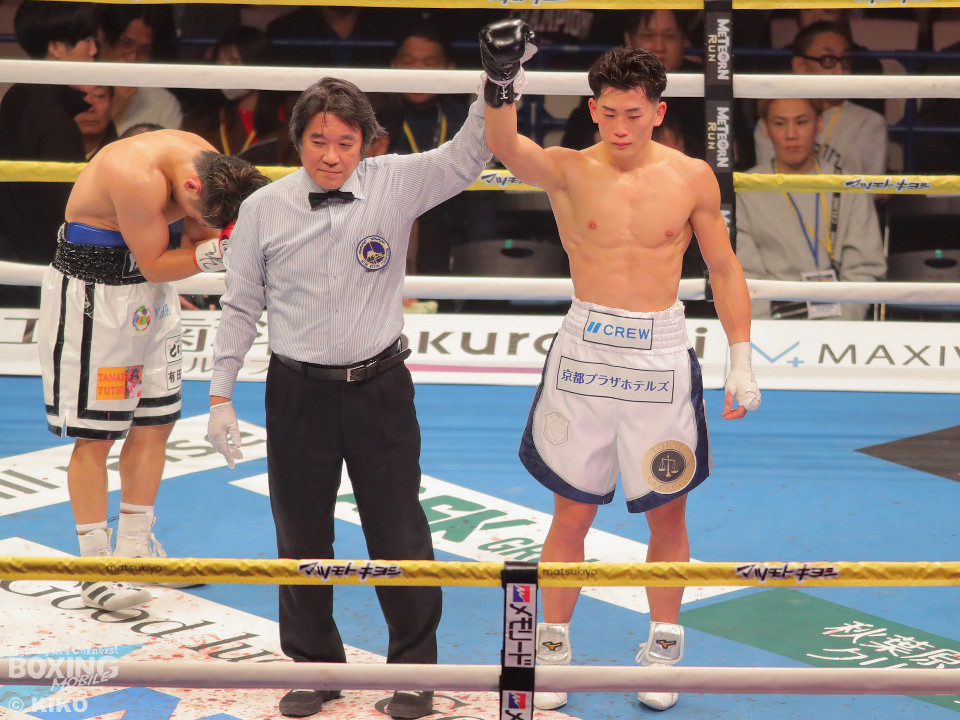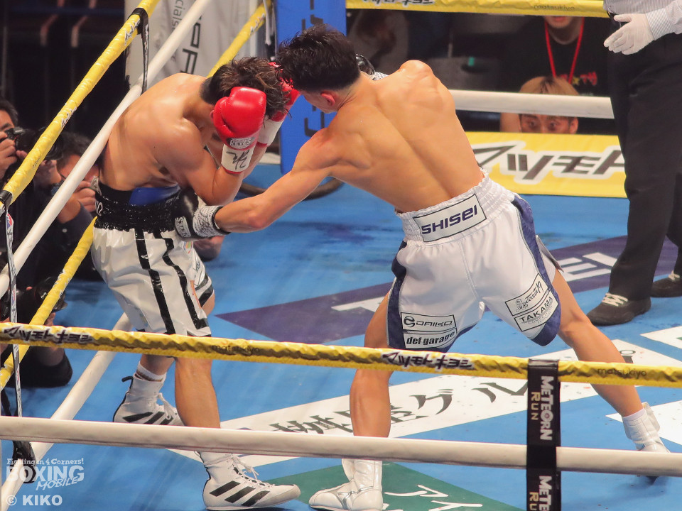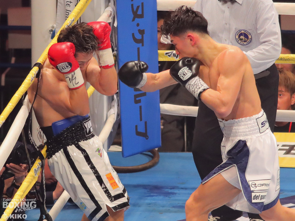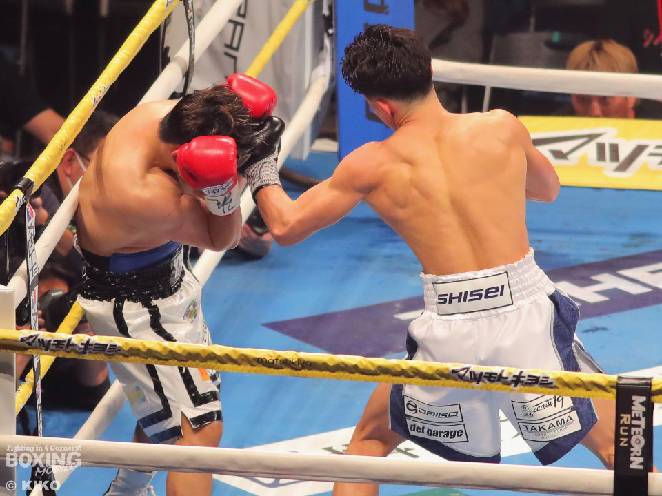 試合:嶋田が距離を詰めワンツーを放ち、サウスポーの篠田が左右のフックを強振し対抗。2回、篠田が左フックで嶋田の膝を揺らし、チャンスと見て猛攻をしかけるが、嶋田は冷静に対処。3回、嶋田がプレスをかけて上下を攻め、篠田が防戦一方となりレフェリーが試合をストップ。嶋田が移籍初戦をTKOで勝利。