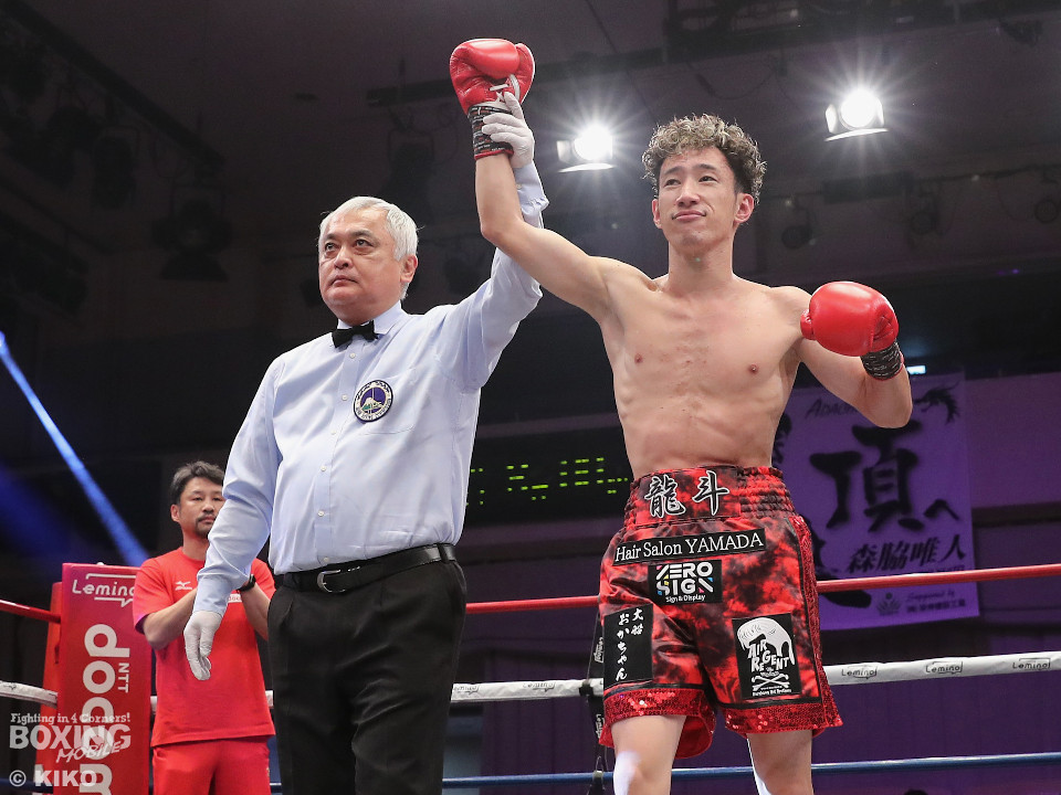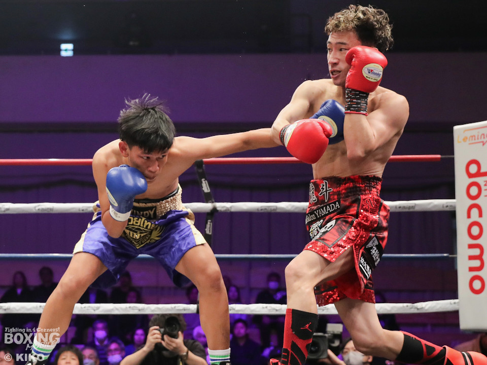 試合:コムサンが独特なリズムからパンチを放ち、対する山田は上下にジャブを打ち分け右へ繋げる。2回、攻勢を強めた山田が左右の強打でポイントを重ねる。3回、山田が左フックで効かせて右を打ち込み、ダウンを奪う。なんとか立ち上がったコムサンだが、 10カウントが数えられ、山田が4連勝となるKO勝利を飾った。