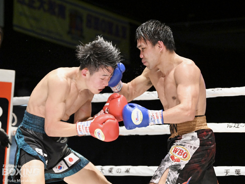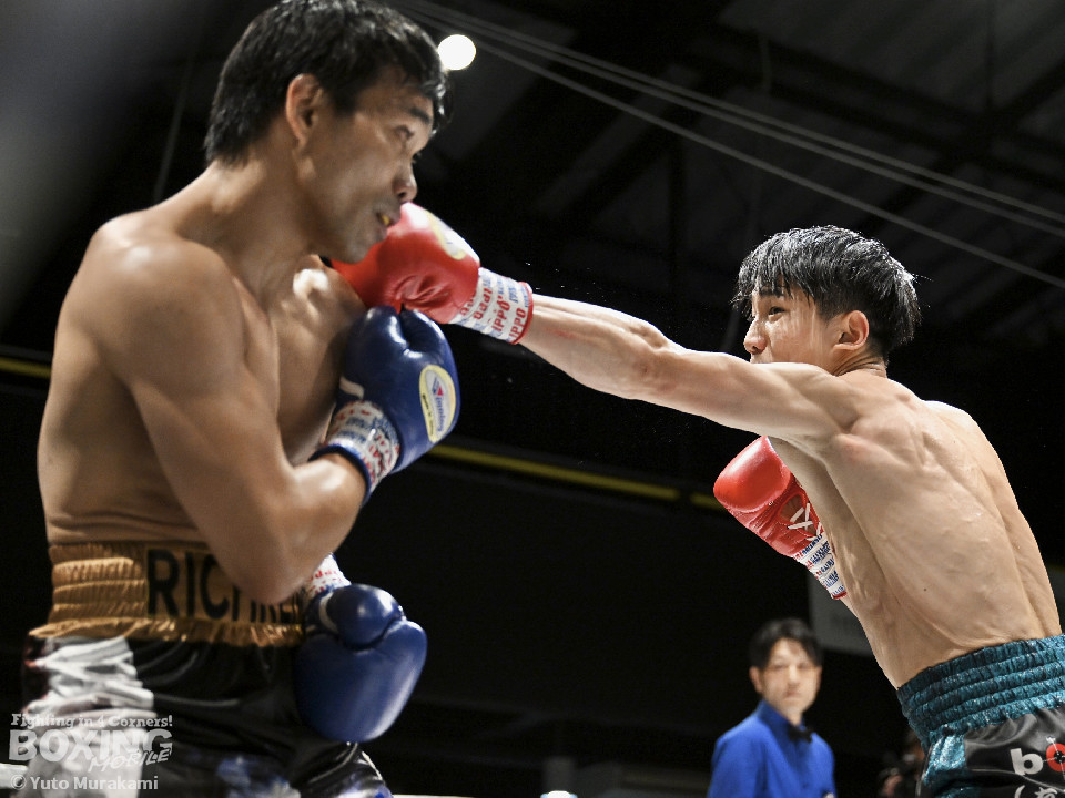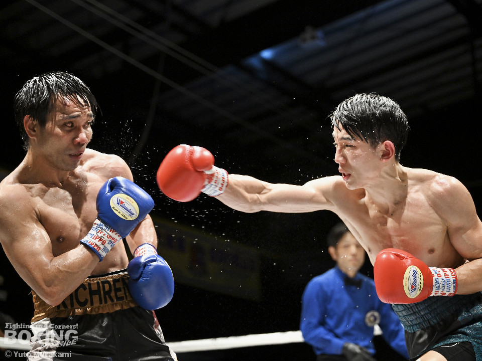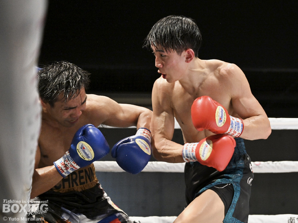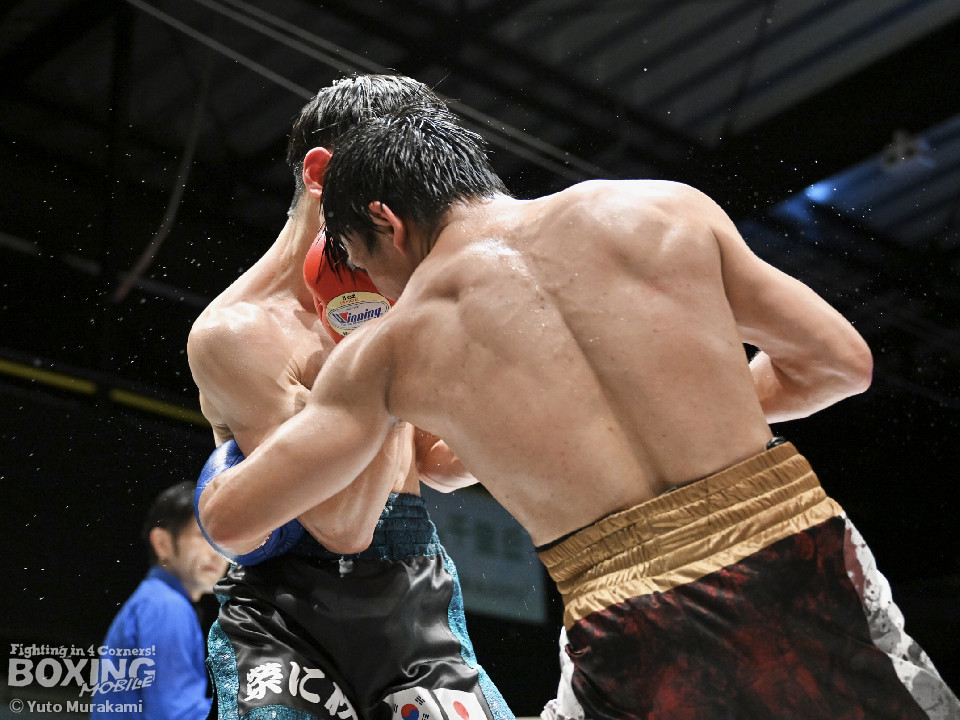 試合:WBOアジアパシフィック・ライト級11位の崔(チェ)は、サウスポースタイルでスタート。ジャブからワンツーにつなげるが、元WBO-APフェザー級王者のプミクピックは、独特のタイミングで懐に飛び込み左ボディで対抗。2回、崔は右構えに戻し、打ち下ろしの右ストレートを顔面、ボディに打ち分け見栄えの良さをアピール。3回、崔はプレスをかけてワンツー、左ボディを好打。4回、プミクピックは力強い左ボディで反撃に転じるが、崔は押し負けず。5回、崔はワンツーで後退させると連打で攻勢。プミクピックはヒッティングで左目上をカットした。6回、一進一退の攻防を繰り広げる中、プミクピックはワンツーで顔を弾いた。7回、プミクピックはステップインから右ストレートを決めると、積極的な攻撃で挽回。8回、激しいパンチの応酬を見せる中、頭がぶつかりプミクピックは額をカット。再開後、最後の力を振り絞り打ち合った。2~4ポイント差をつけた崔が激戦を制した。
